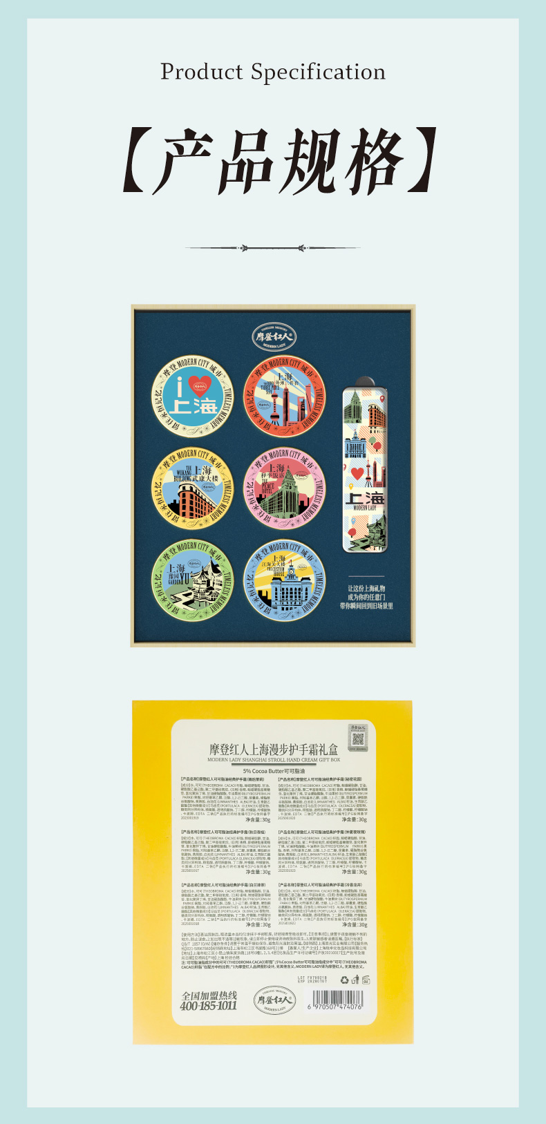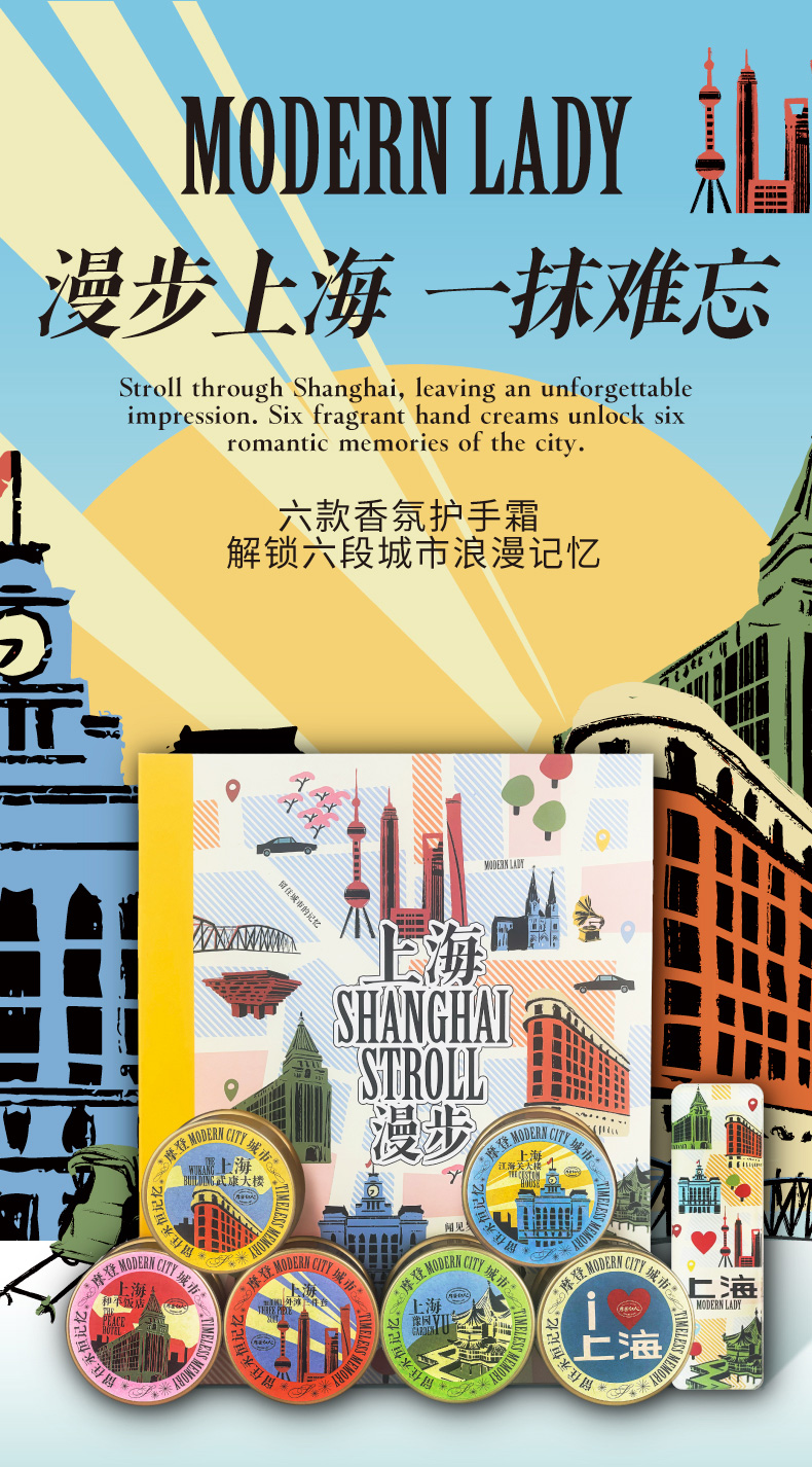 摩登红人上海城市漫步可可脂护手霜冰箱贴礼盒滋润保湿防干裂礼物