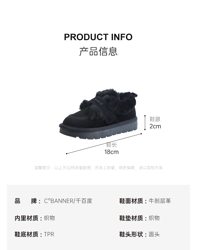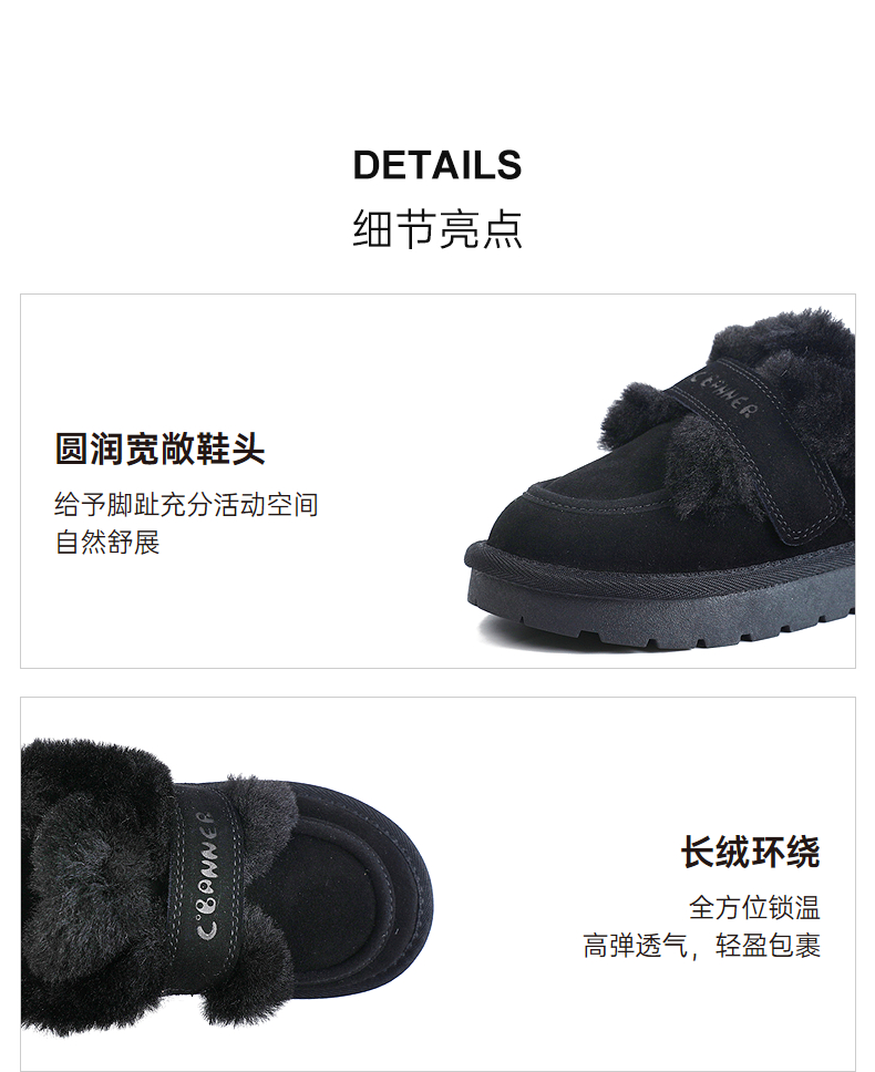 千百度冬季圆润宽敞鞋头雪地靴童鞋A25660003