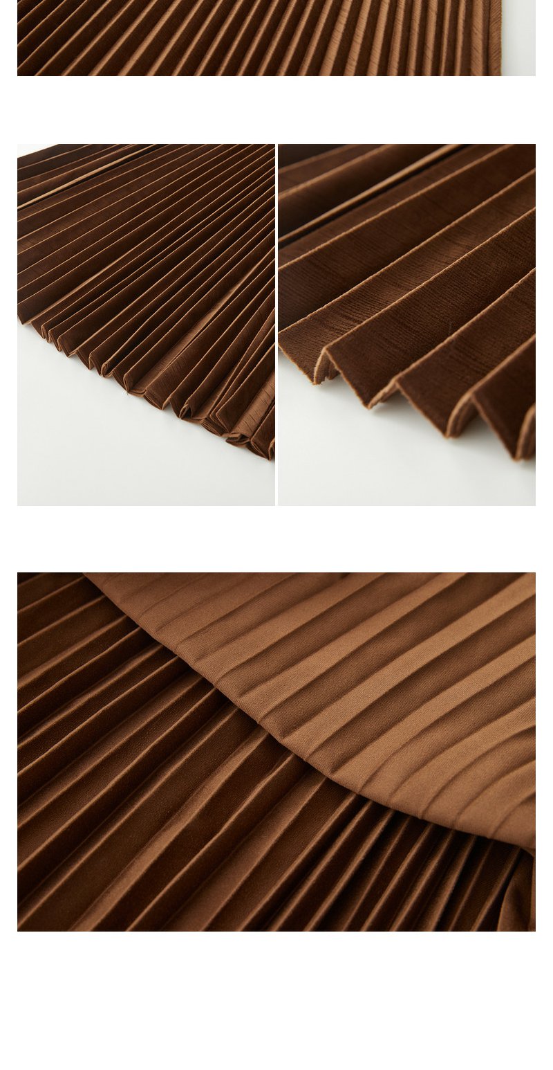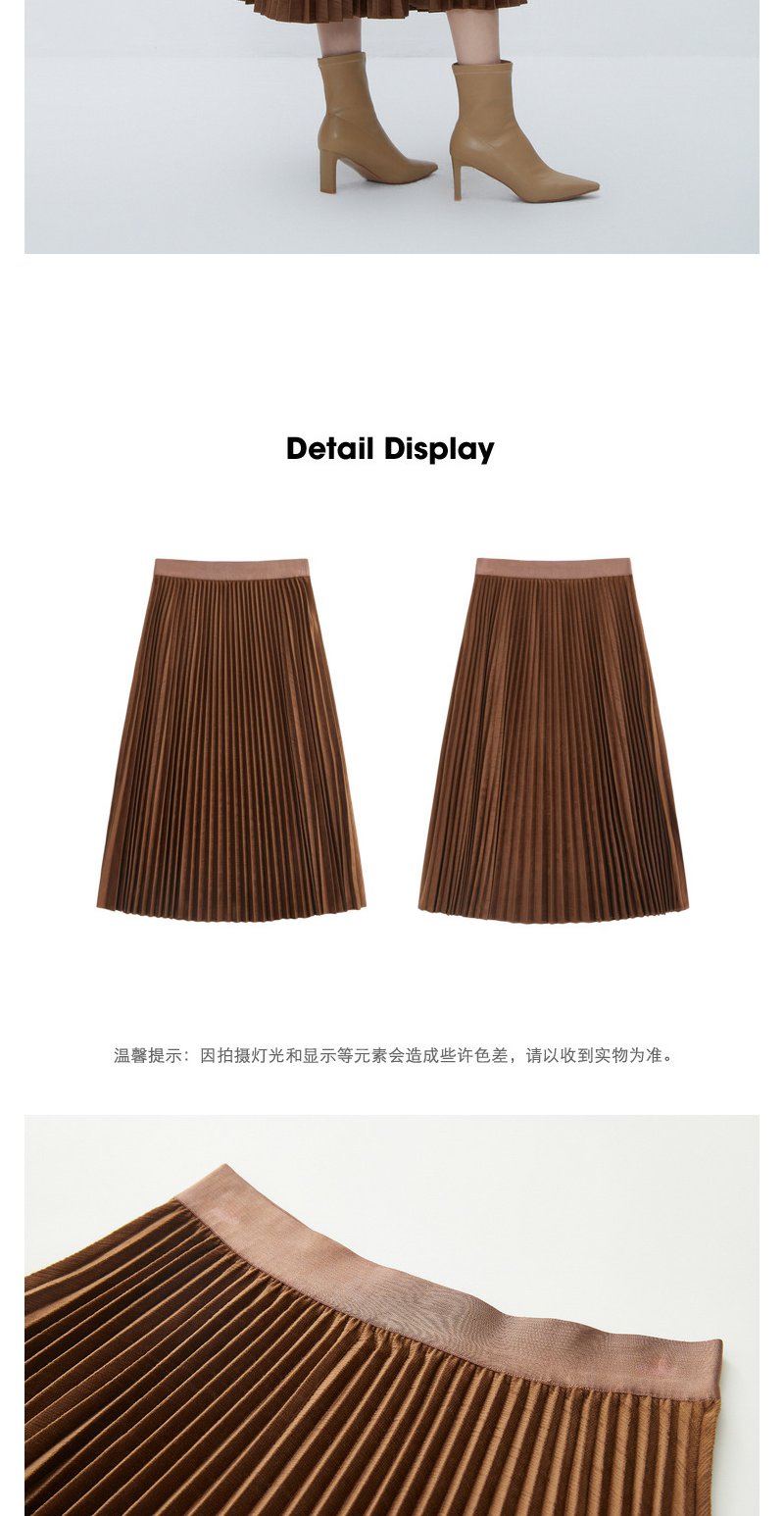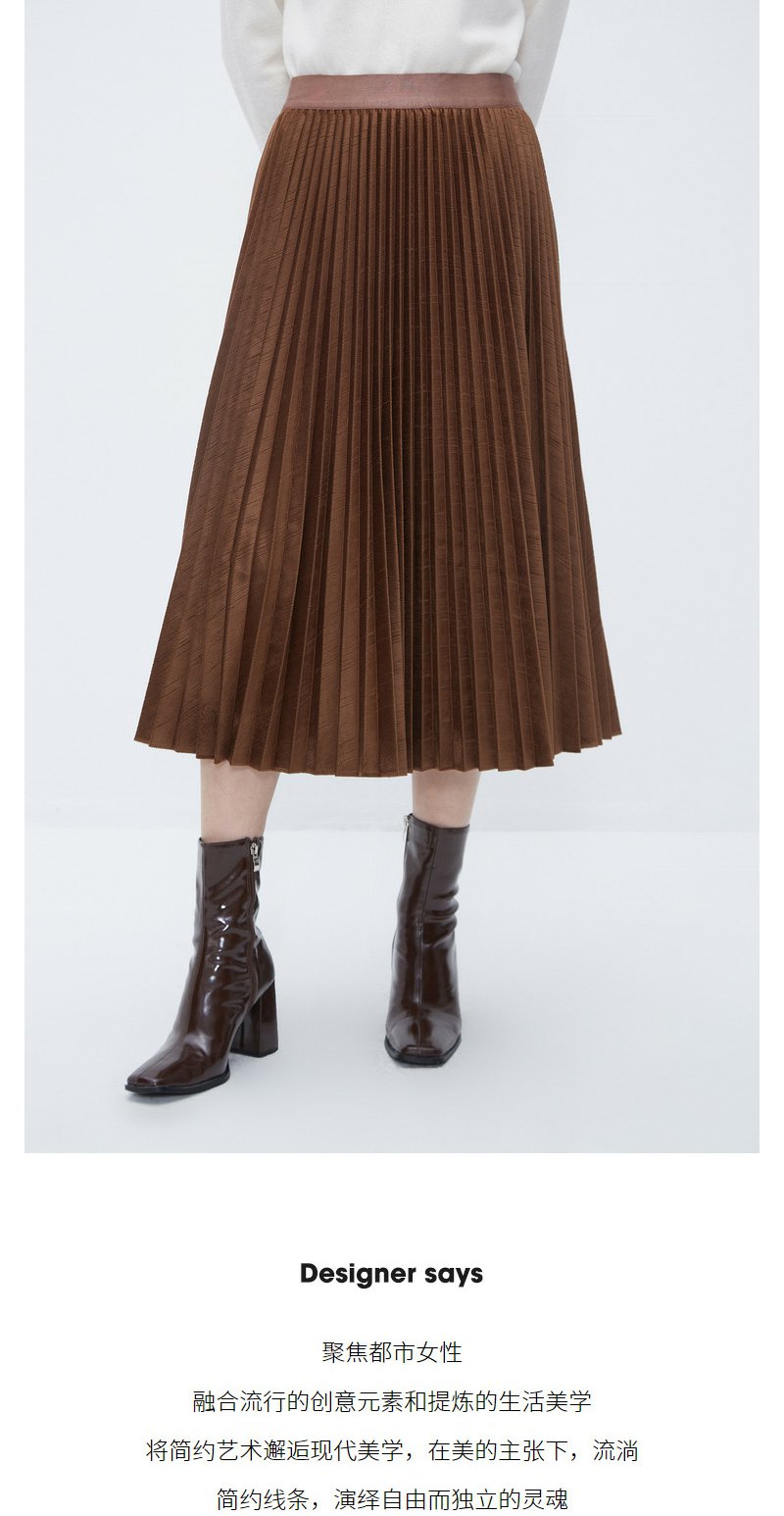 NEELLY纳俪商场同款冬季百褶裙女美拉德棕色高腰中长款a字裙伞裙N24104E04608