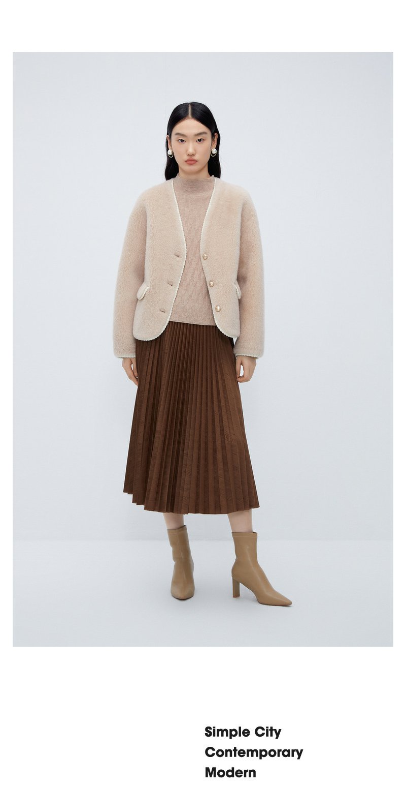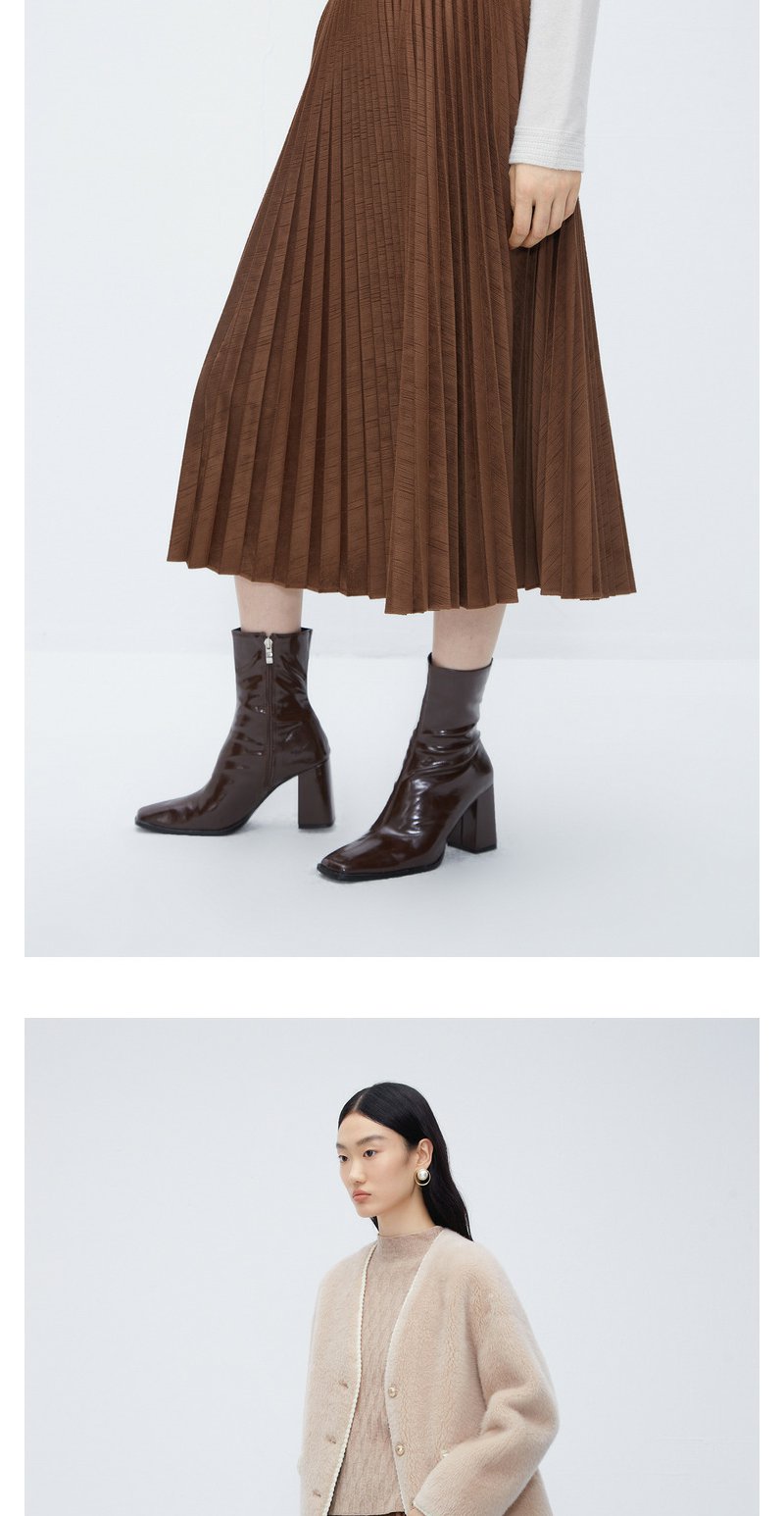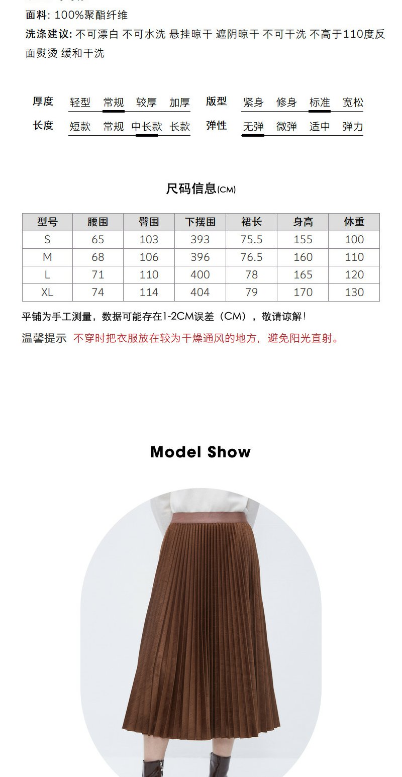 NEELLY纳俪商场同款冬季百褶裙女美拉德棕色高腰中长款a字裙伞裙N24104E04608