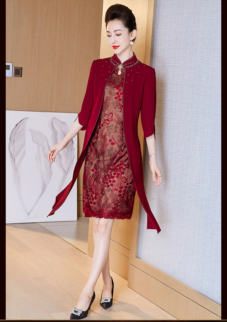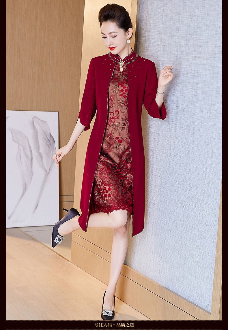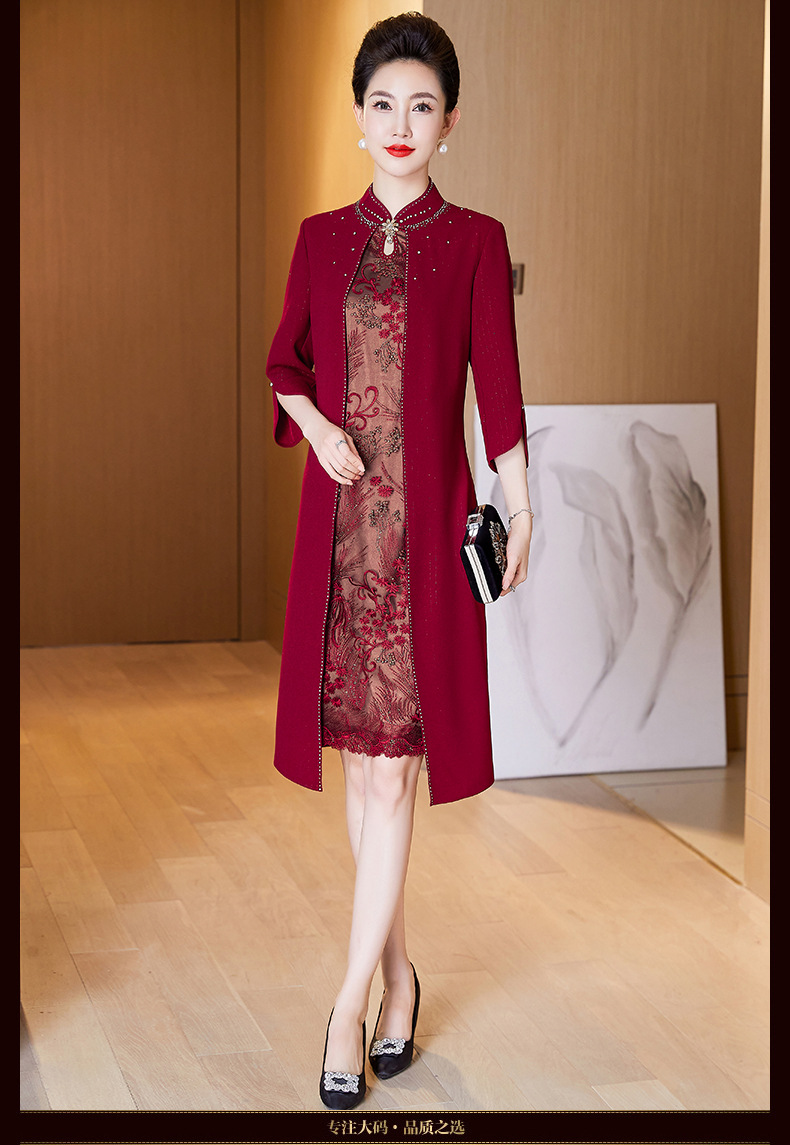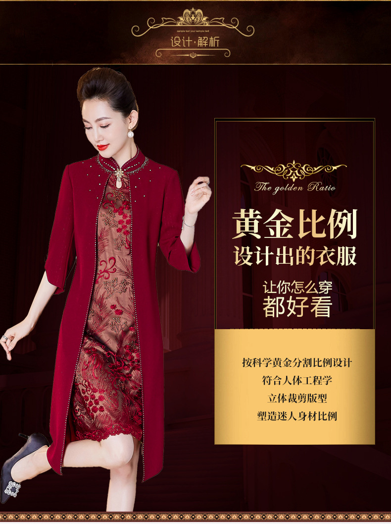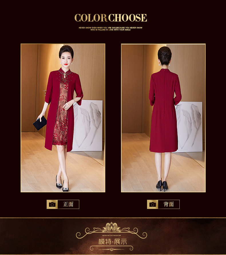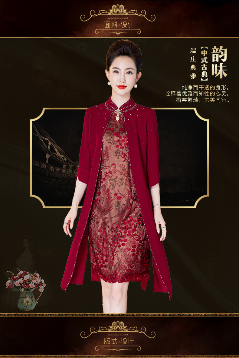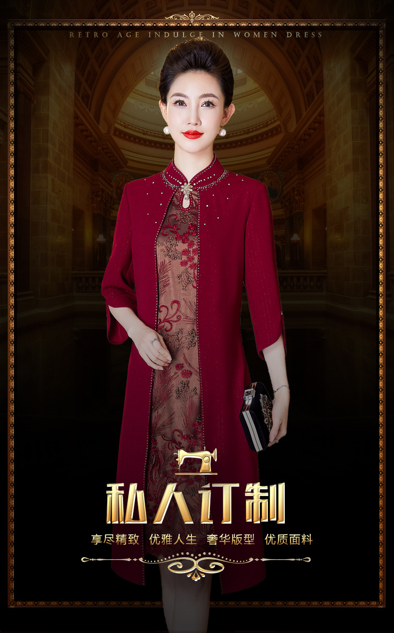 妈妈装年轻气质结婚礼服优雅高贵假两件连衣裙LC-2290