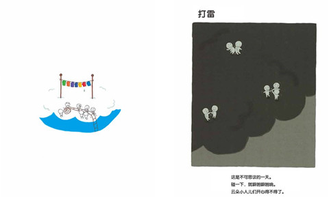 电闪雷鸣、天昏地黑、台风肆虐的雨季,也许不一定是给小小孩儿进行科普教育的很好时机,一个可爱、有爱的小故事,也许会帮助孩子安抚内心的不安与恐惧,把打雷打闪这样看似日常却又一两句话难以解释清楚的现象,用容易为孩子接受的小故事演绎出来,带孩子安然度过纯真的童年。