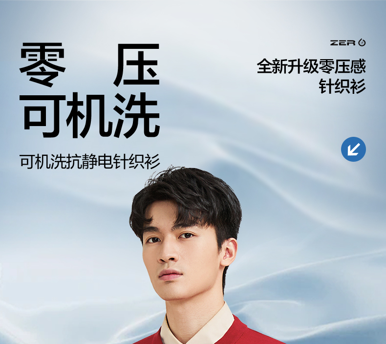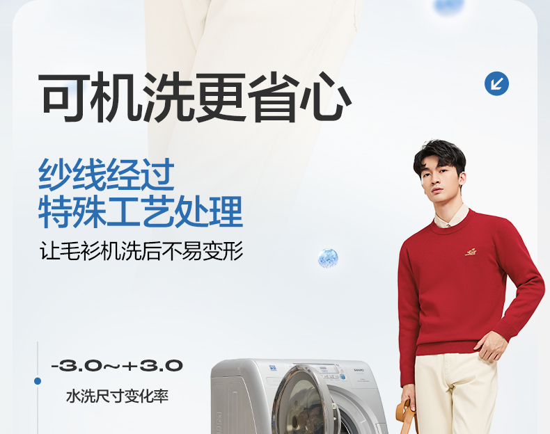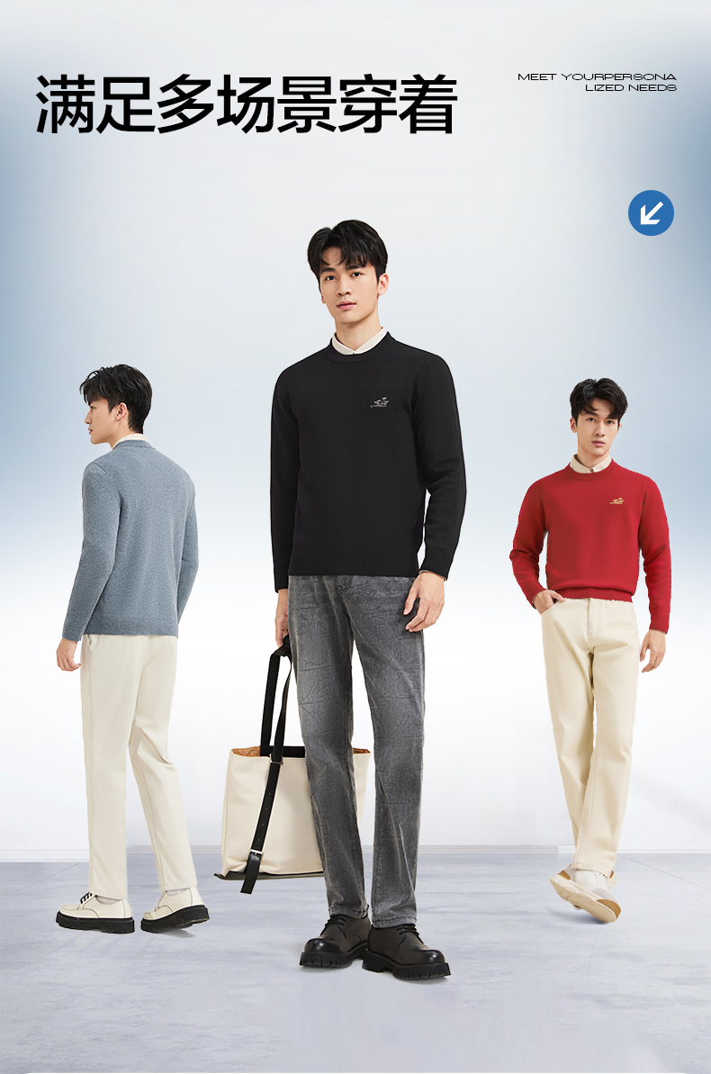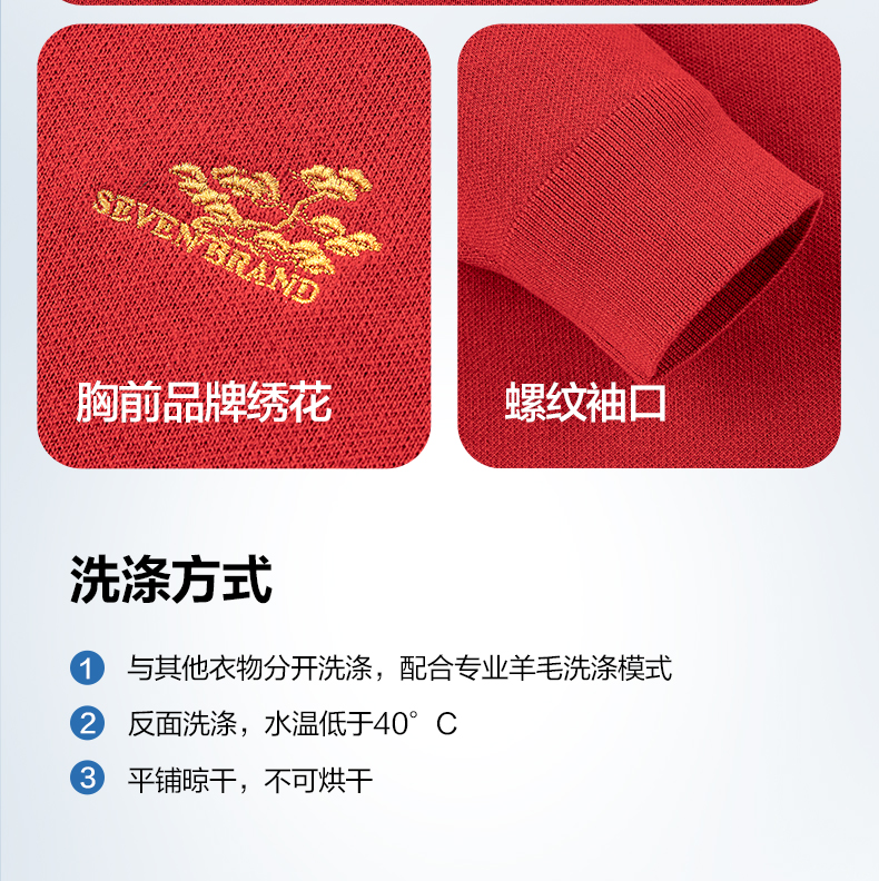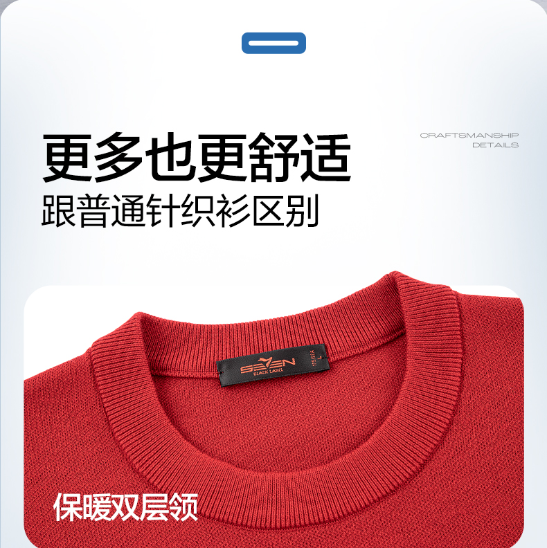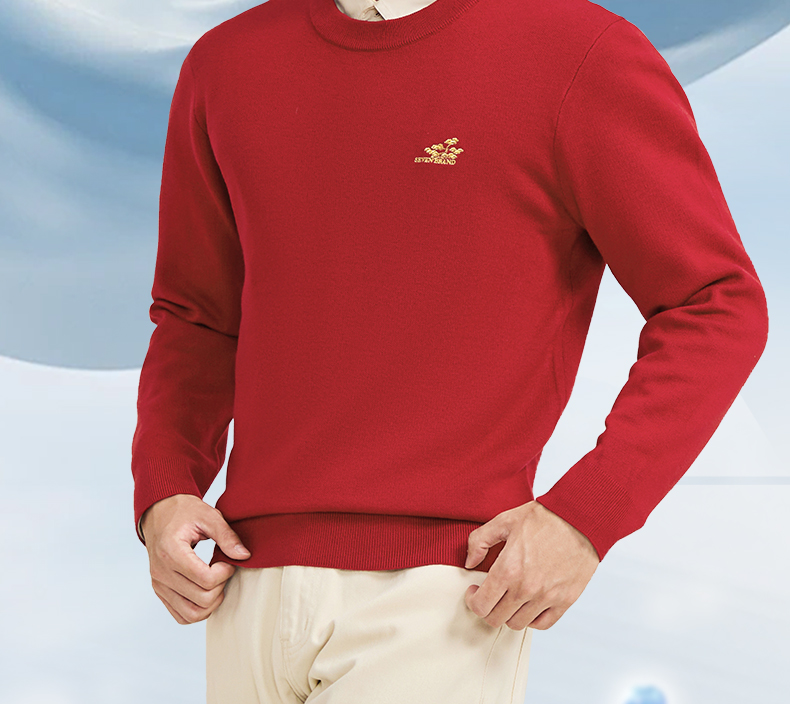 【含羊毛/可机洗/抗静电】柒牌男装2025秋季双层领套头绣花薄毛衫129Y70470