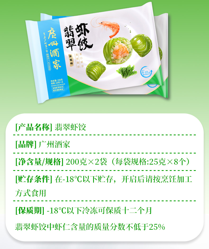 广州酒家 广式早茶点心虾饺多口味黑金翡翠速冻广府早餐点心