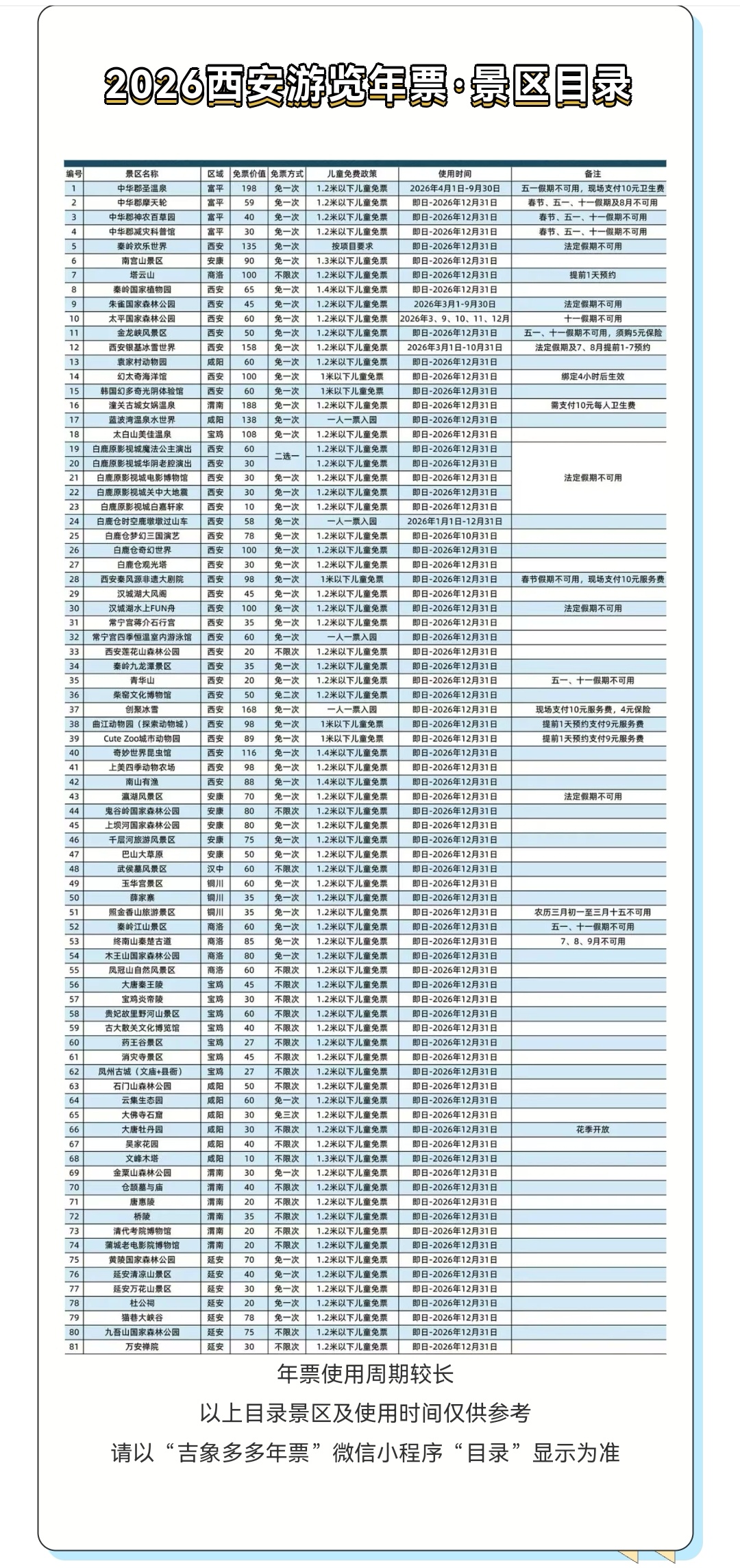 【2026西安游览年票】震撼首发!仅79元畅玩中华郡、太平朱雀、塔云山、南宫山、银基冰雪、白鹿原白鹿仓、多家温泉等80+优质景区