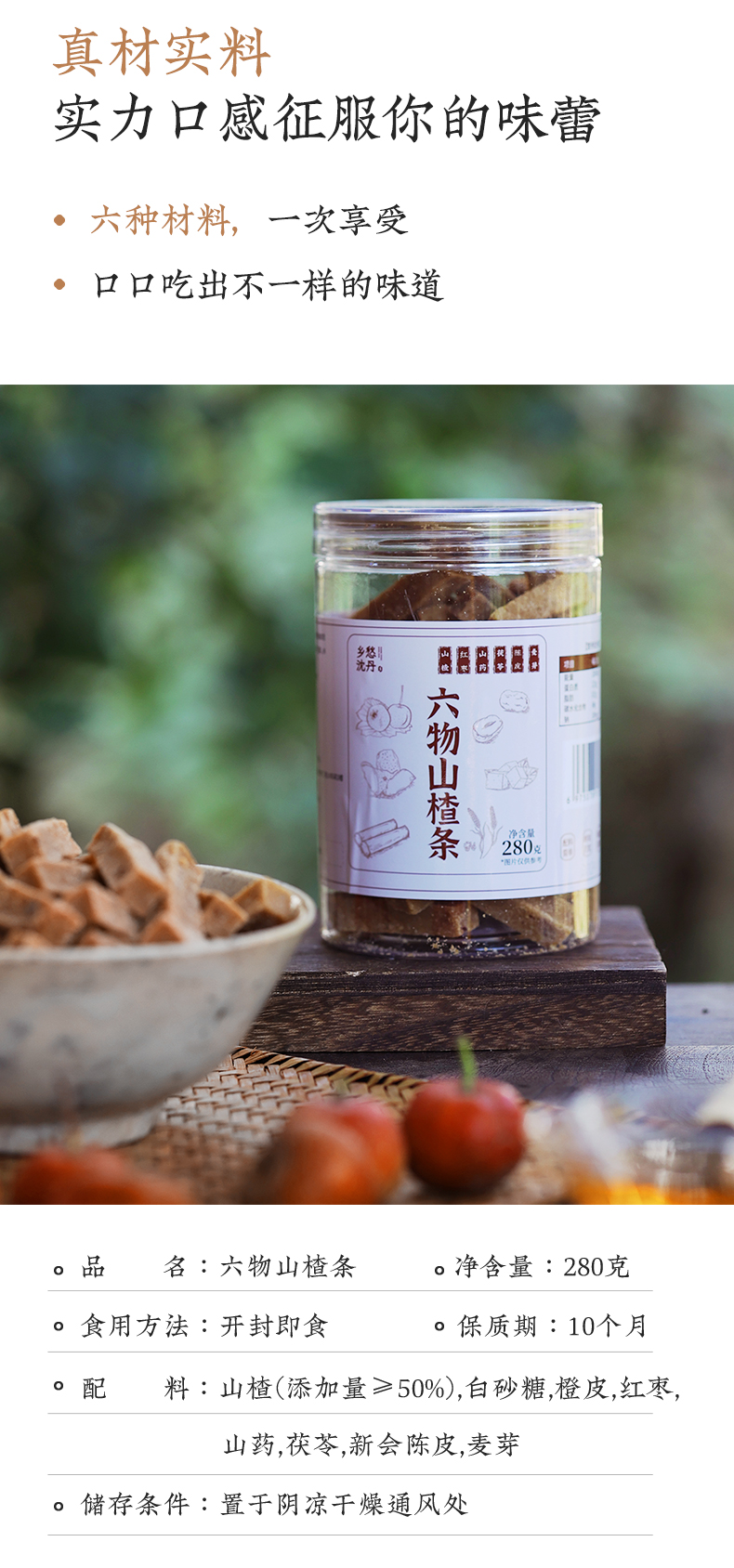 乡愁沈丹六物山楂条甄选6味草本食材零添加1罐280g