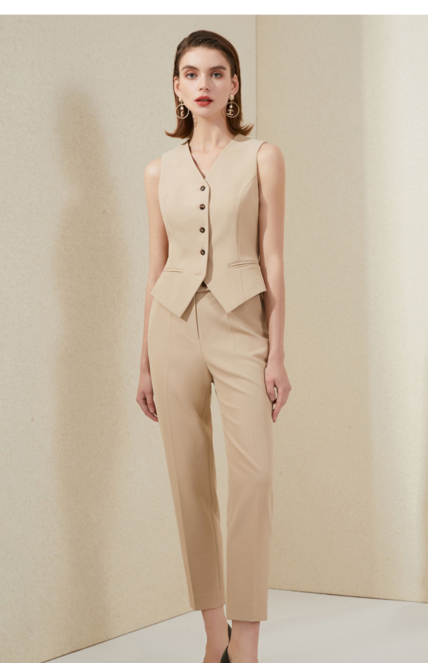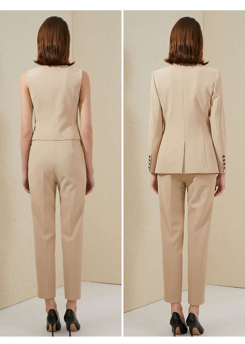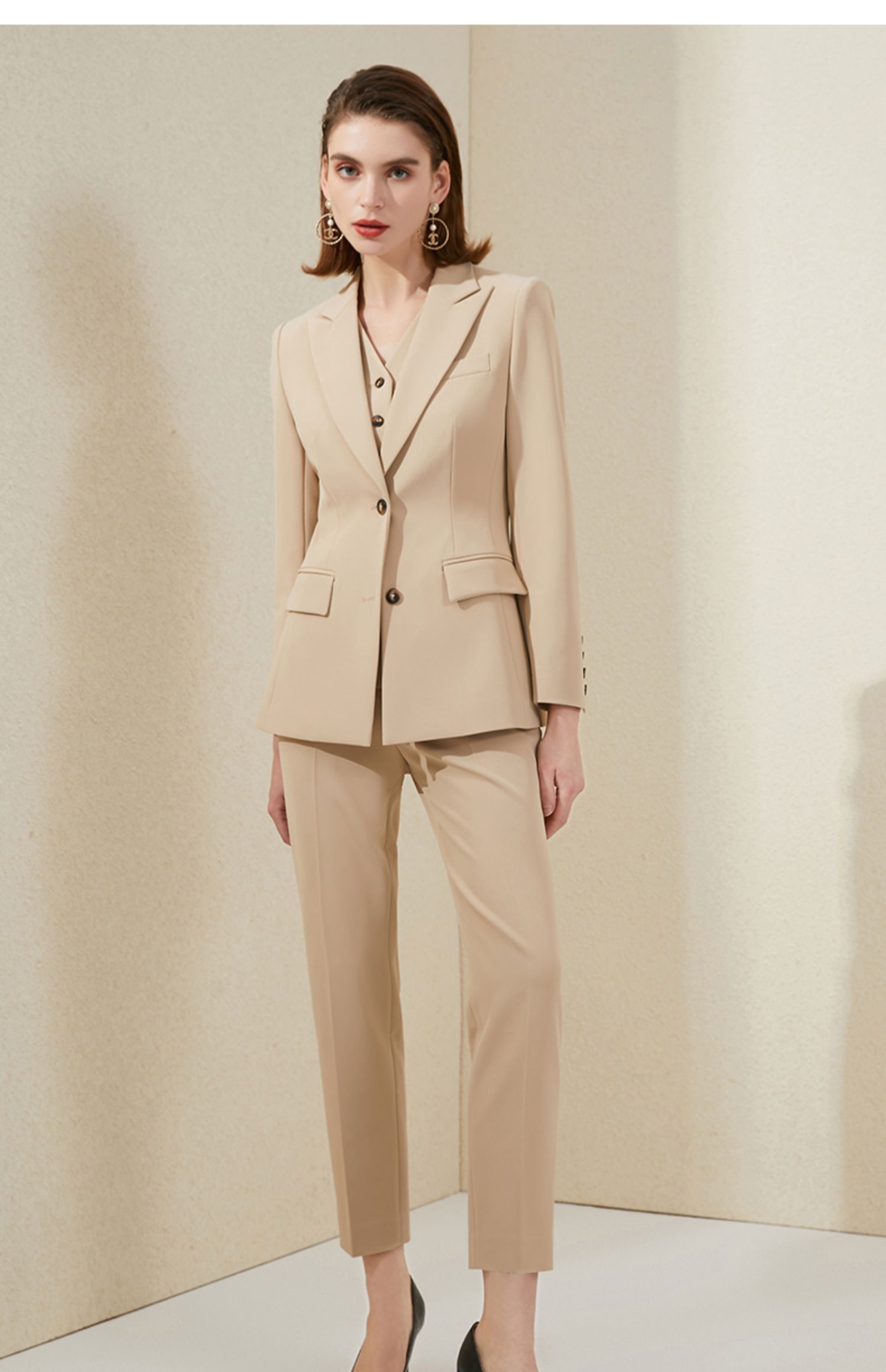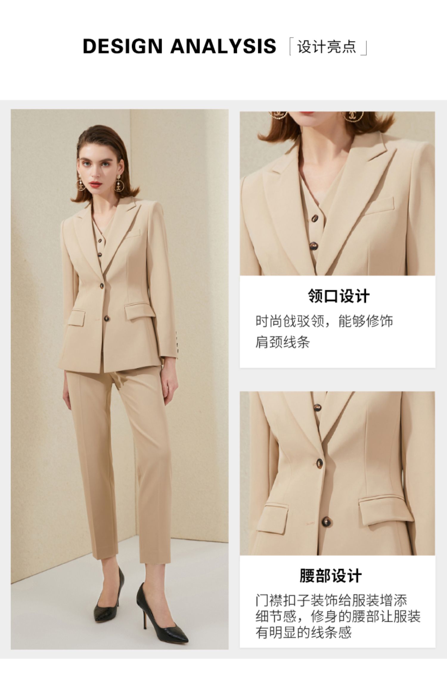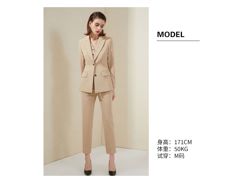 IWY/卡其色西装西服马甲套装女英伦风高端职业正装通勤ol轻熟气质 213121C1+P1+C6