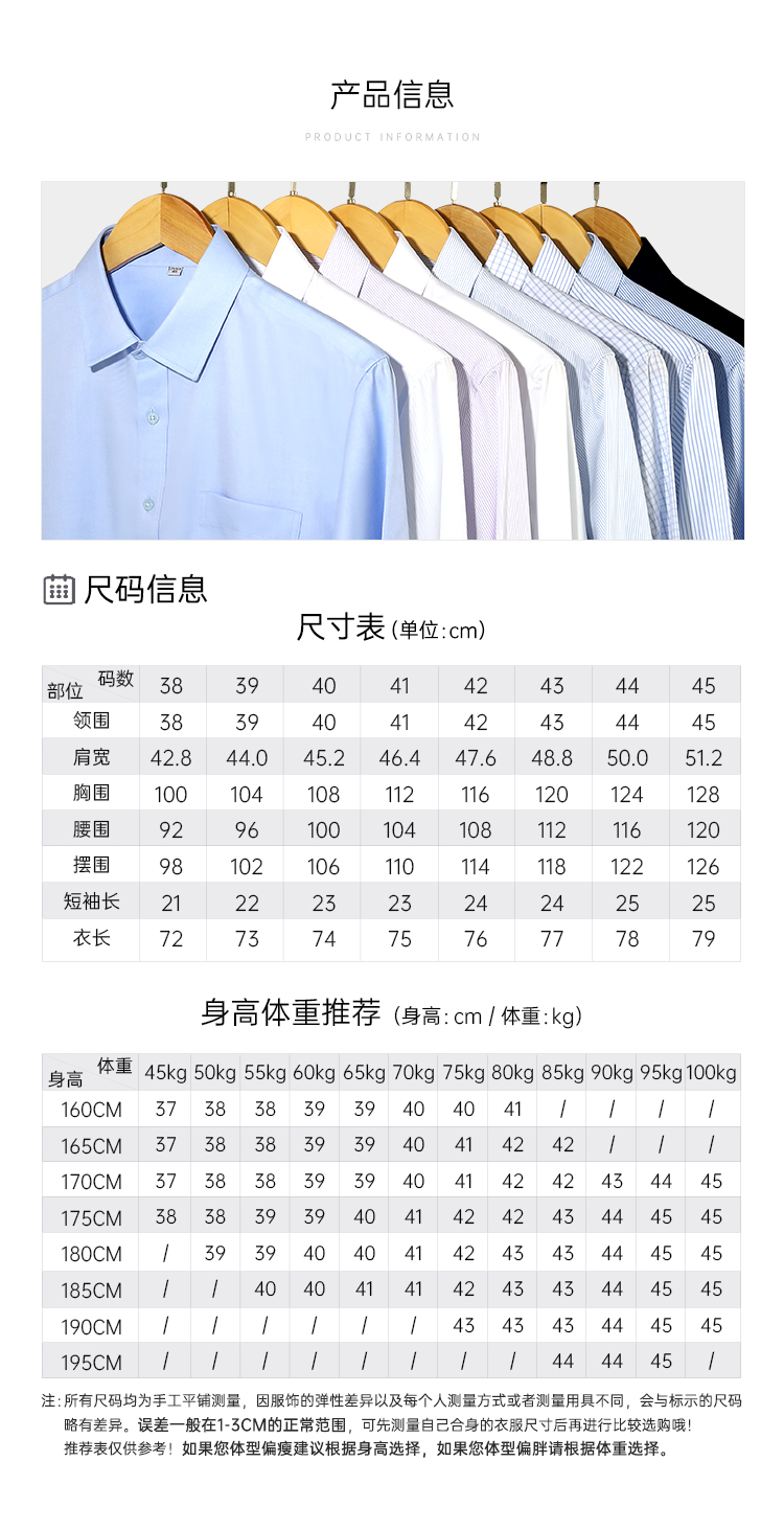 【实付满399送保温杯】【DP成衣免烫长袖衬衫】商务通勤翻领长袖/短袖衬衫 透气免烫男士上衣