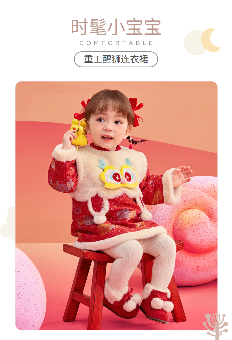巴拉巴拉童装婴儿连衣裙儿童裙子2025新款春秋装女宝宝拜年服国风