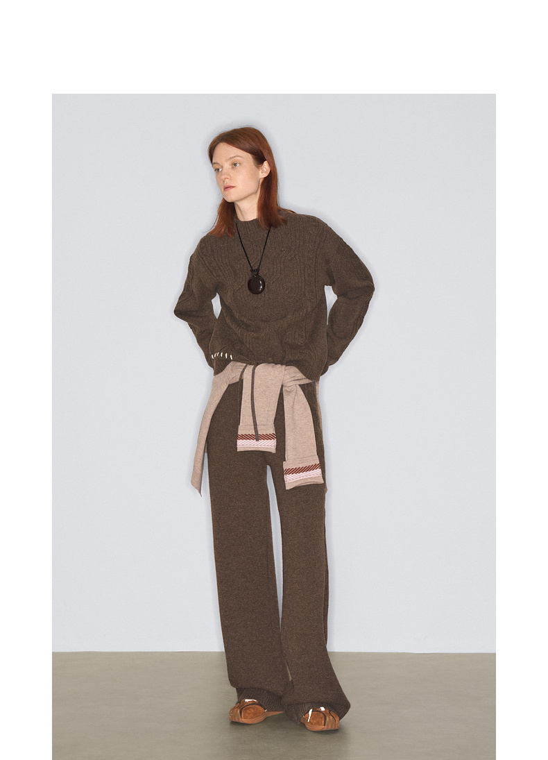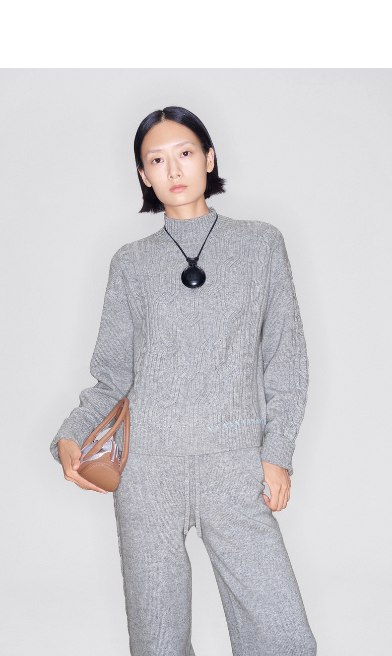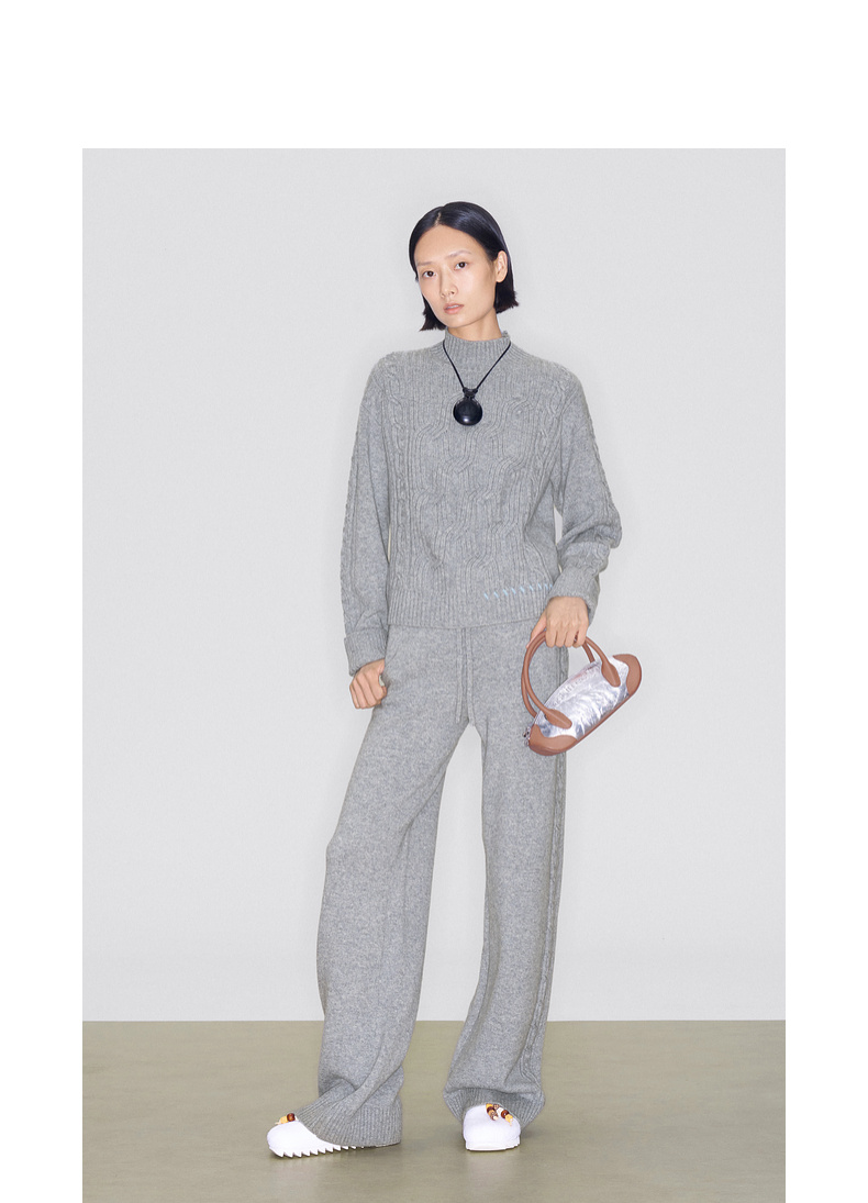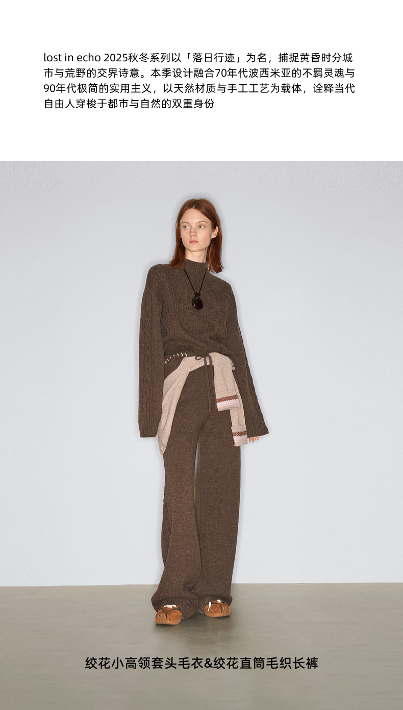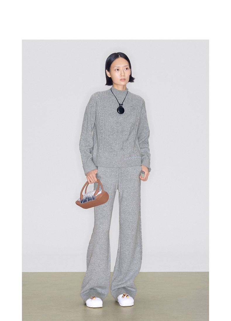lost in echo2025早秋新款修身手绣绞花小高领套头毛衣直筒长裤女