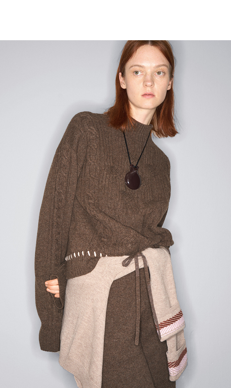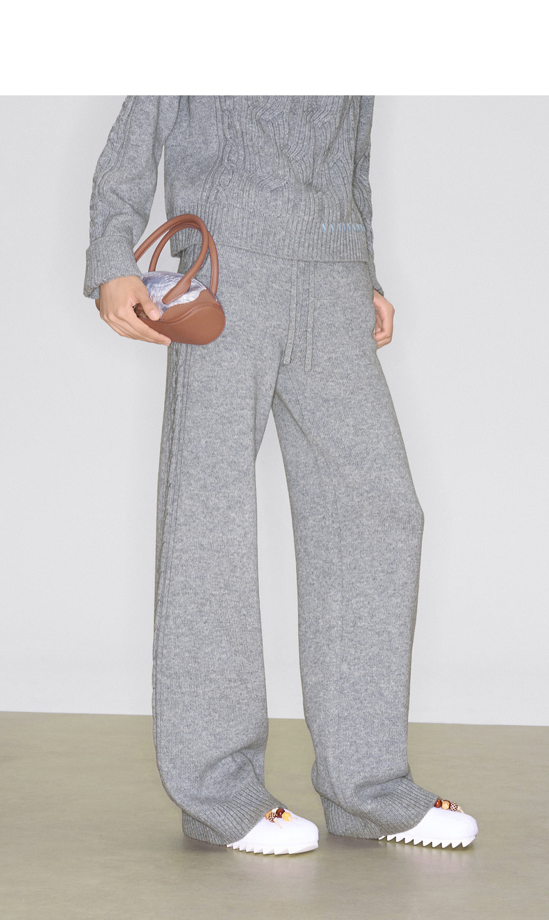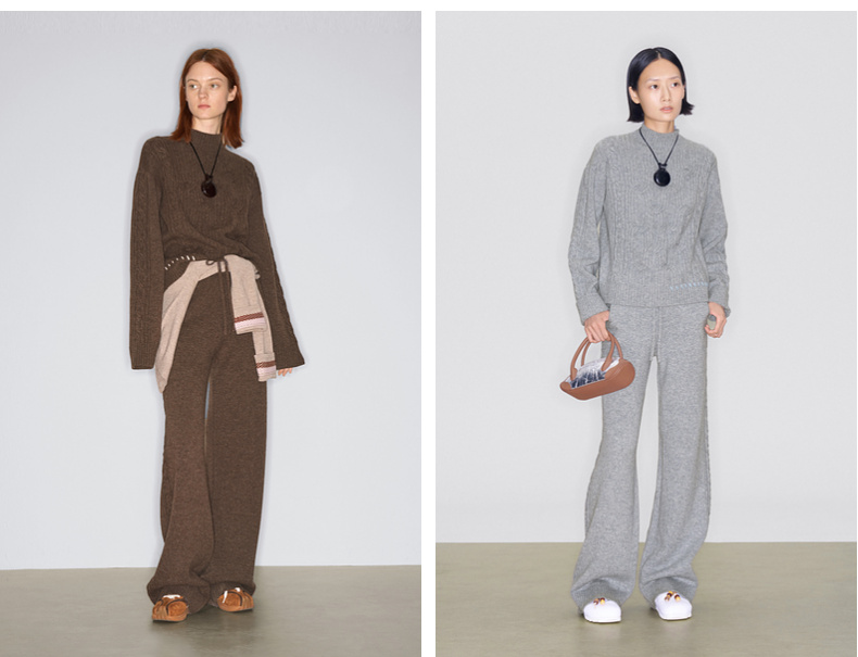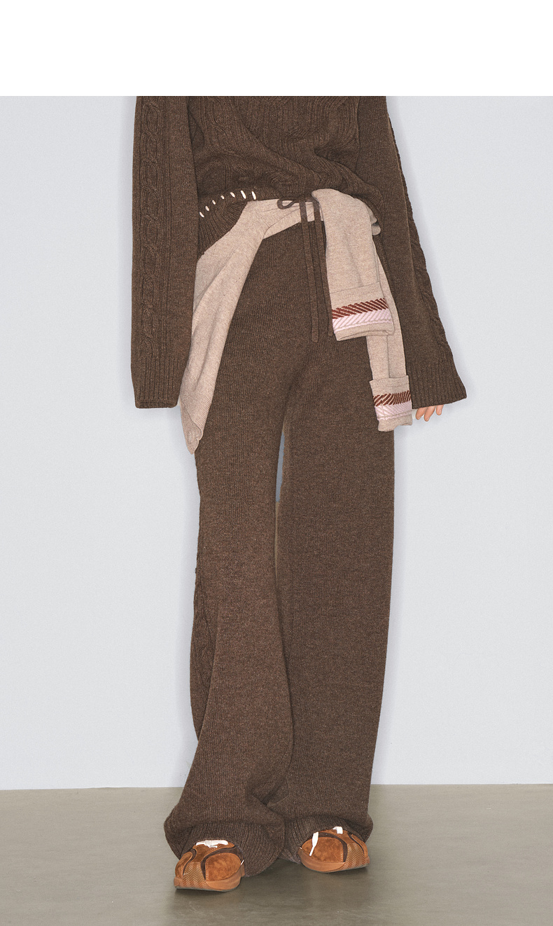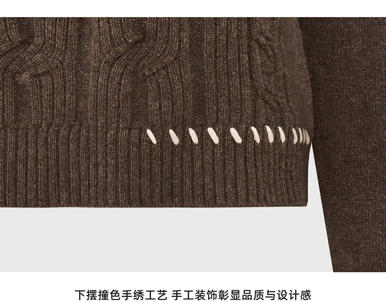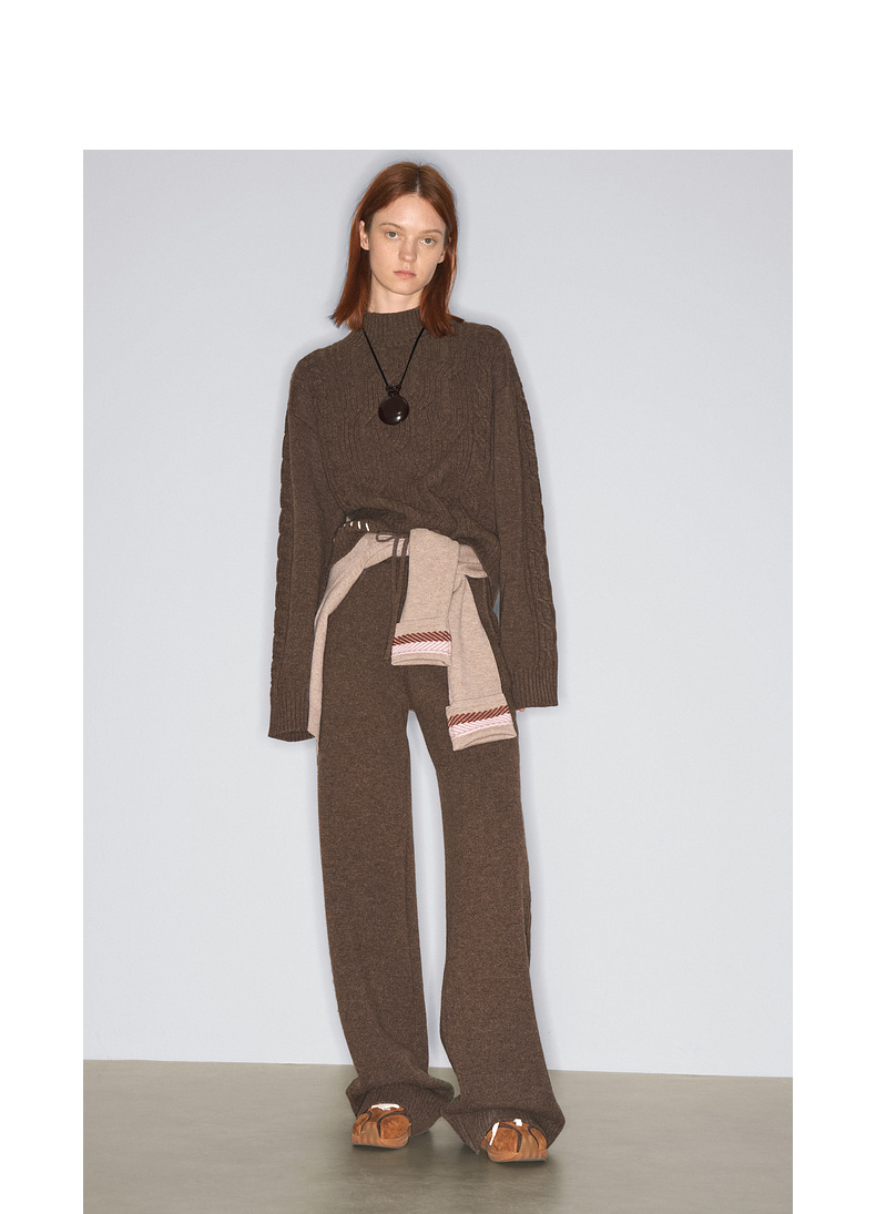 lost in echo2025早秋新款修身手绣绞花小高领套头毛衣直筒长裤女