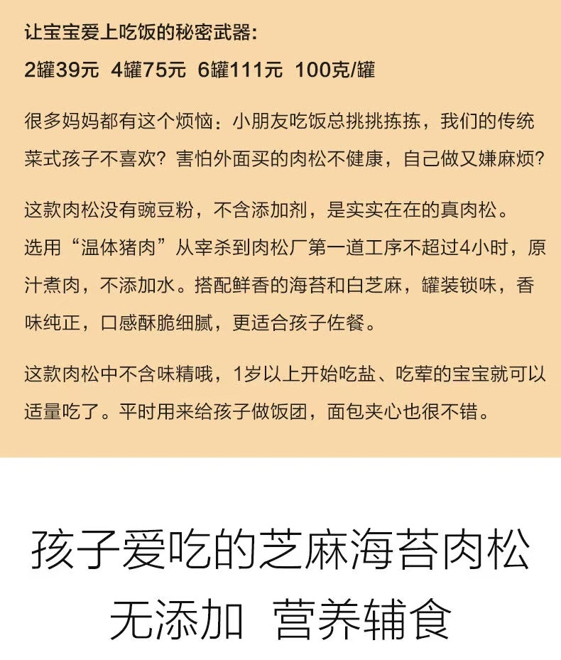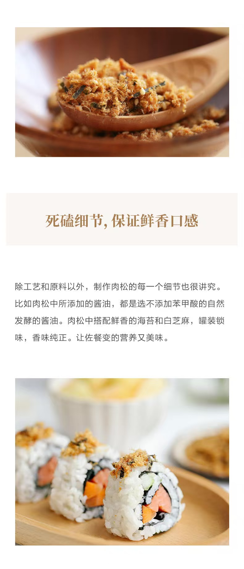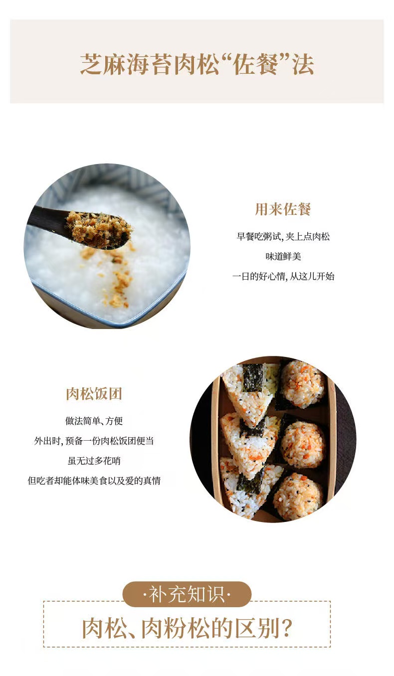 【2罐减11元 4罐减25元,6罐减39元】【定制 芝麻海苔肉松 】 每罐100g 无添加剂防腐剂 新鲜制作 可以当零食吃 可搭配各类点心 拌粥 大人小孩都爱湖州仓