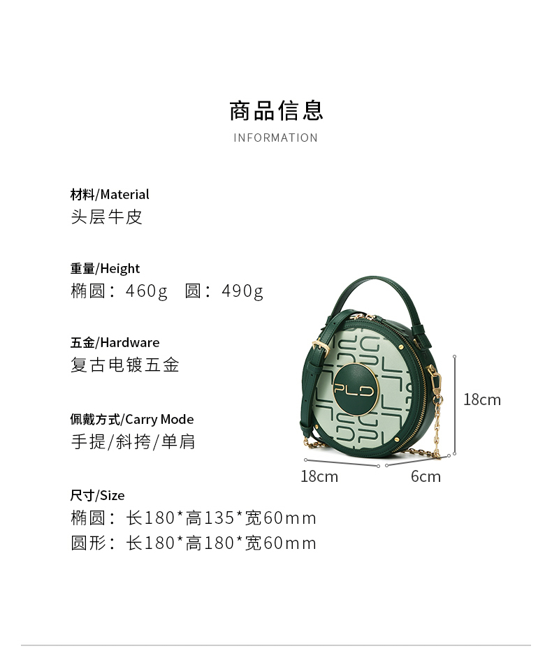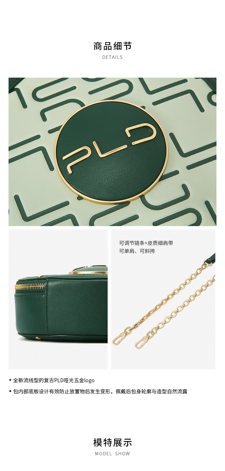保兰德PLD东方雅奢贝壳系列棱格小圆包 单肩斜挎包通勤必备女包