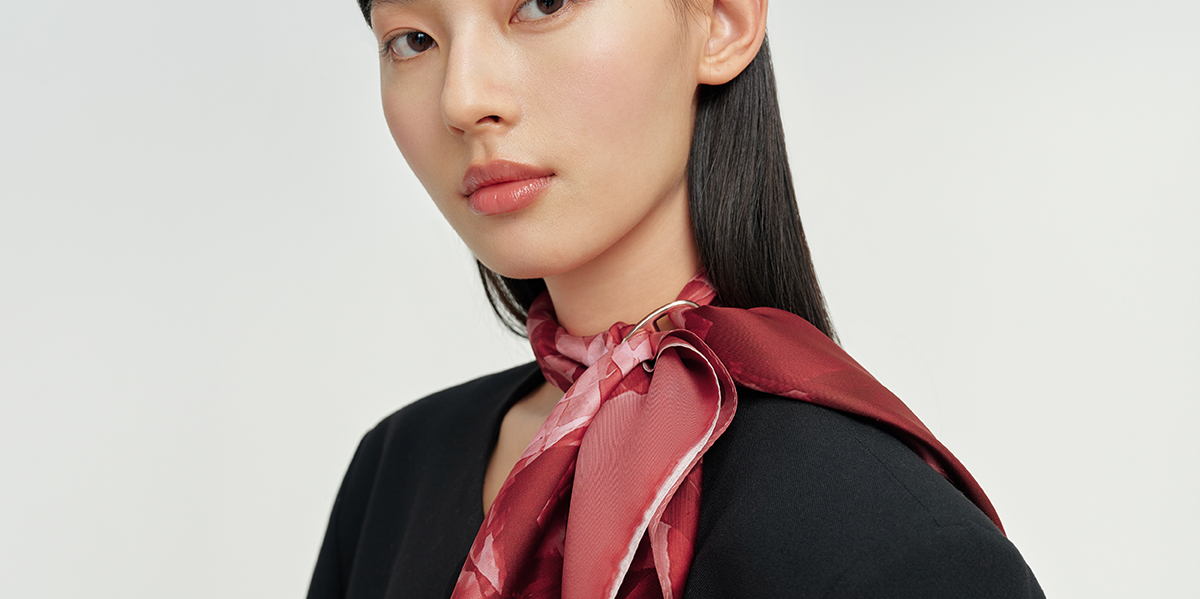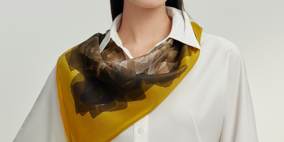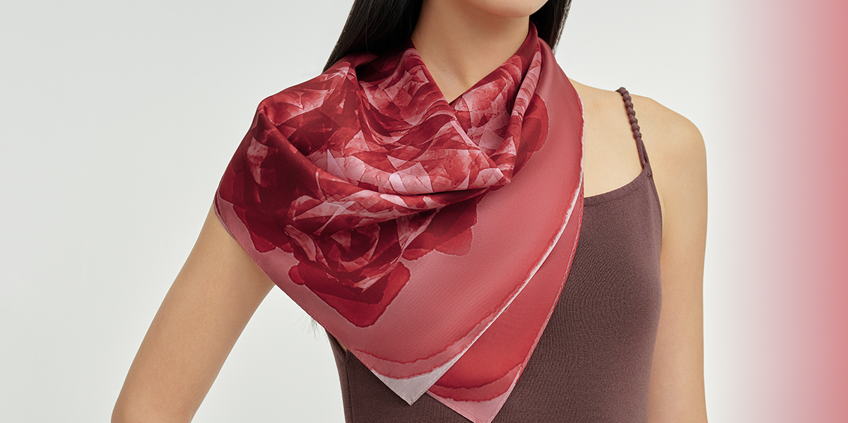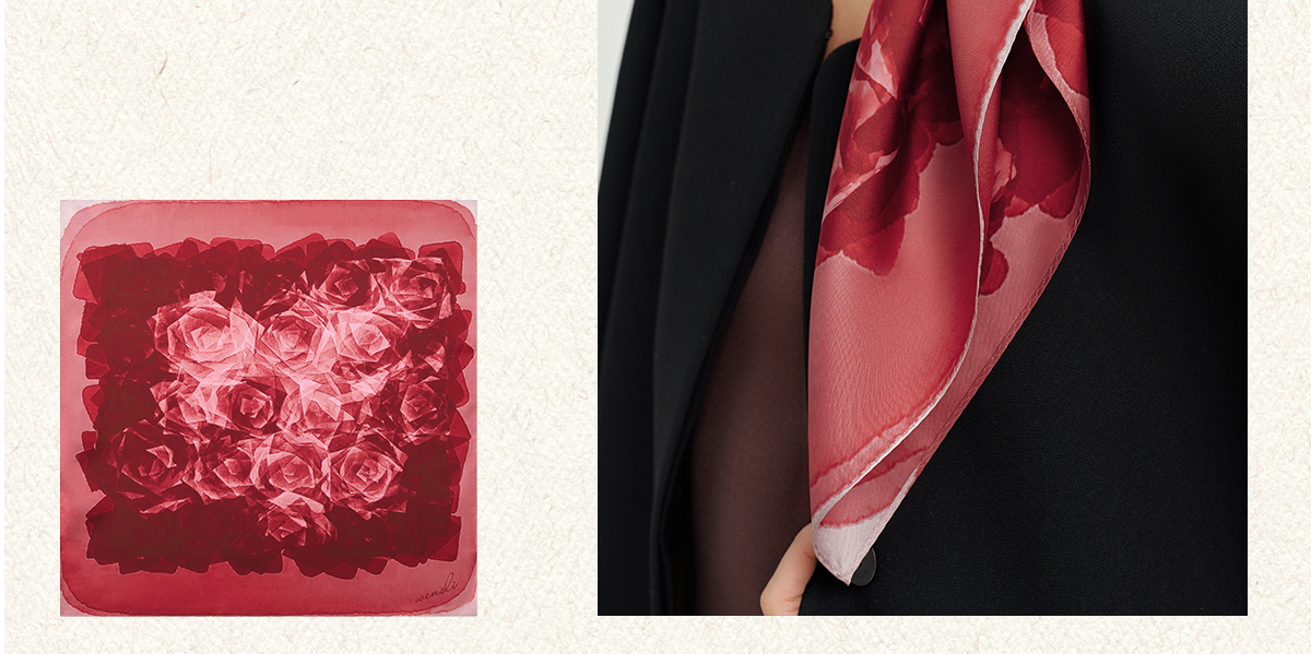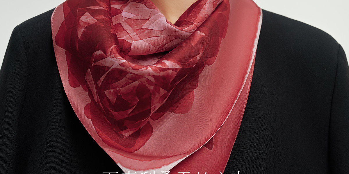 万事利双面印花中方巾-好运玫瑰