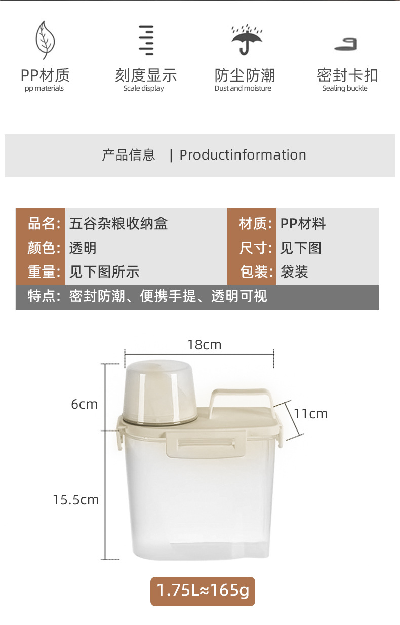 【醒粉福利19.9元大中小三个装】家用米桶食品级储物罐 密封防虫防潮面粉五谷杂粮收纳盒