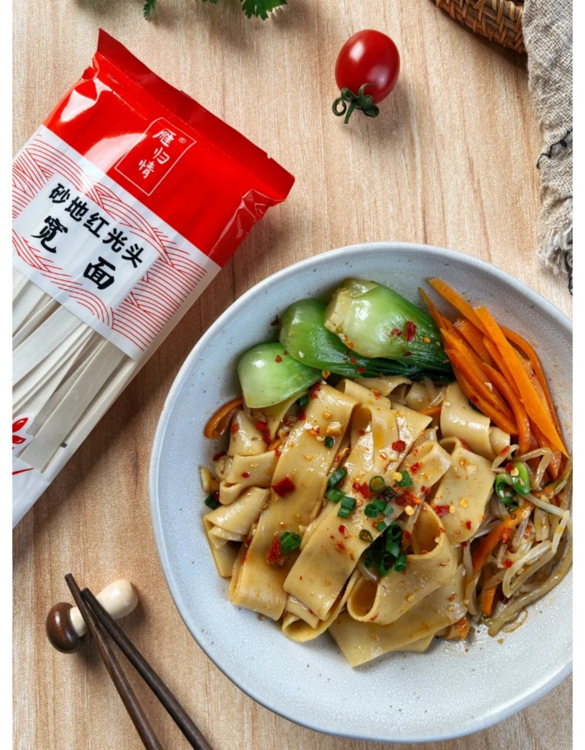 做手工扯面的过程相对来说比较复杂,好多人不会做也没有时间、精力做,这款宽面可以让你躺平也能轻松吃到手工扯面的味道,无需和面、揉面、醒面、扯面,在家也能轻松喋一碗地道的陕西油泼面,既满足口腹之欲又健康方便。
