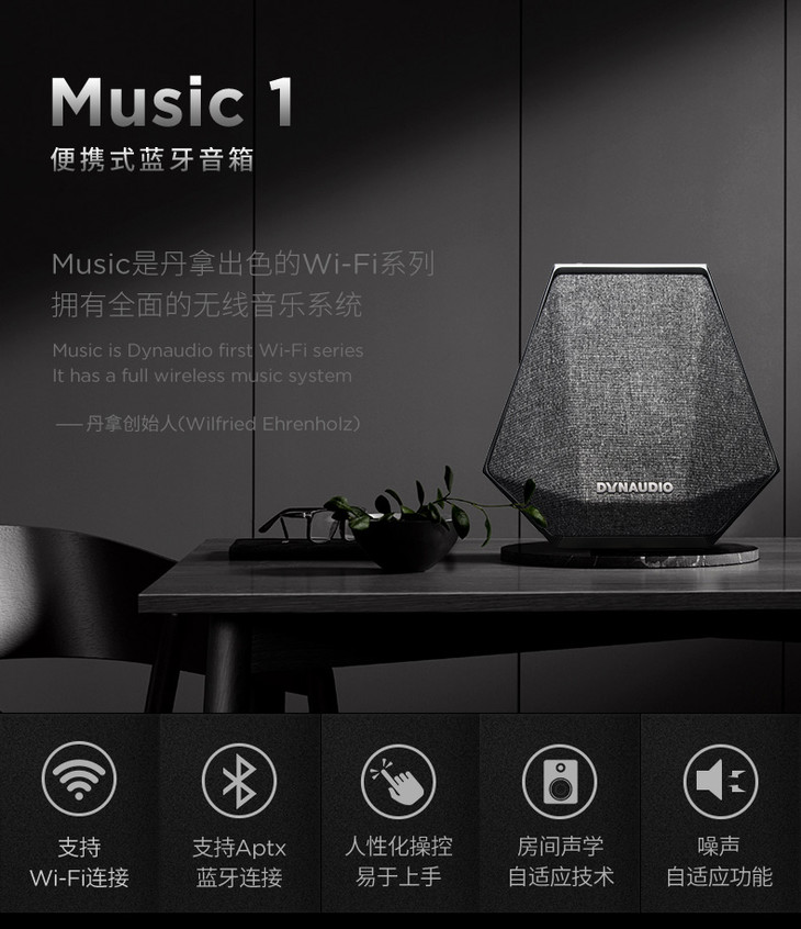 Dynaudio/丹拿 Music 1无线蓝牙音箱迷你手机重低音便携式音响wifi户外音箱桌面通用