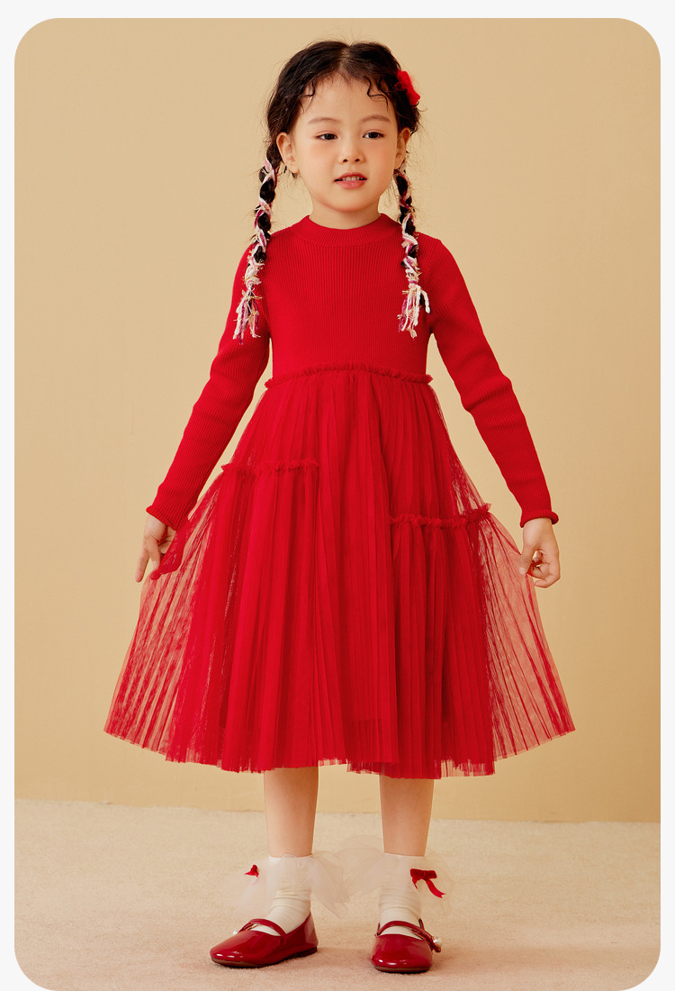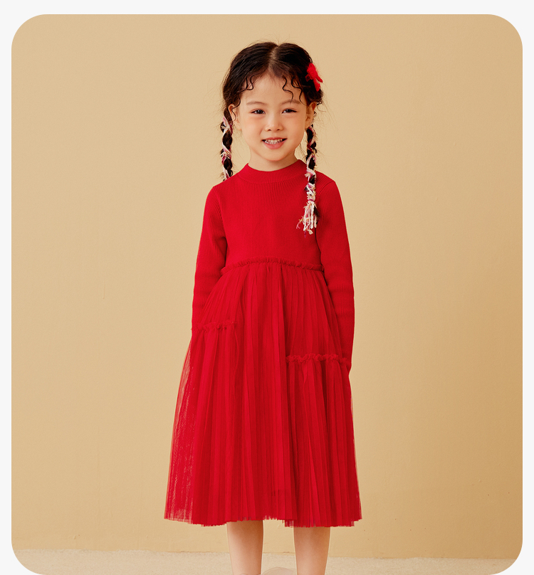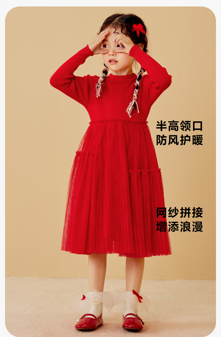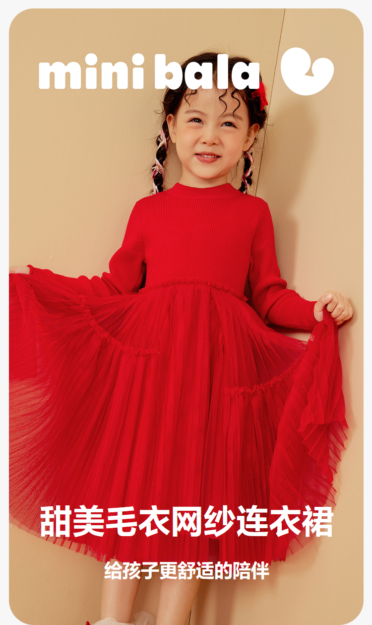 迷你巴拉女童连衣裙龙年新春宝宝舒适修身甜美网纱拼接公主裙