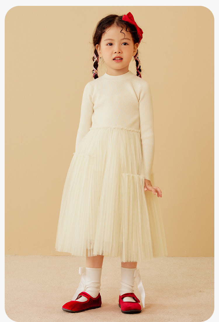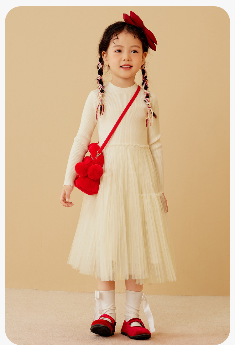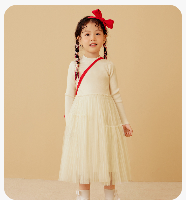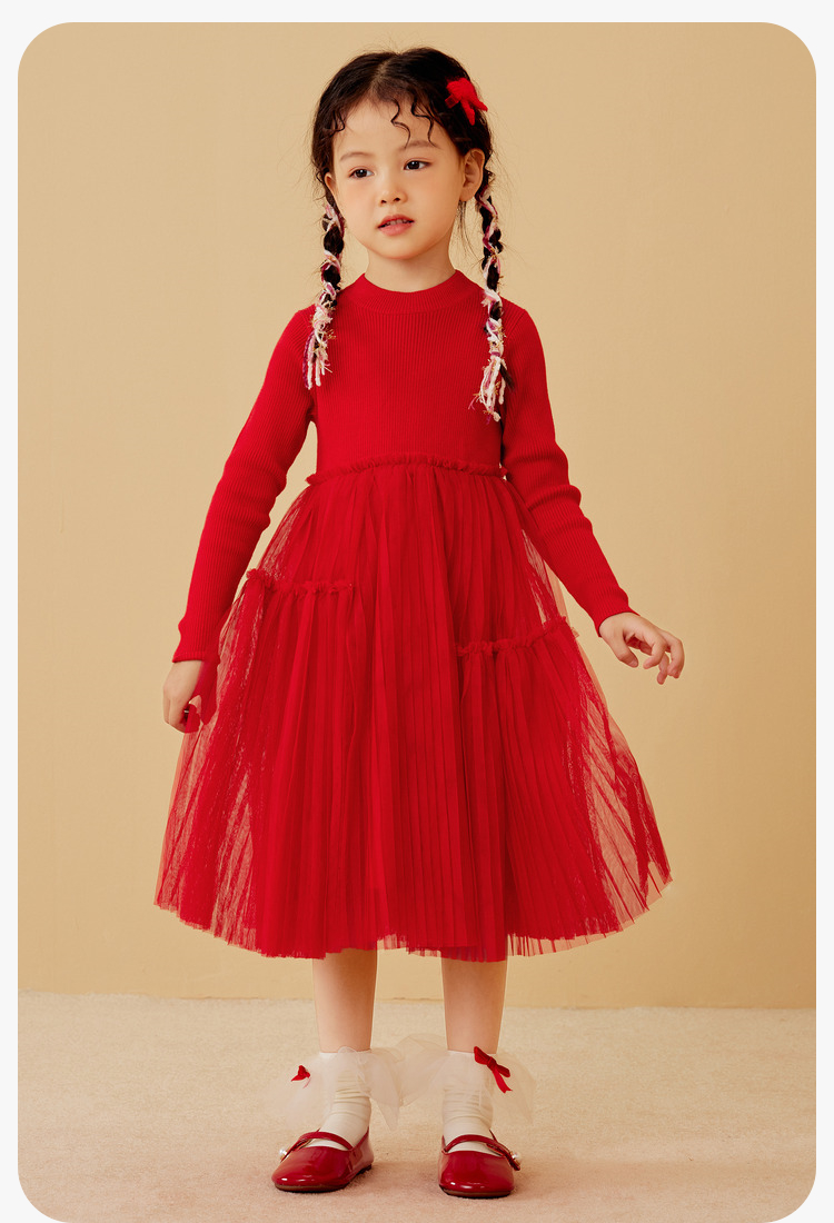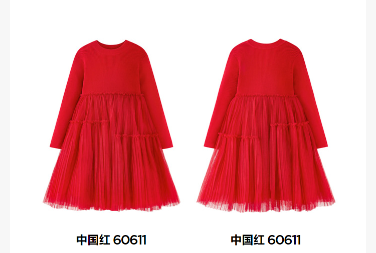 迷你巴拉女童连衣裙龙年新春宝宝舒适修身甜美网纱拼接公主裙