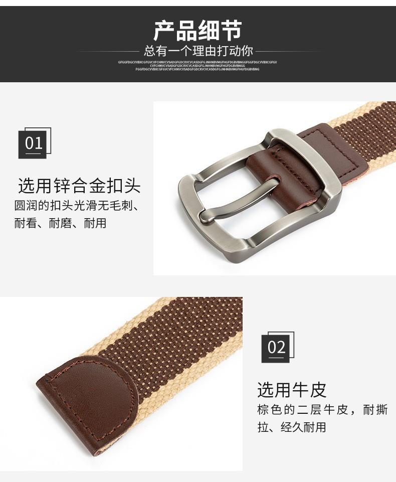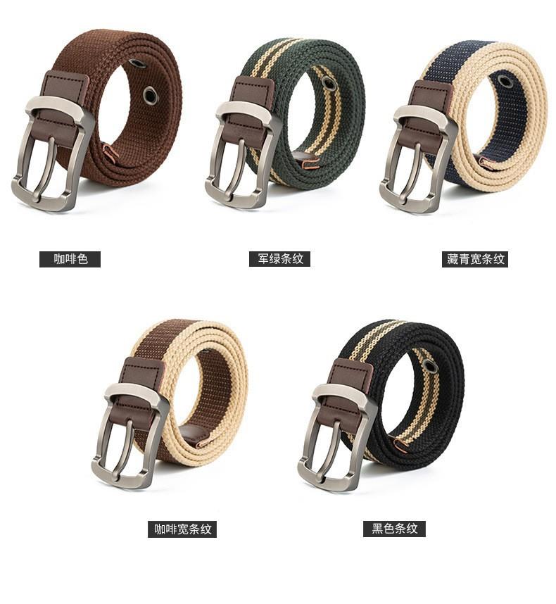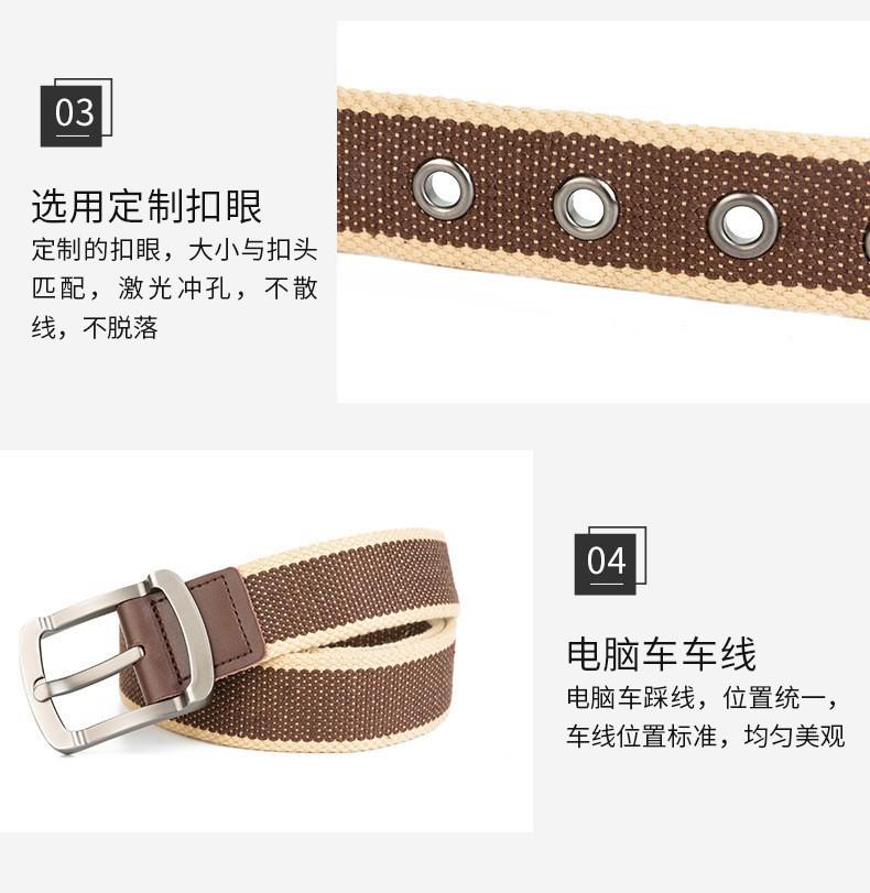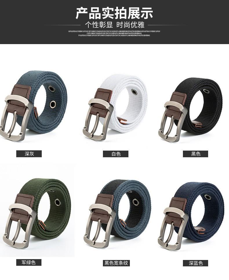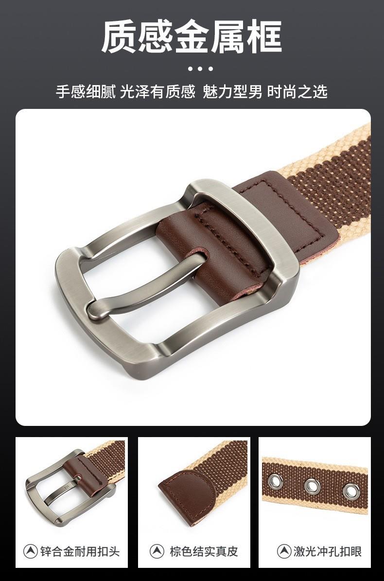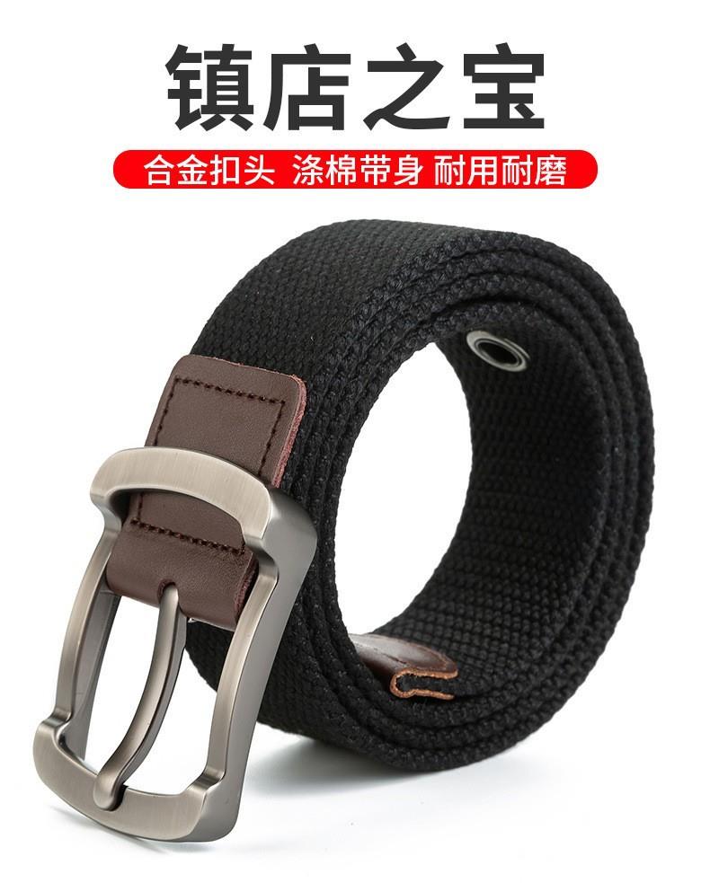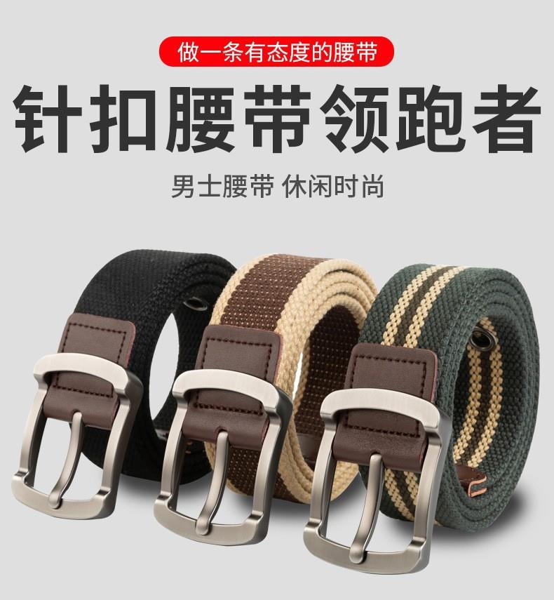 2023新款帆布涤纶男士皮带方形针扣合金扣头腰带男款裤带潮