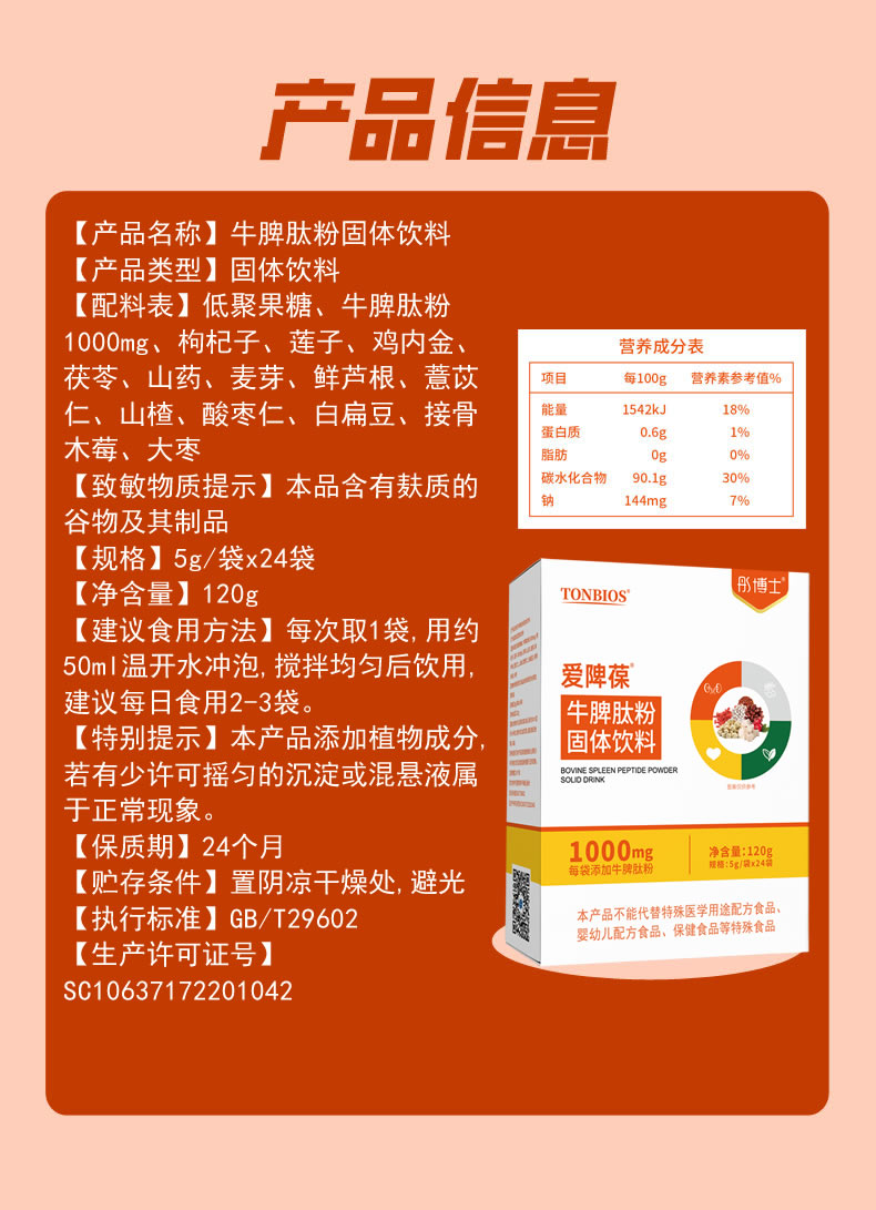 ³ 【彤博士牛脾肽粉】每袋含牛脾肽1000mg 复配鸡内金+山药粉+山楂等多种 5g*24条/盒 XN03-CRMM-TYS