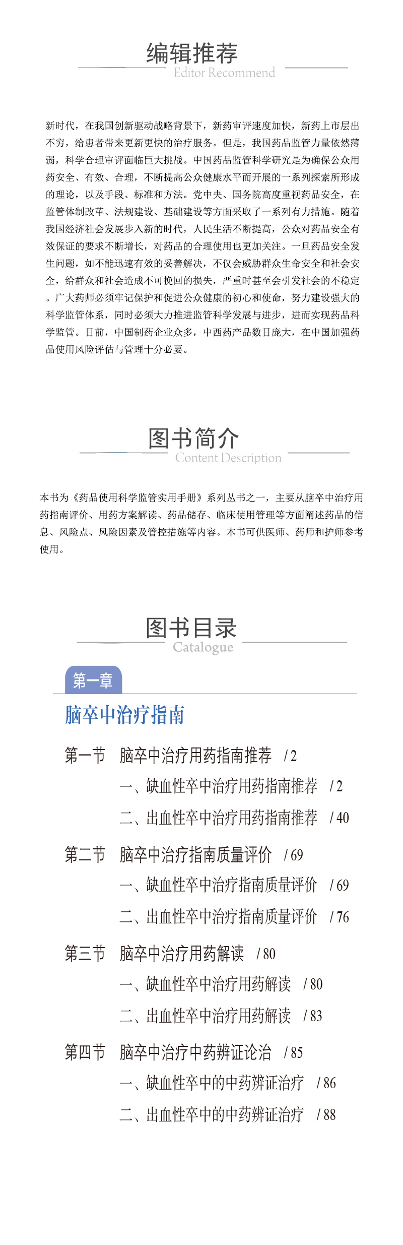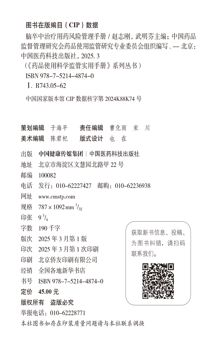 脑卒中治疗用药风险管理手册 药品使用科学监管实用手册系列丛书 赵志刚 武明芬编 供医师药师和护师参考使用 中国医药科技出版社