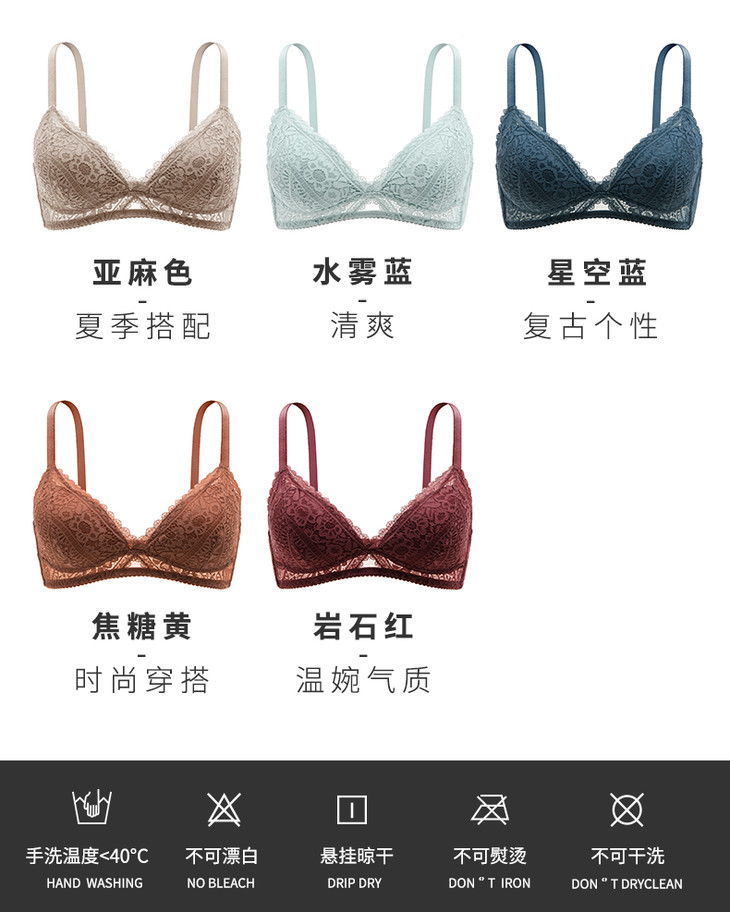 HSIA遐 蕾丝中小胸文胸香榭落叶三角杯bralette无钢圈内衣女薄款