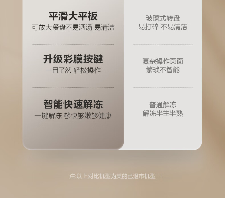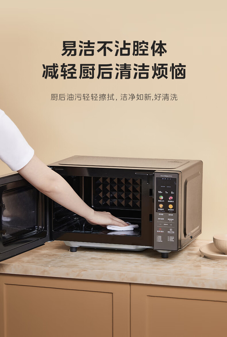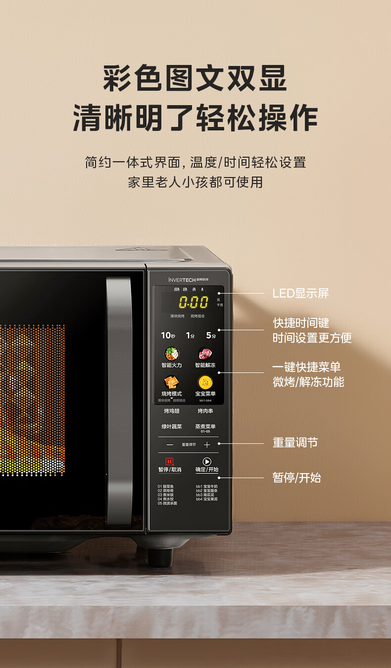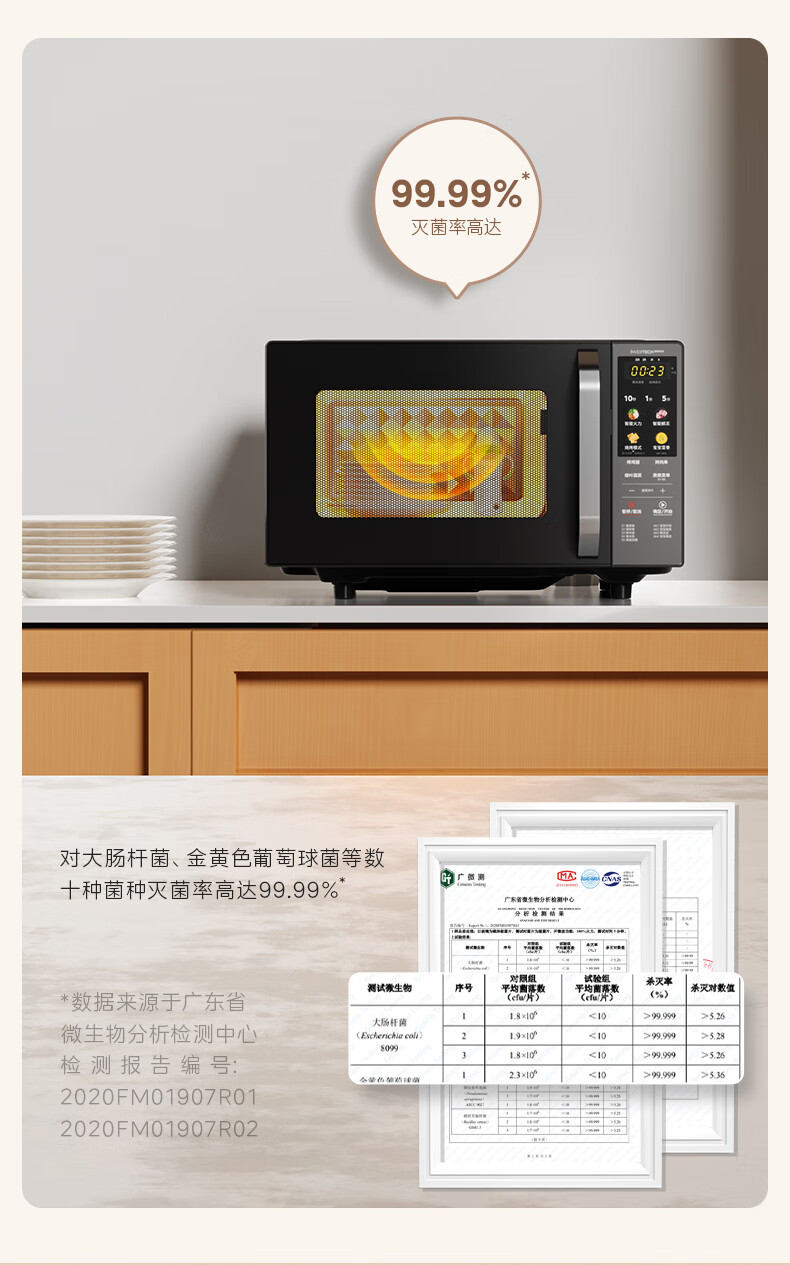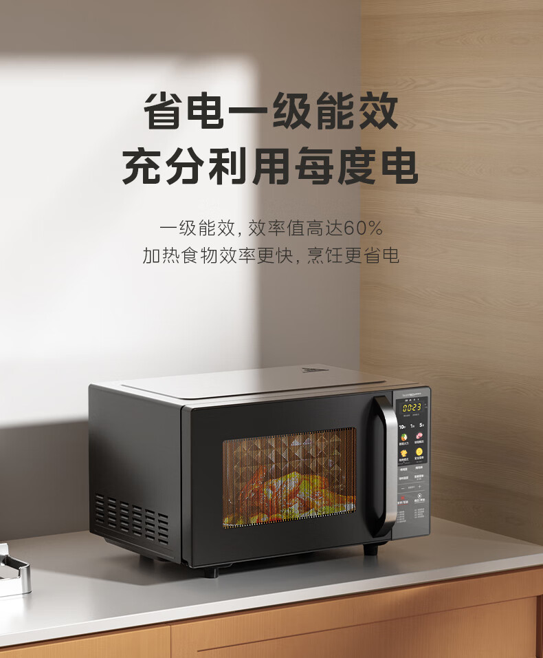 美的 20L容量变频微波炉 快速解冻 多道自动菜单 800w速热 四挡火力 智能解冻 平滑大平板 一键微波杀菌 PC20J3