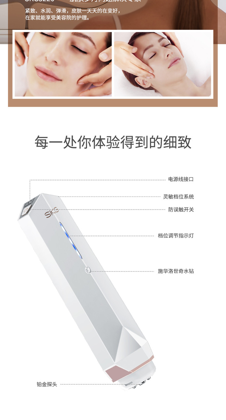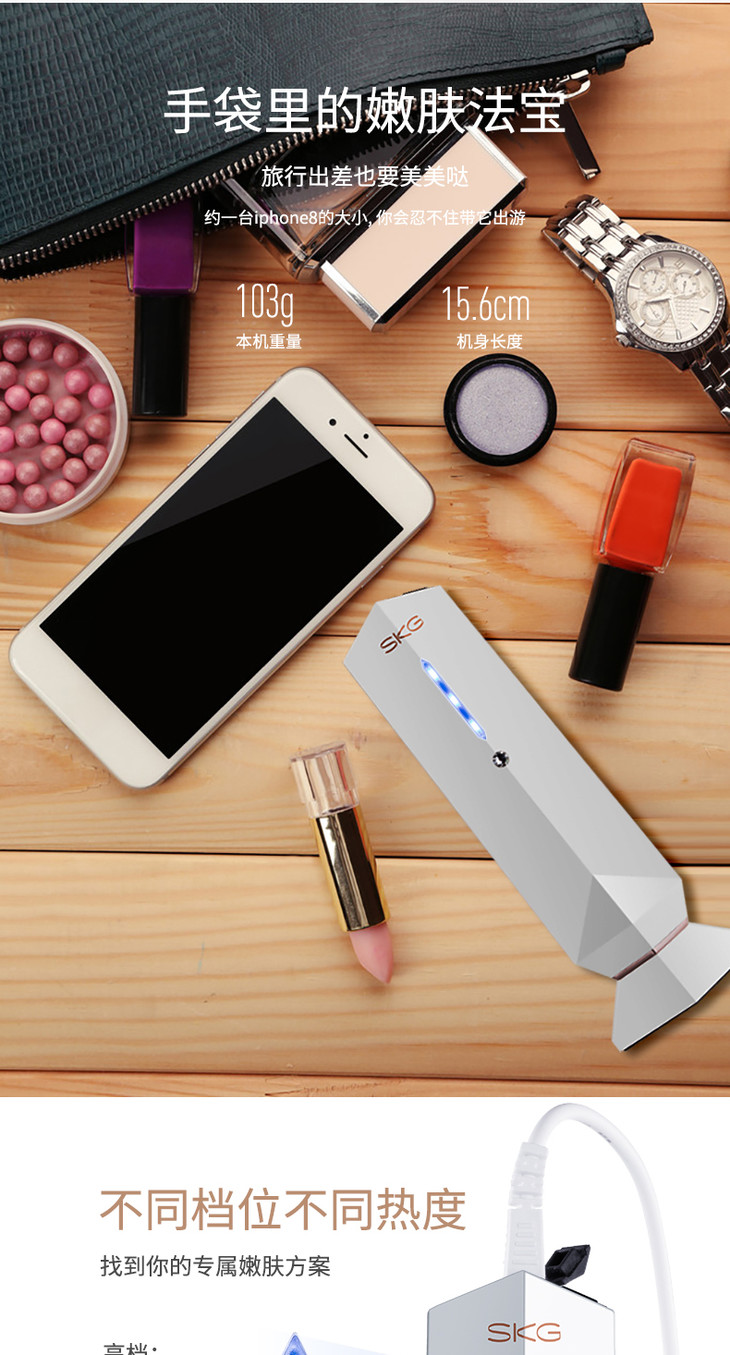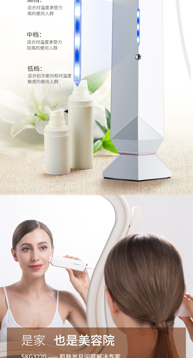 SKG 射频仪电动洁面仪 男女脸部按摩器 智能射频嫩肤童颜仪 洗脸清洁器3220 白色