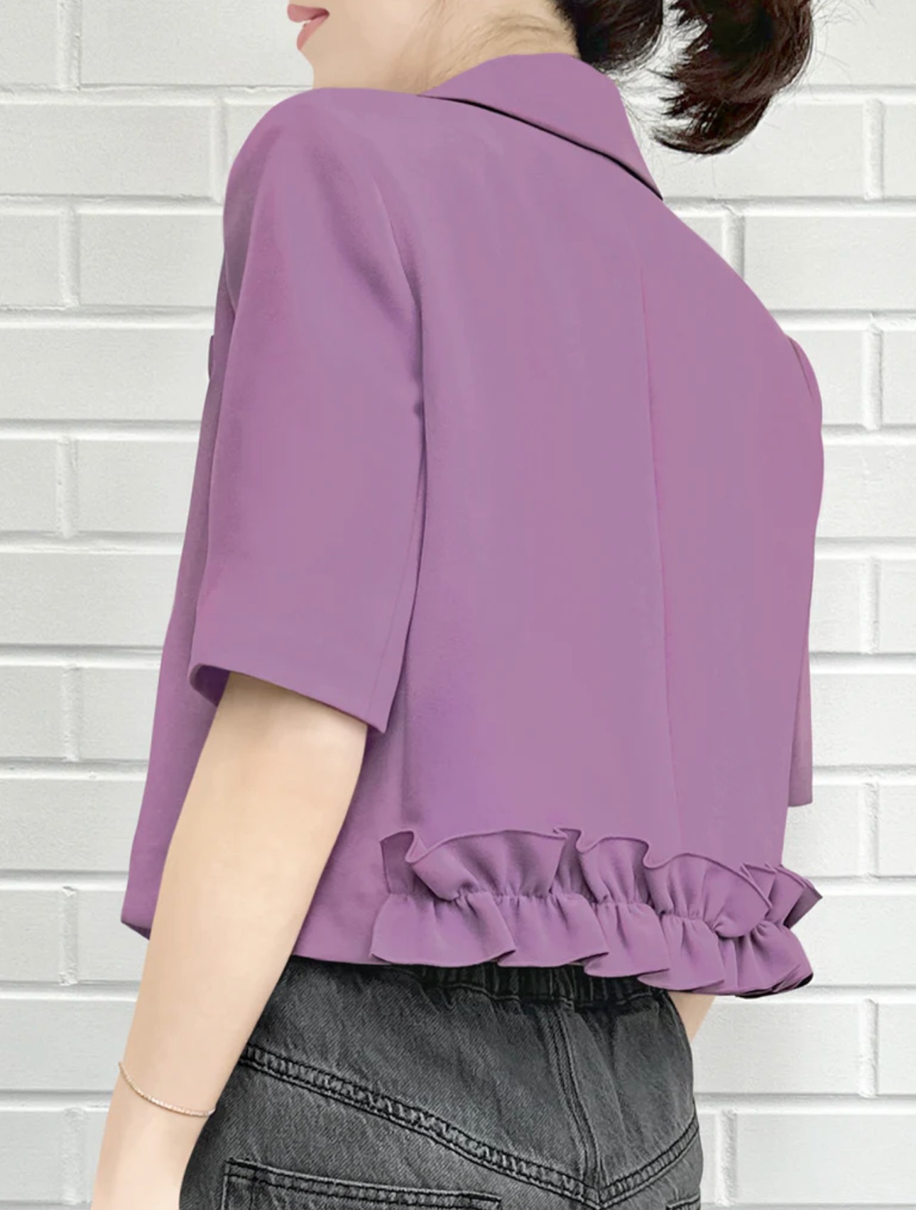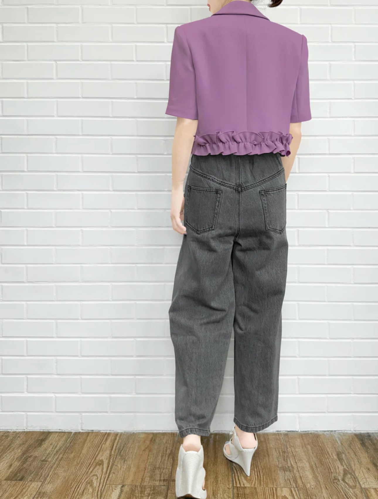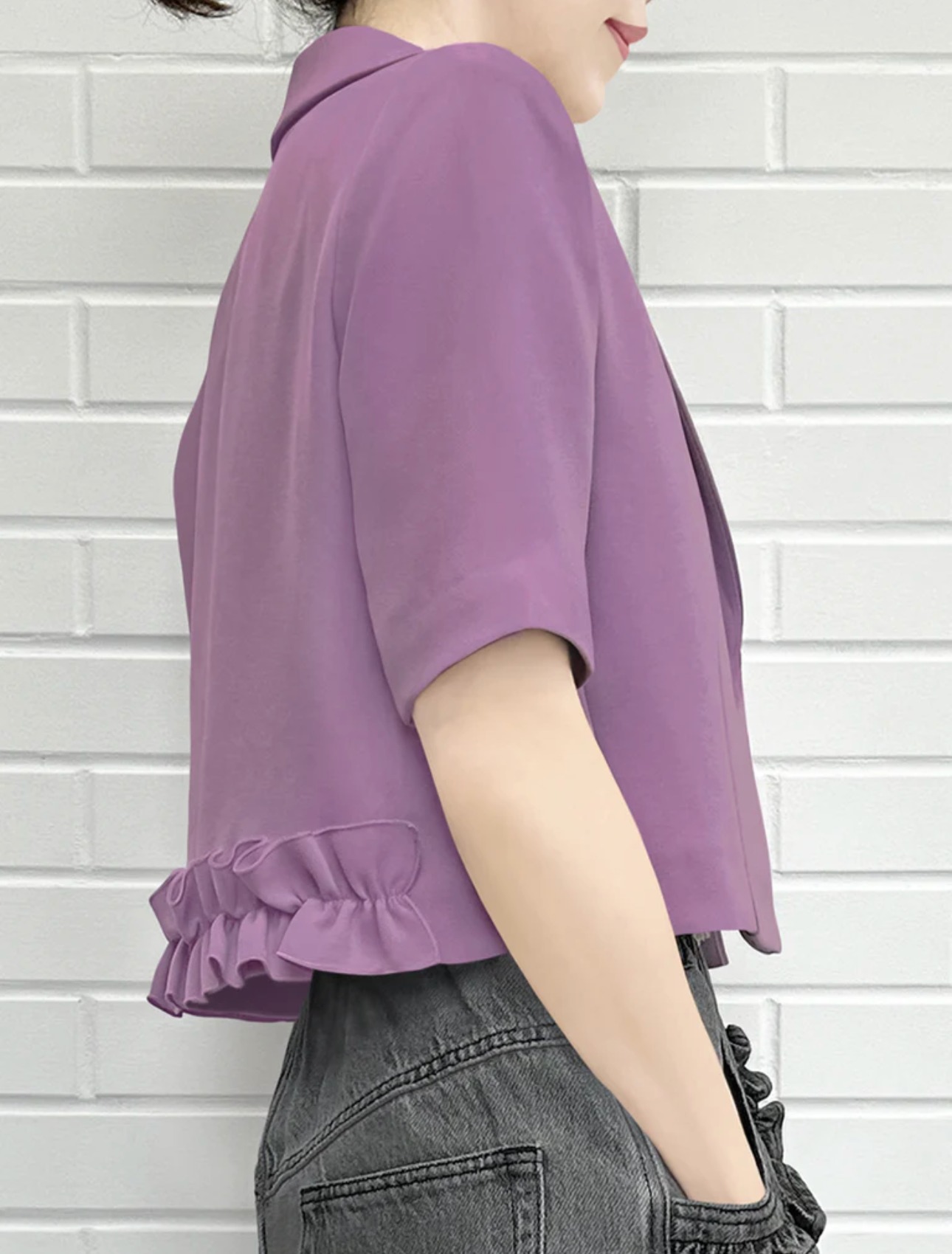 TYNVIE 荷叶边袋口装饰廓形西装-蓝色白点