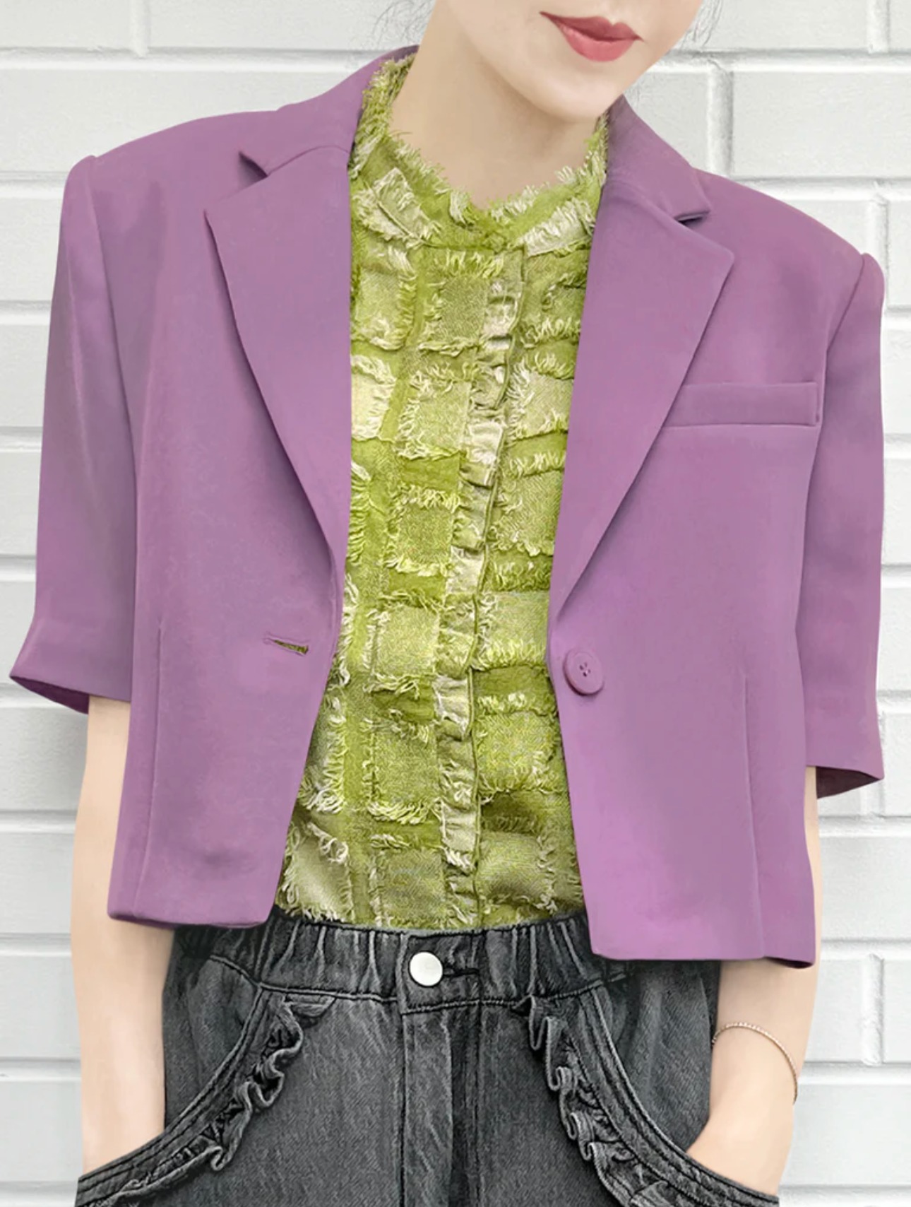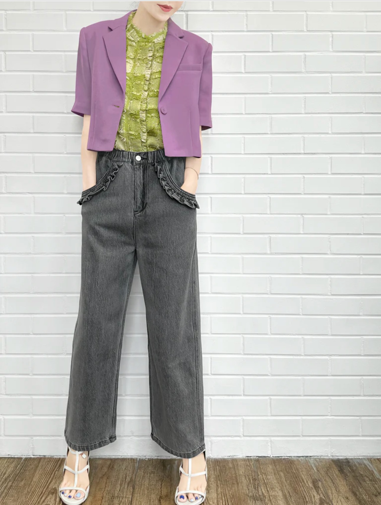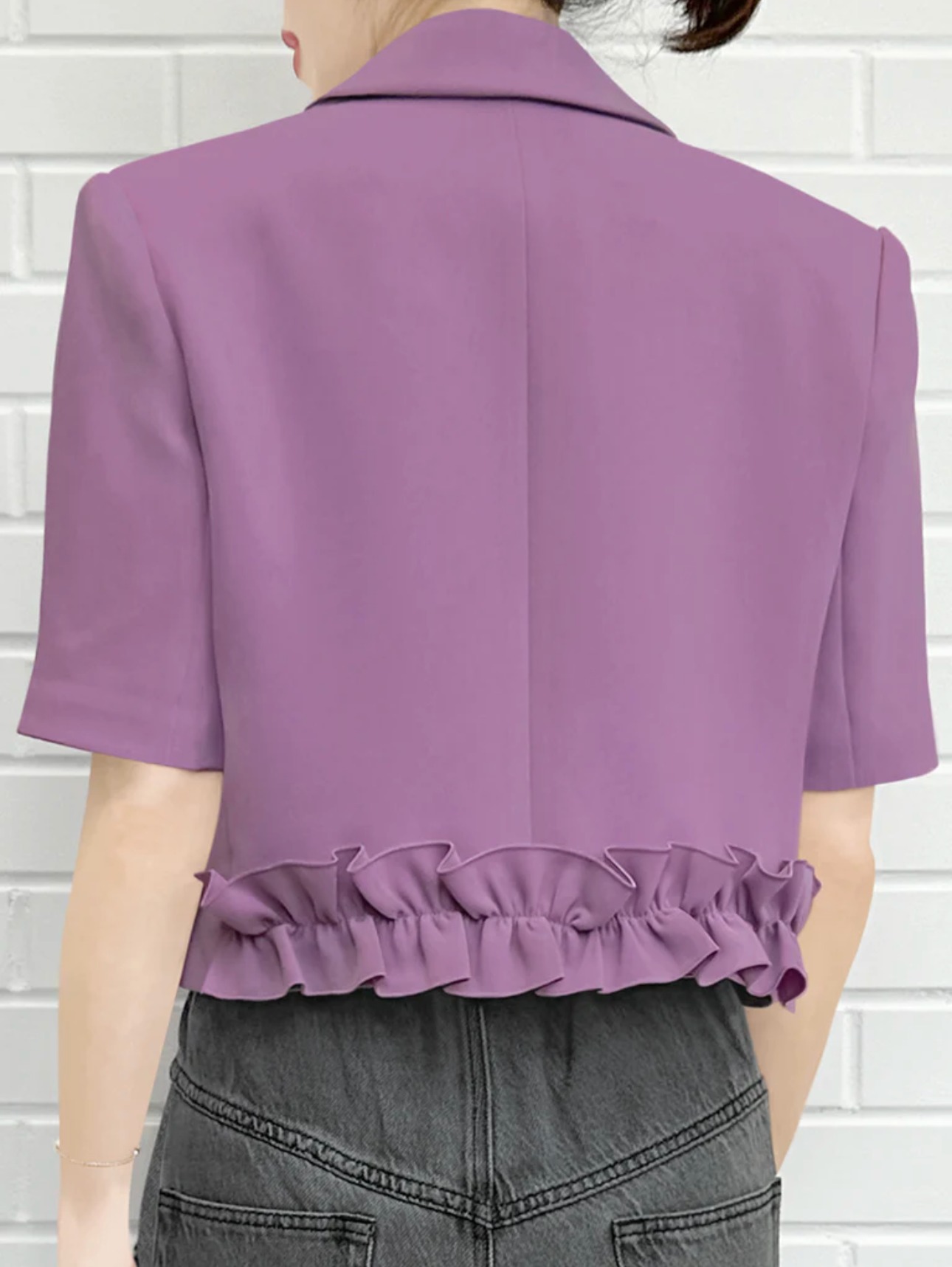 TYNVIE 荷叶边袋口装饰廓形西装-蓝色白点