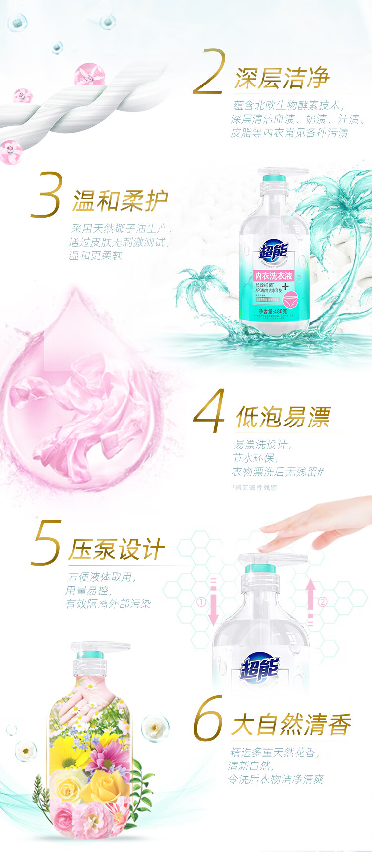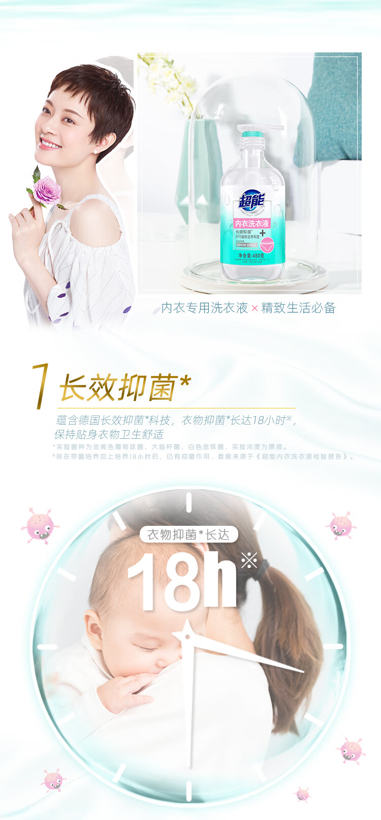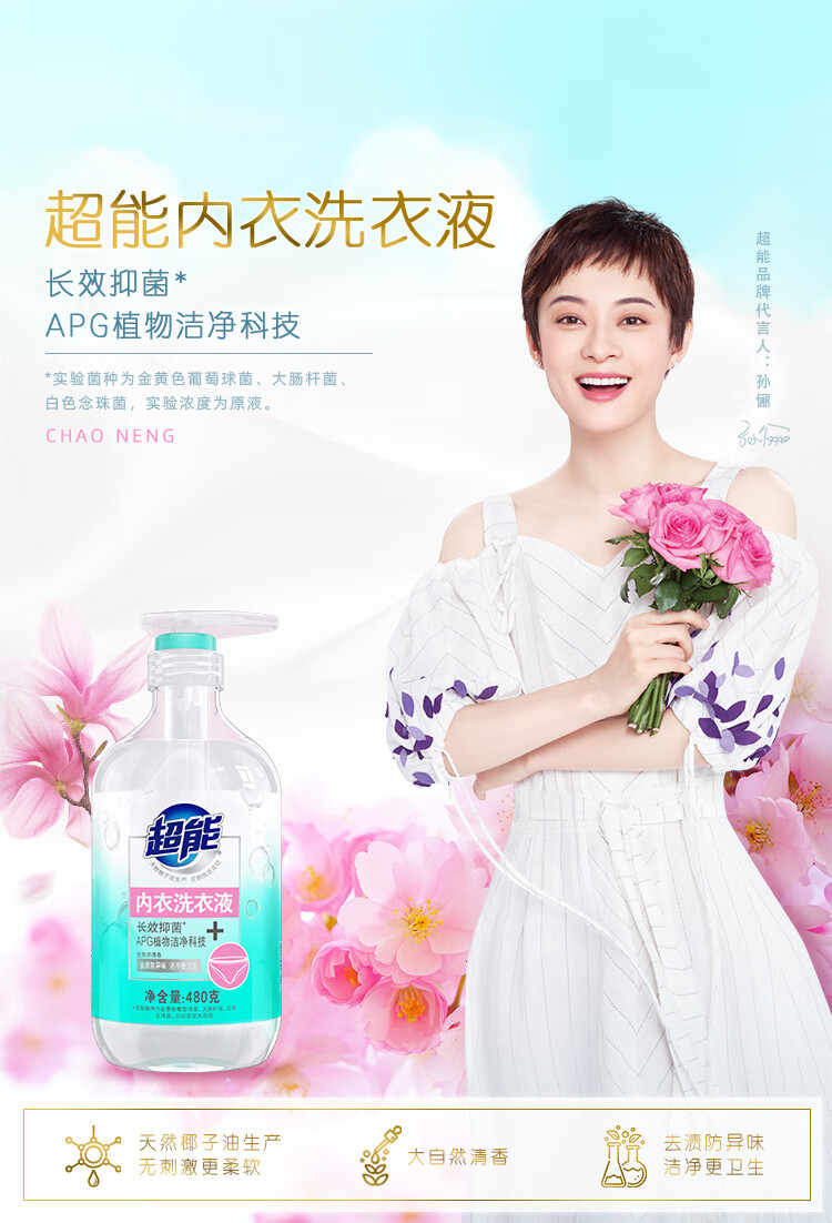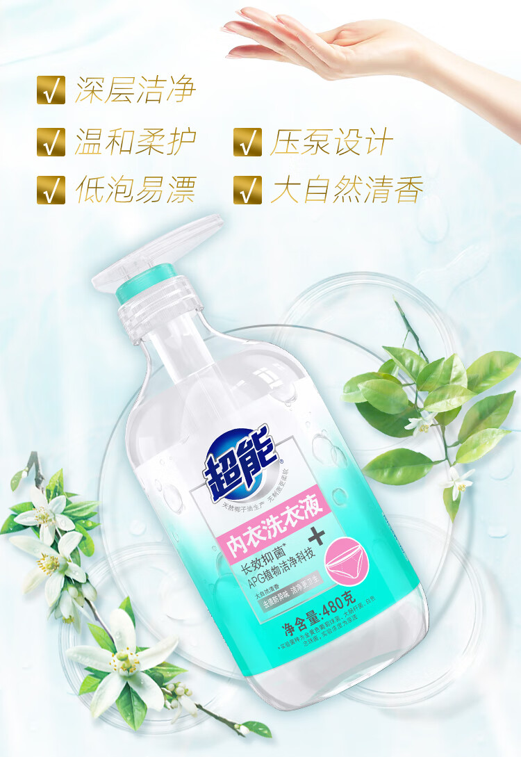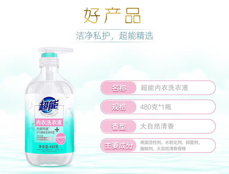 超能 内衣洗衣液 480g 长效抑菌18小时 内衣内裤洗 男女通用