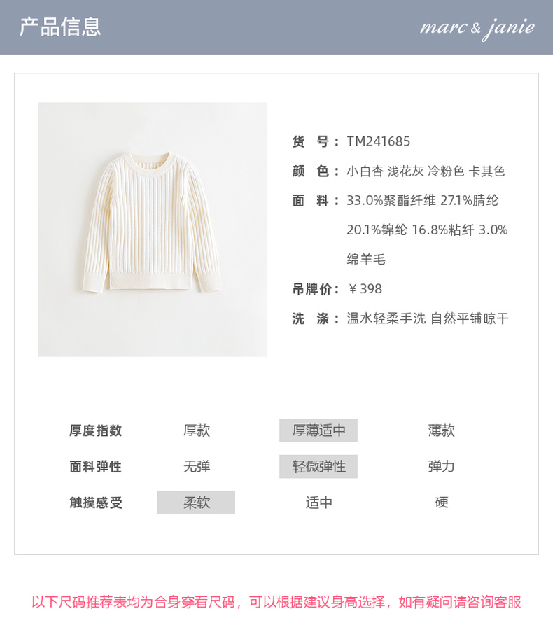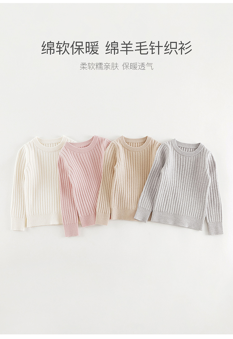 马克珍妮女童柔软绵羊毛圆领毛衣儿童针织衫2024年秋冬新款241685