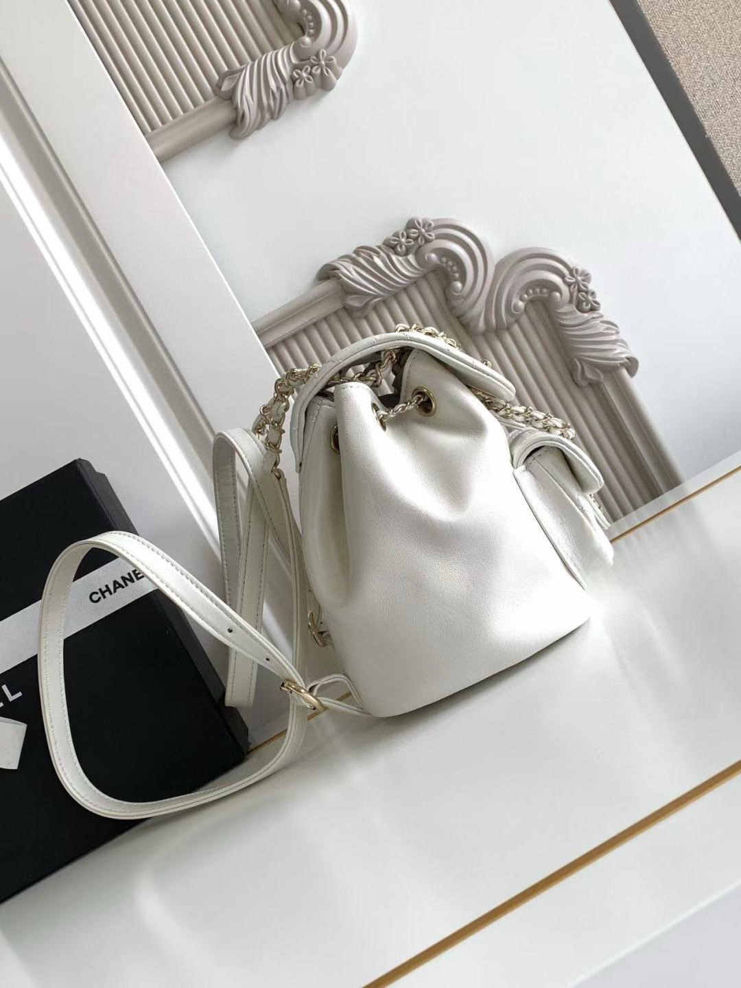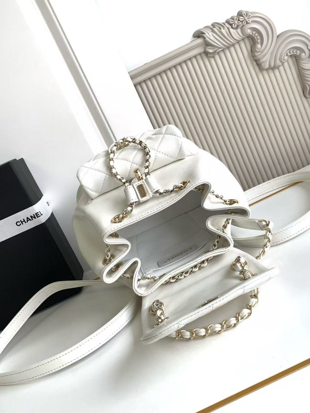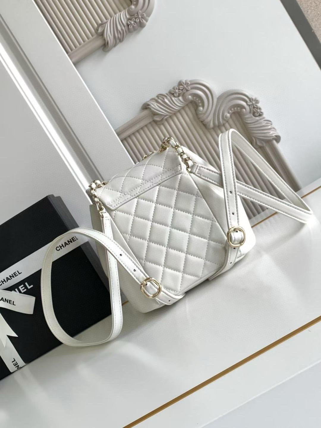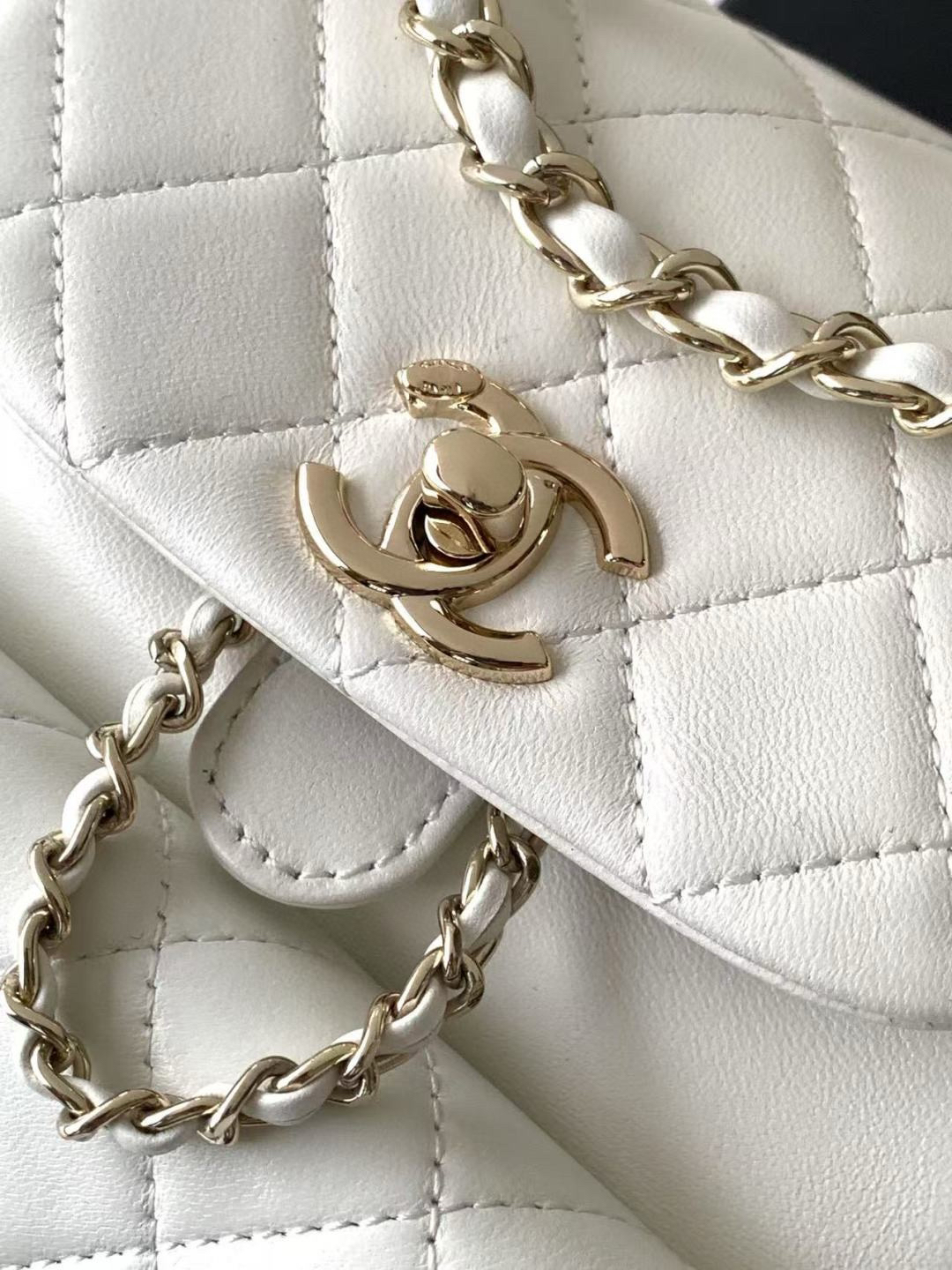 夏季特惠💰1180 原单香奈儿22A系列AS2908羊皮DUMA双肩小背包 女款背包 一眼爱上这个羊皮,这个白不用担心了,耐脏喔!容量超感人~夏天的花洋装搭这个一定无敌仙女!重点来了:视觉上体积只比方胖大一点点,背在身上超小巧可爱,容量却这么感人,手机、短夹、水瓶、伞,还有其他零碎小东西通通都可以超轻松装进,前面的磁扣可以放卡夹跟钥匙护唇膏,又仙又实用! 尺寸:18×18×12cm