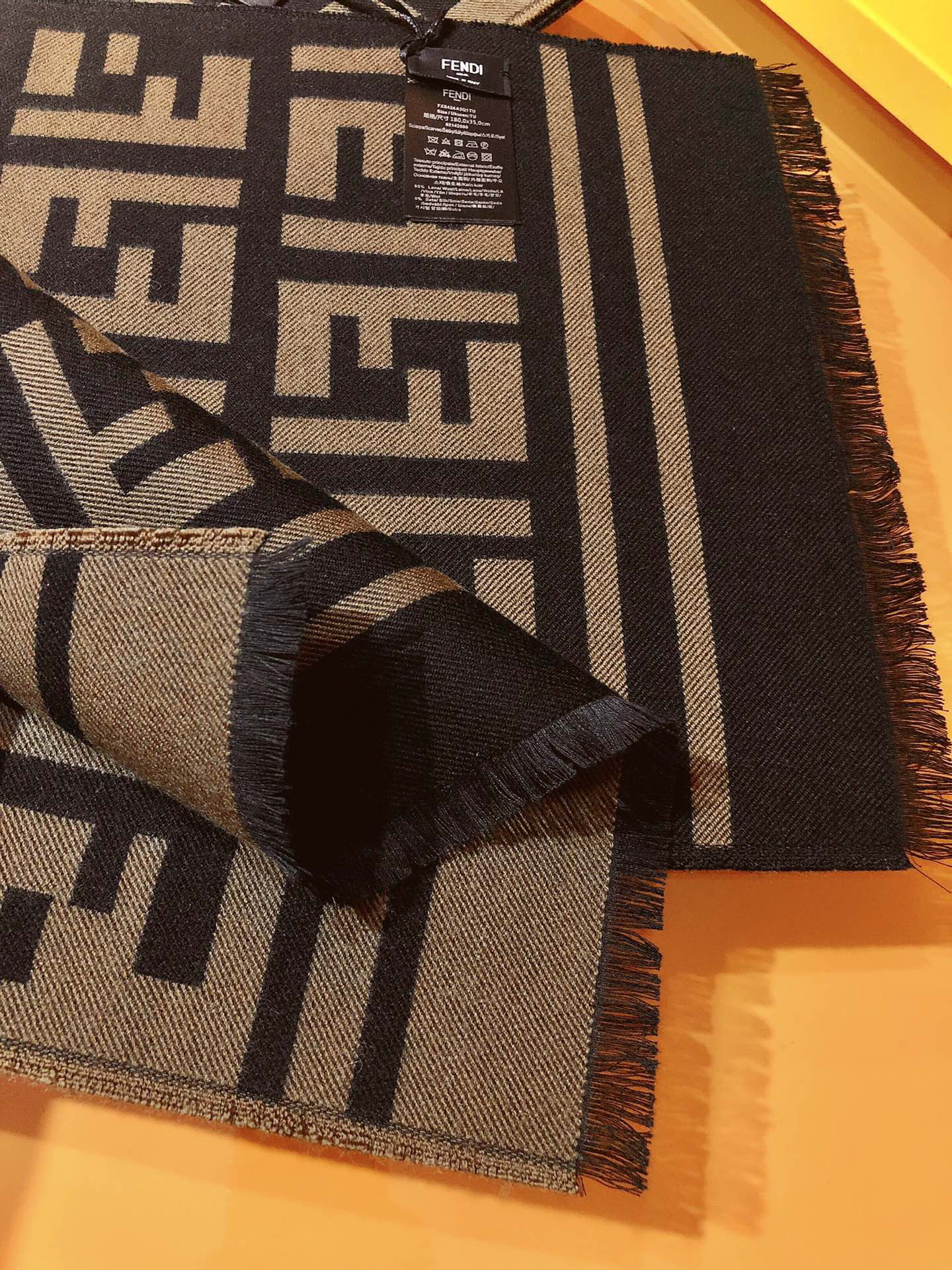 秋冬特惠💰240 芬迪围巾新色到!通用情侣款【FF】围巾,官网同步更新,羊毛提花编织,手感柔软舒适奢华有质感,由双色交织提花工艺打造,正反双面颜色互换,均可使用,对应色双条纹收边,简单大方又时尚,实物非常高档,可遇而不可求,好货不等人,喜欢就不能错过哦!【38X180cm 羊毛】