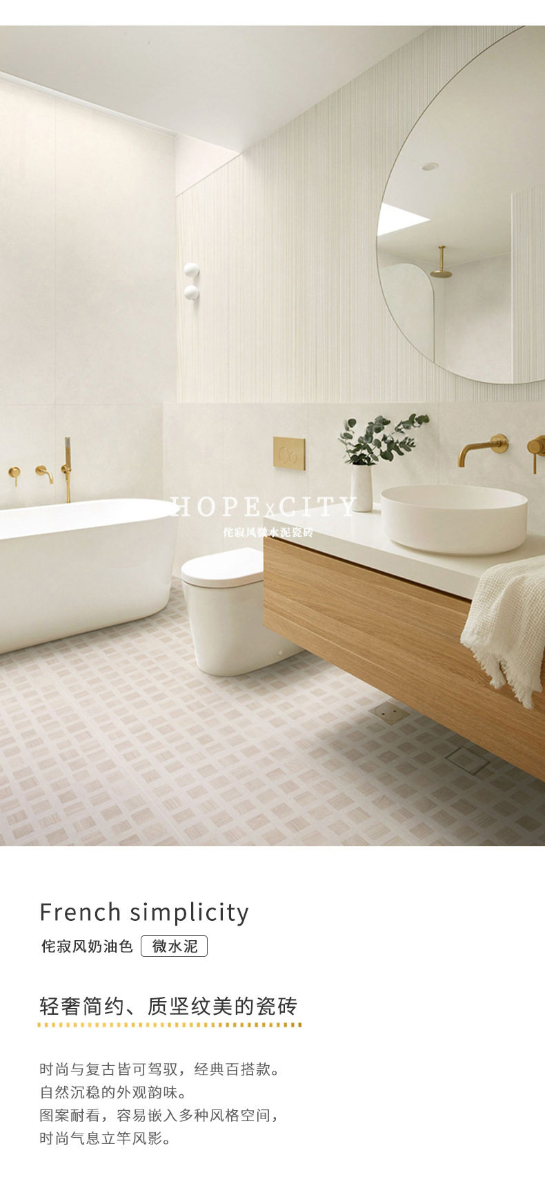 浴室素色墙砖卫生间瓷砖奶油水泥微侘寂风600x1200白地砖日式哑光