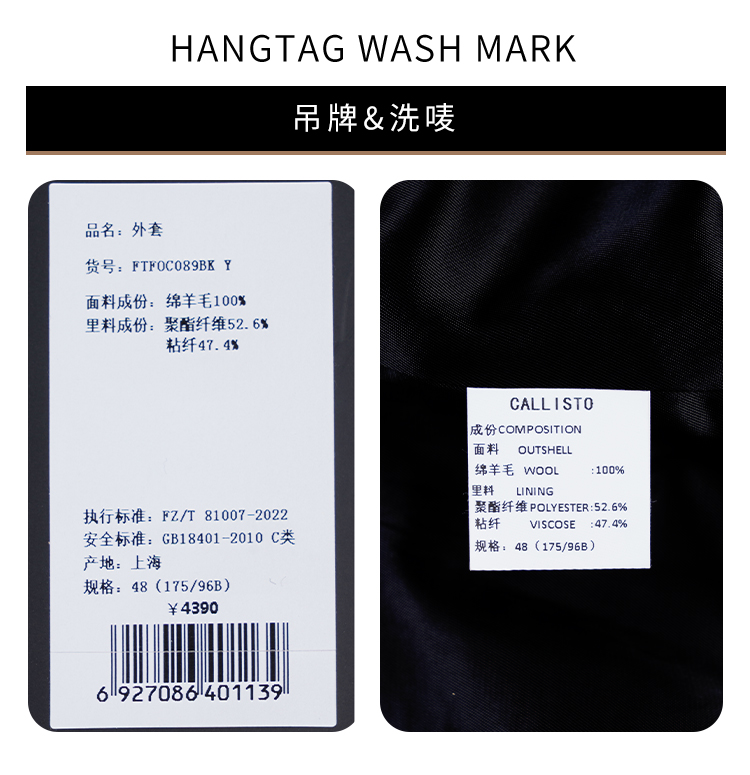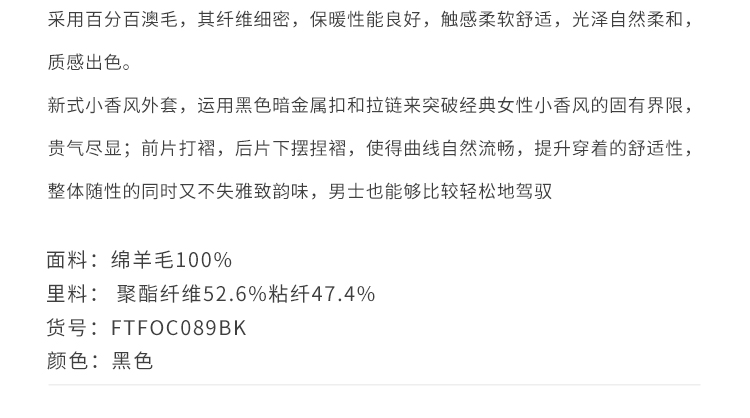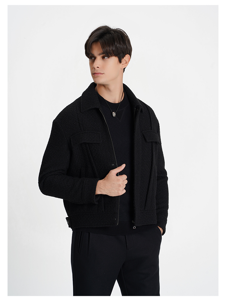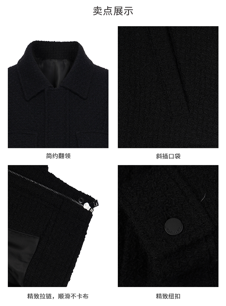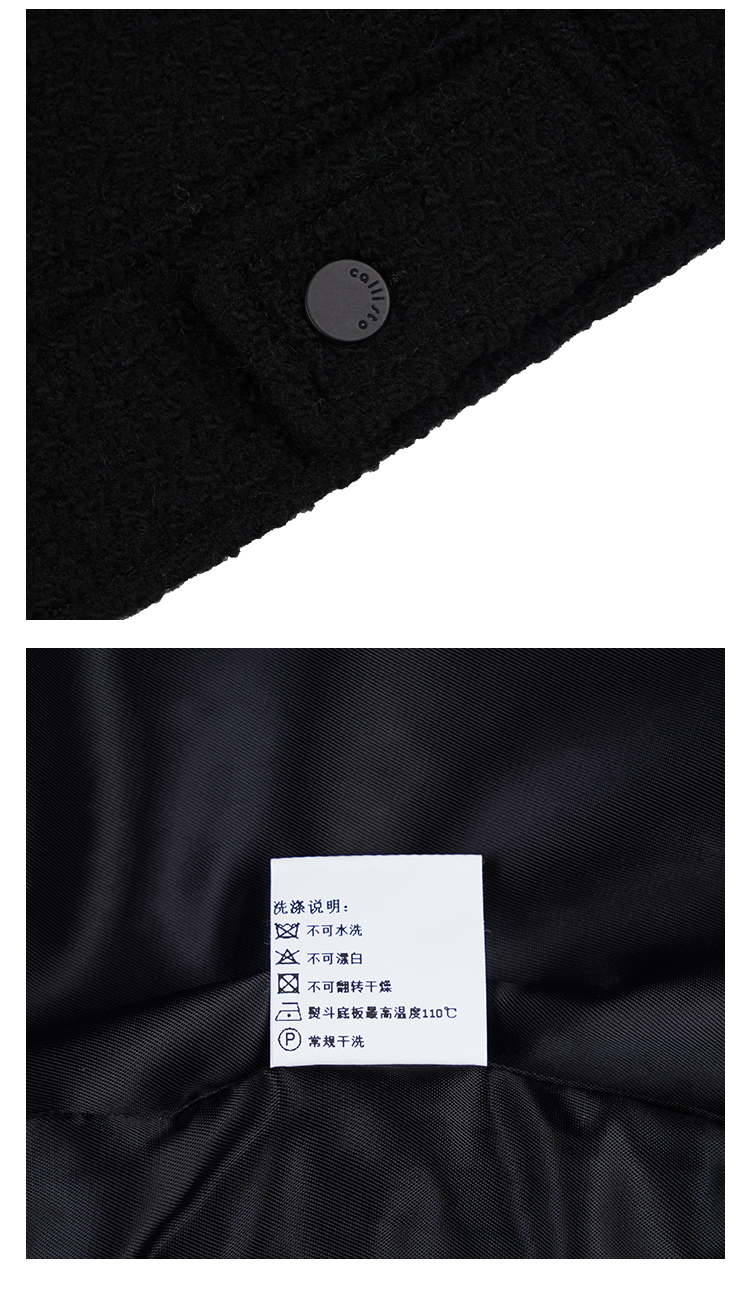 callisto乐行系列黑色绵羊毛外套