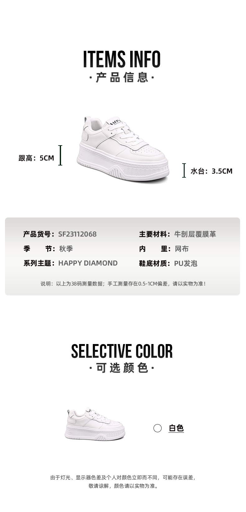 Safiya索菲娅棉花糖超轻底小白鞋2022秋新款透气厚底休闲鞋SF23112068