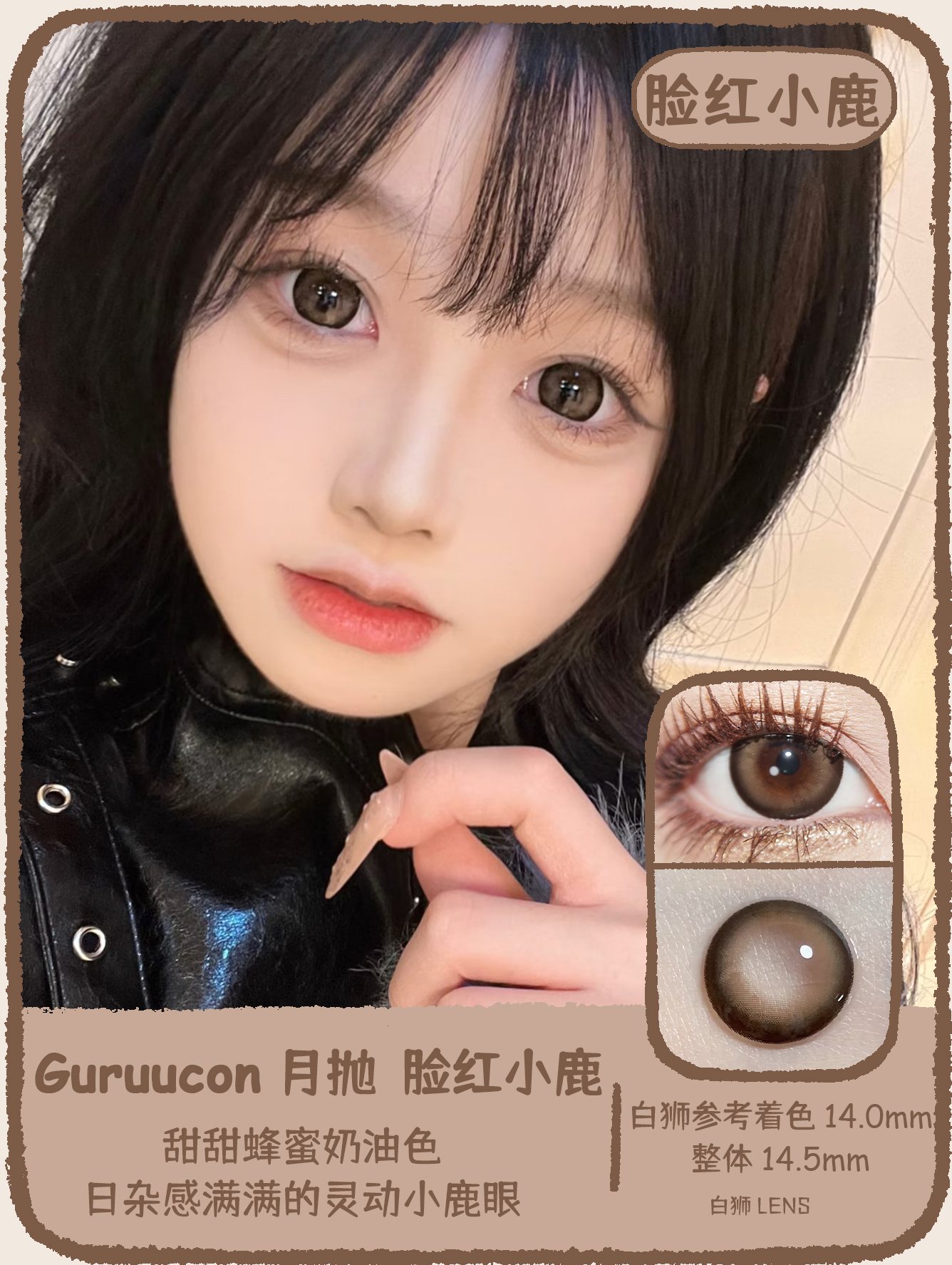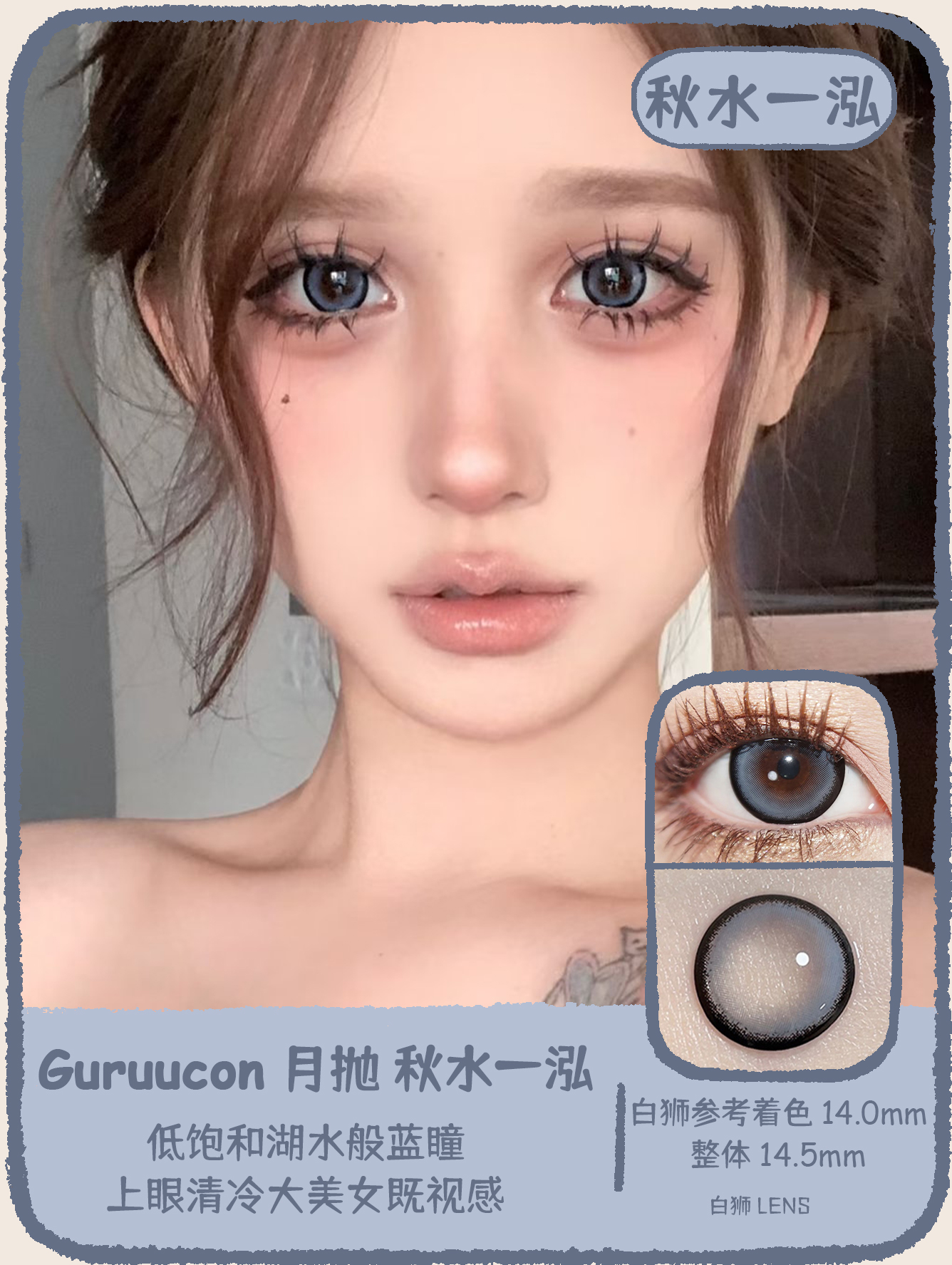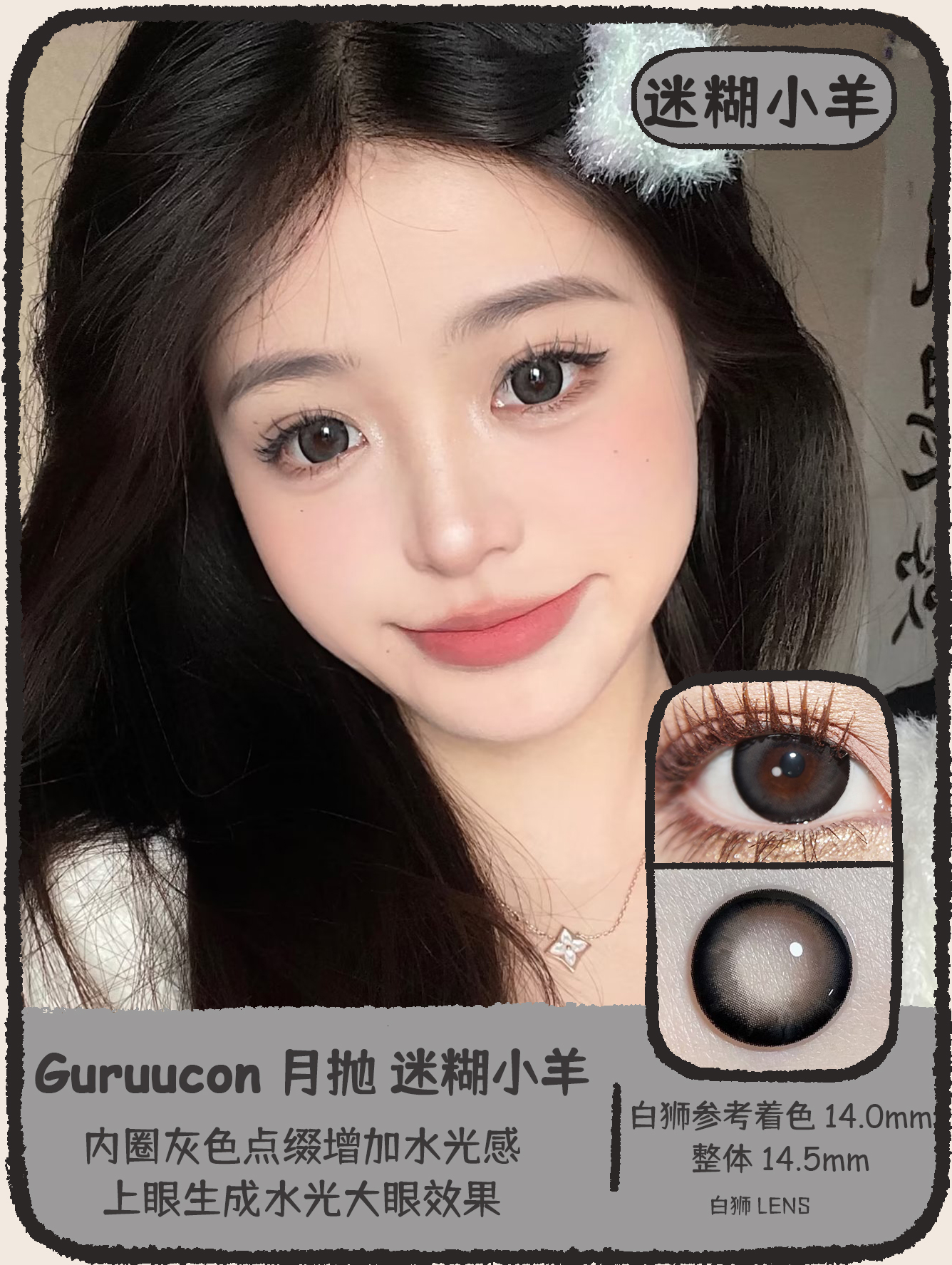 Guruucon旗下 · 藏匿星星&秋水一泓&告别暮色&误翻砚台&暗格秘密&迷糊小羊&暧昧小熊&脸红小鹿&热情猫咪|14.5mm实际着色超大直径|月抛 2片