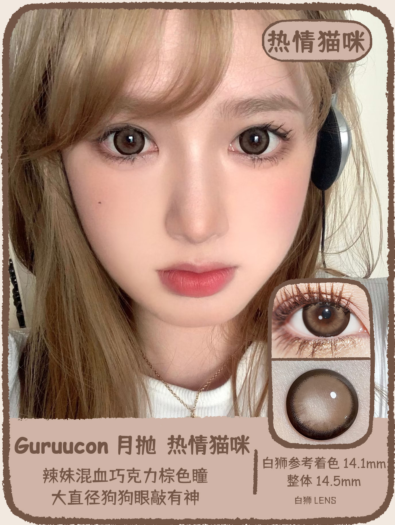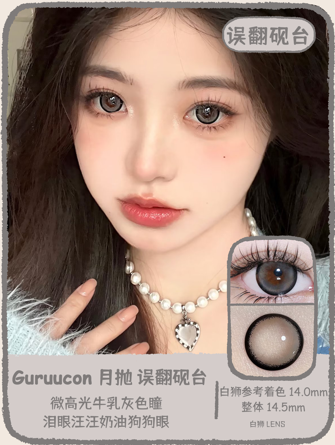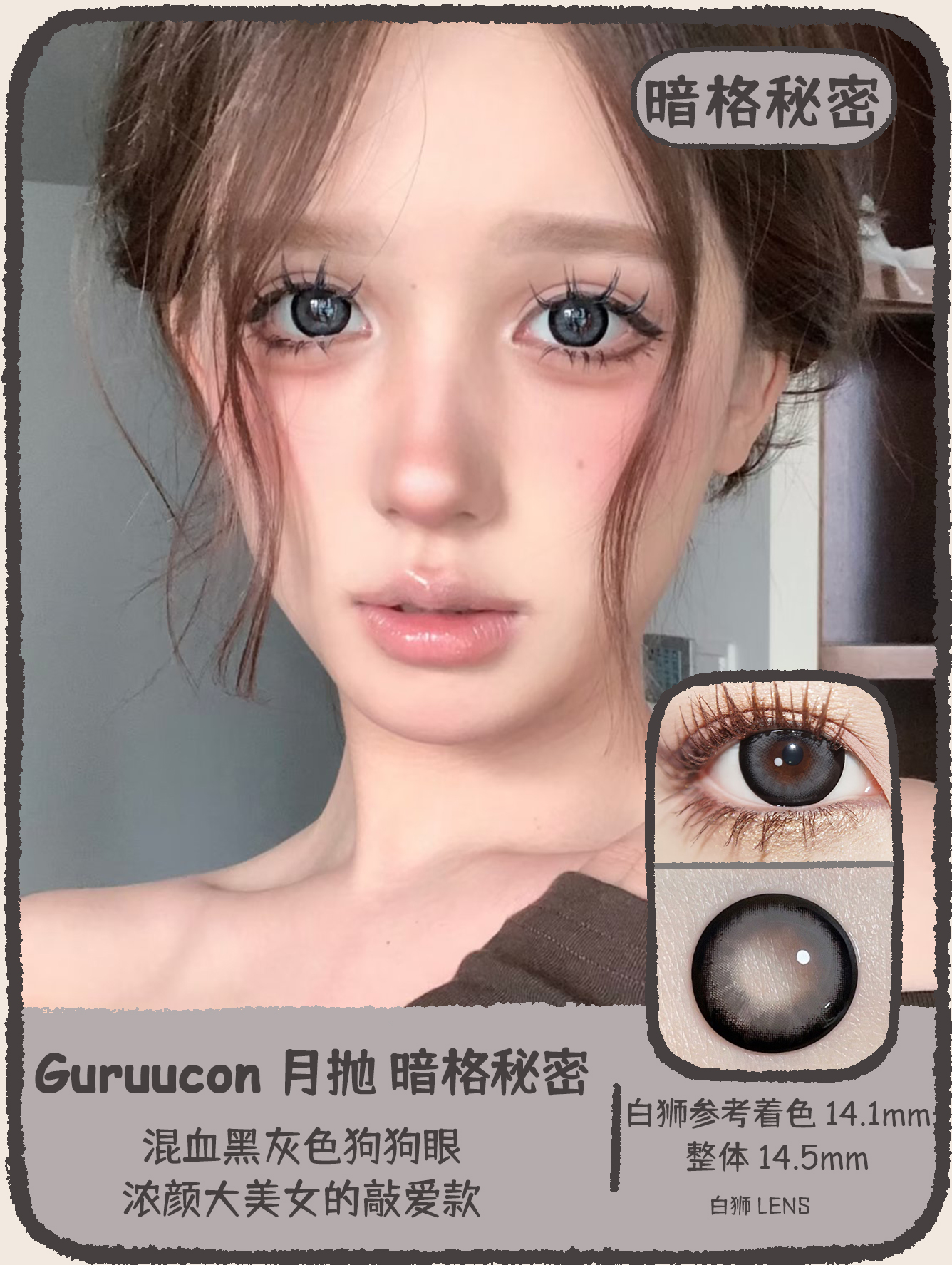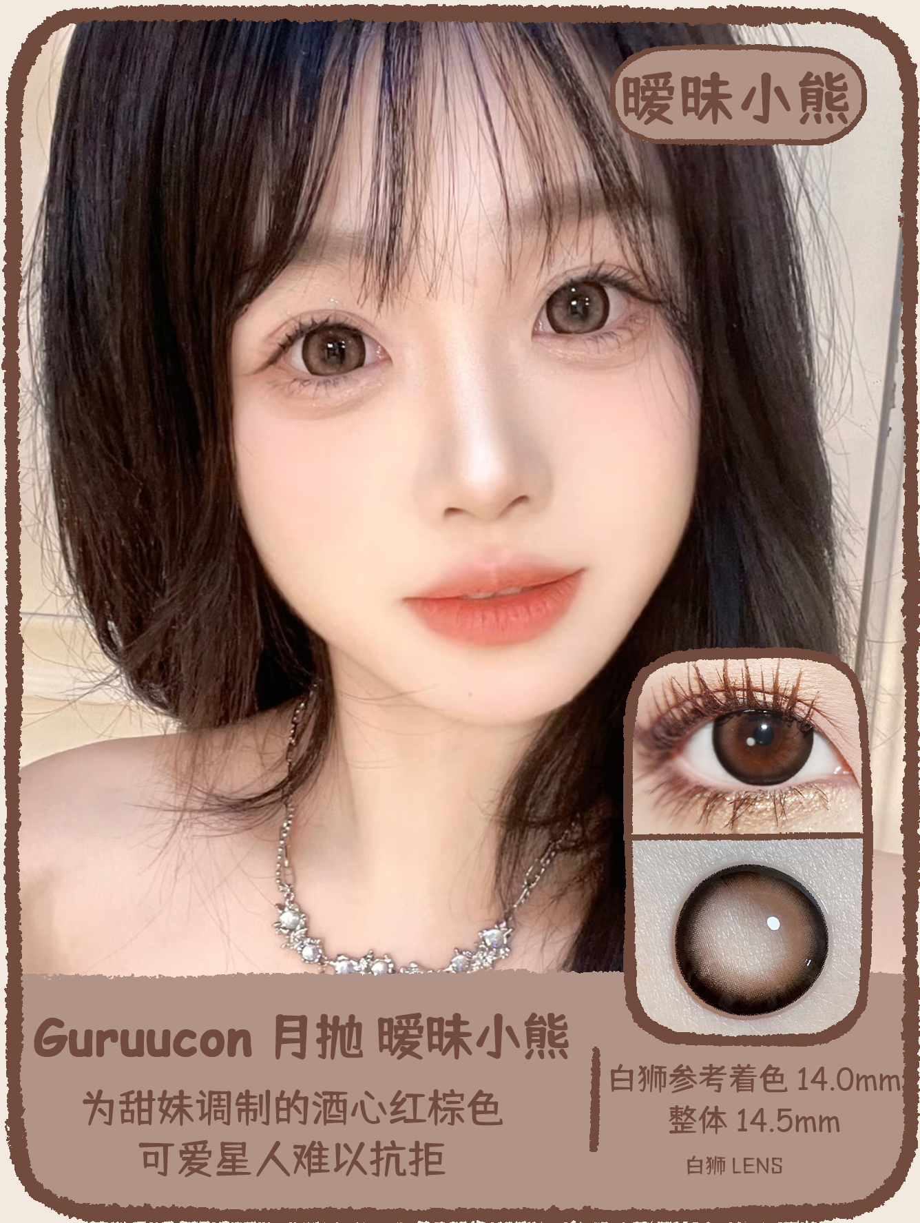 Guruucon旗下 · 藏匿星星&秋水一泓&告别暮色&误翻砚台&暗格秘密&迷糊小羊&暧昧小熊&脸红小鹿&热情猫咪|14.5mm实际着色超大直径|月抛 2片