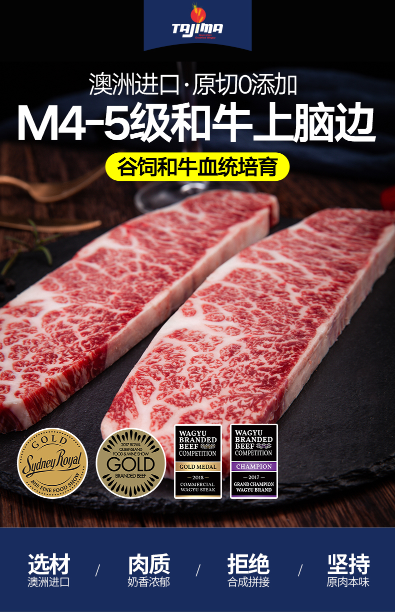 和牛M4-5 上脑边牛排500g,送瓶装海盐黑胡椒,整条切更划算