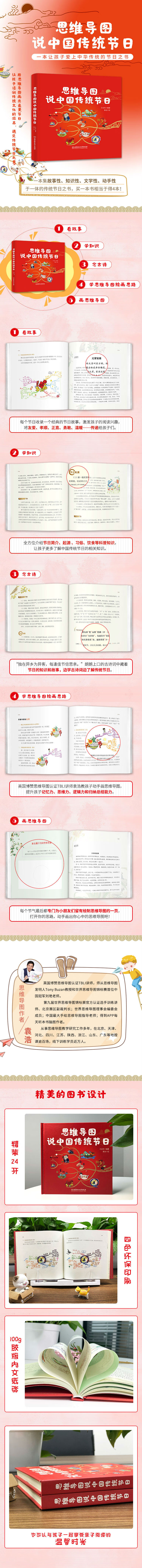 画出属于你的思维导图:每个节日*后都专门为小朋友们留有绘制思维导图的一页,打开你的思路,动手画出你心中的思维导图吧!