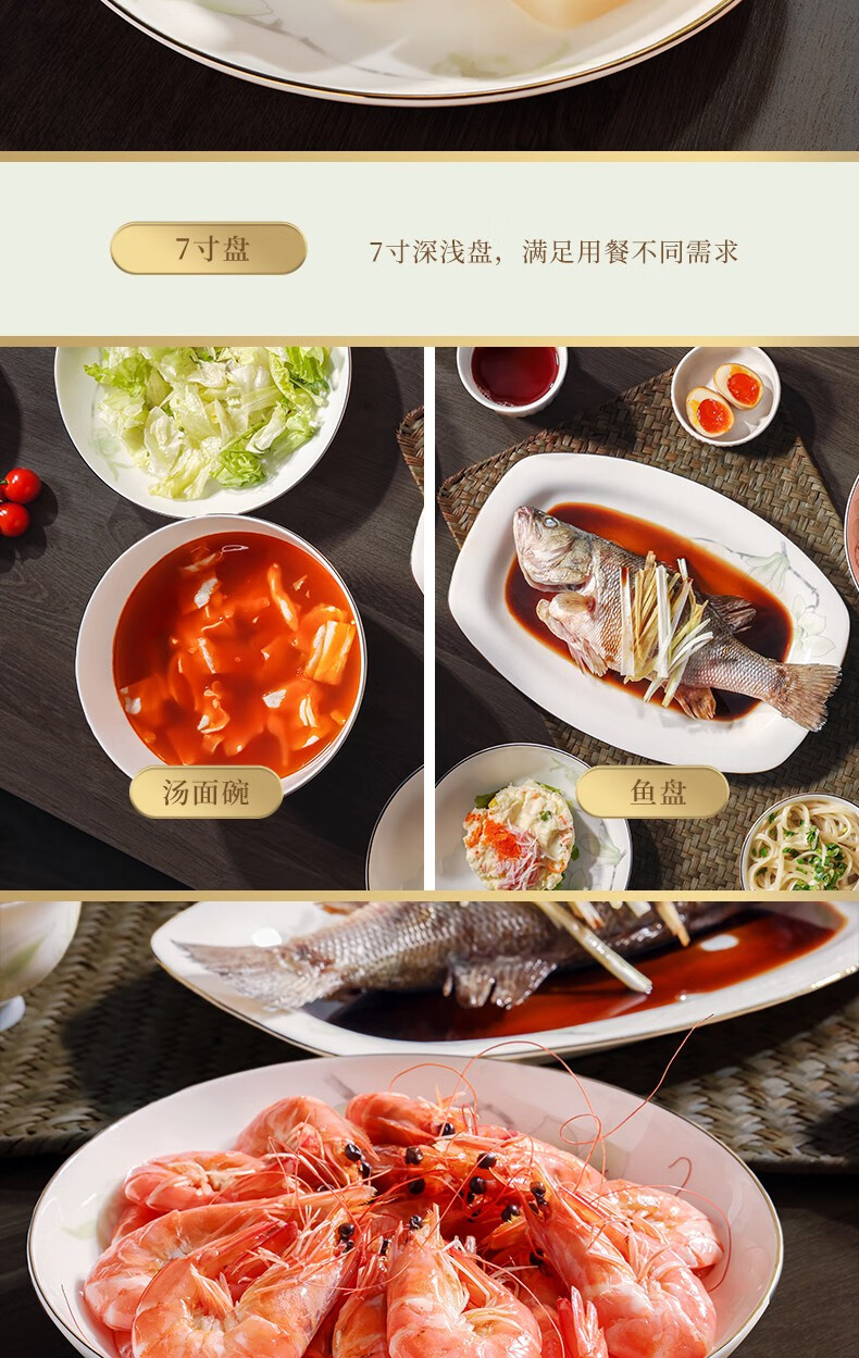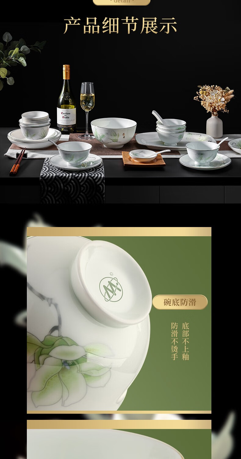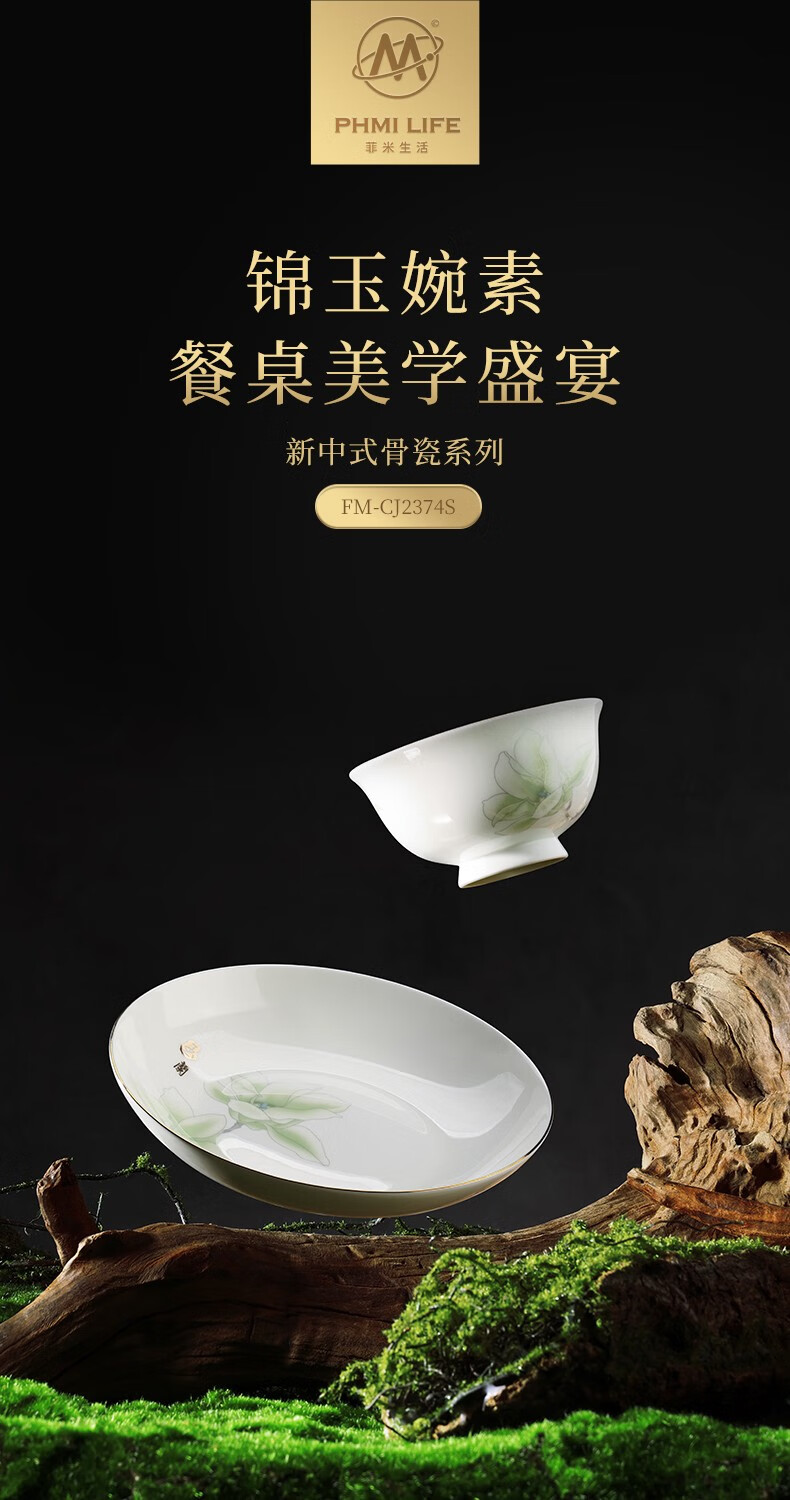 【分仓直发包邮】菲米生活锦玉婉素骨瓷餐具组合(二十六件套)FM-CJ2374S