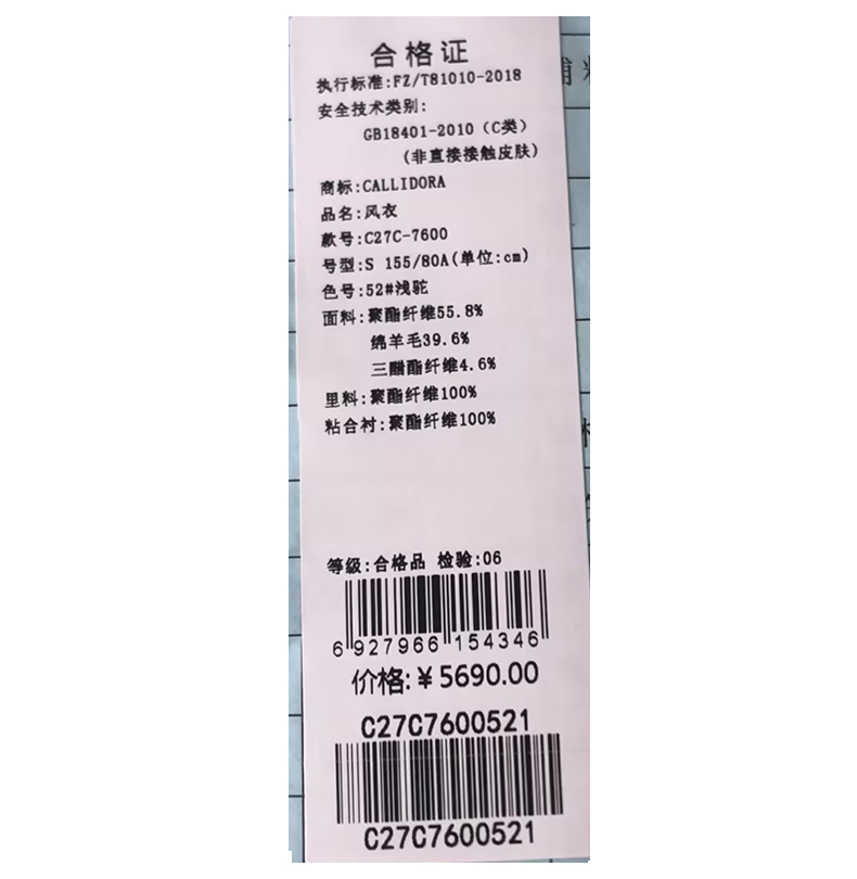 卡莉朵拉风衣C27C7600