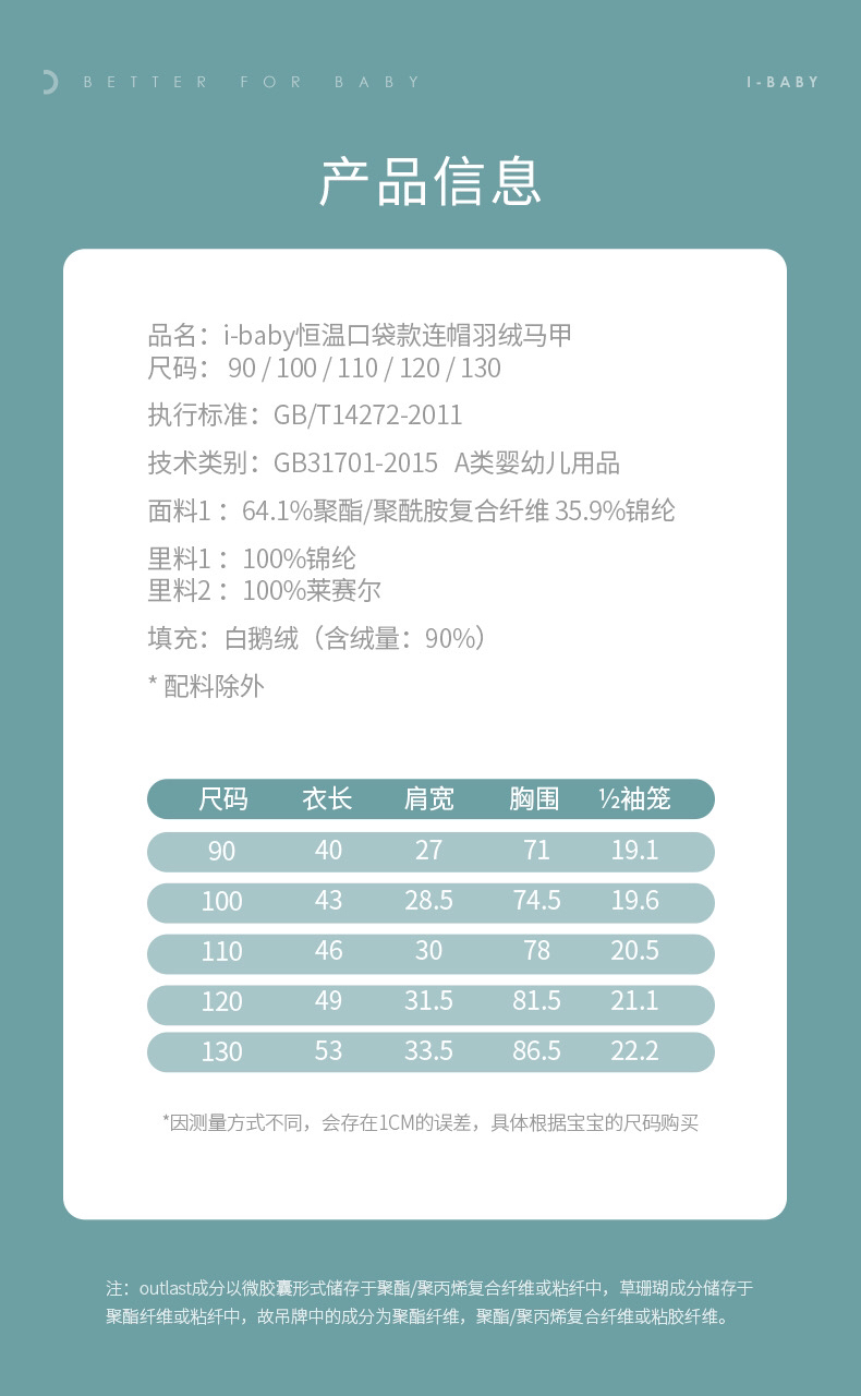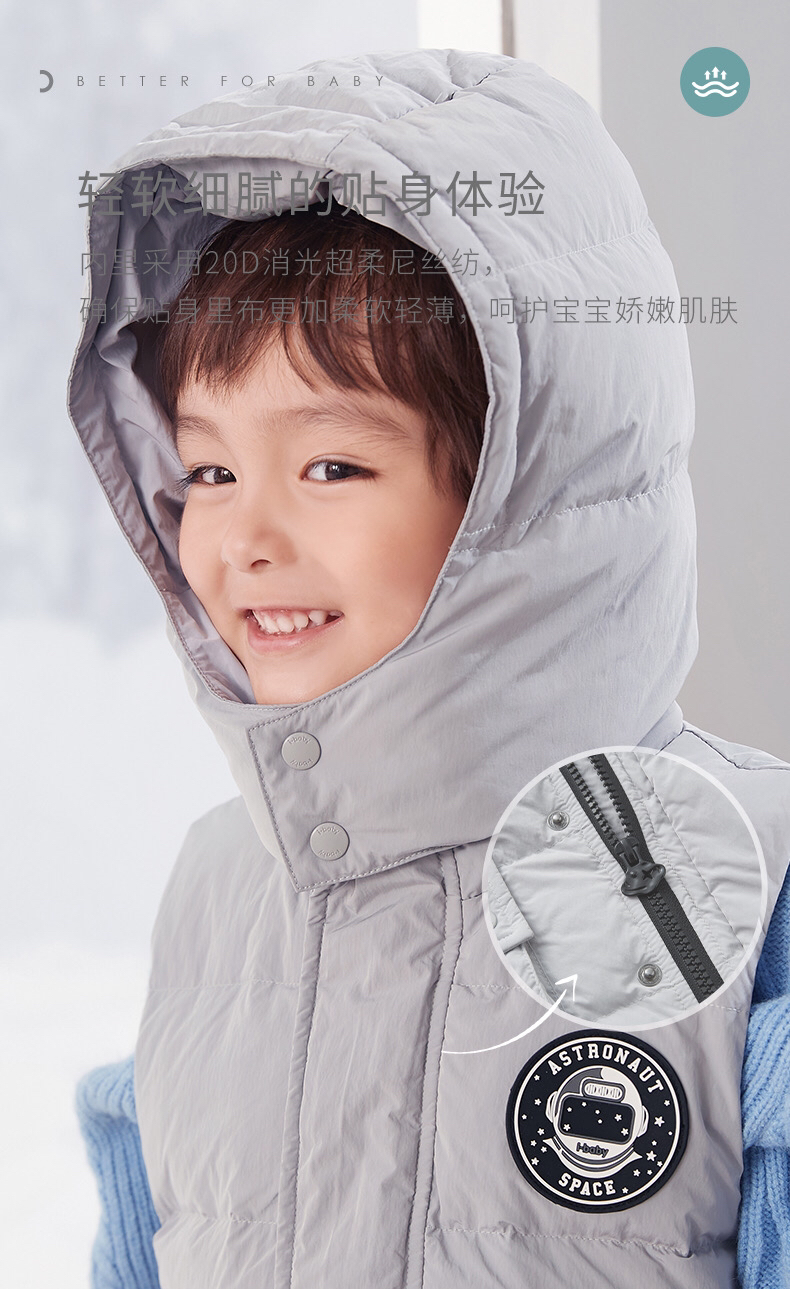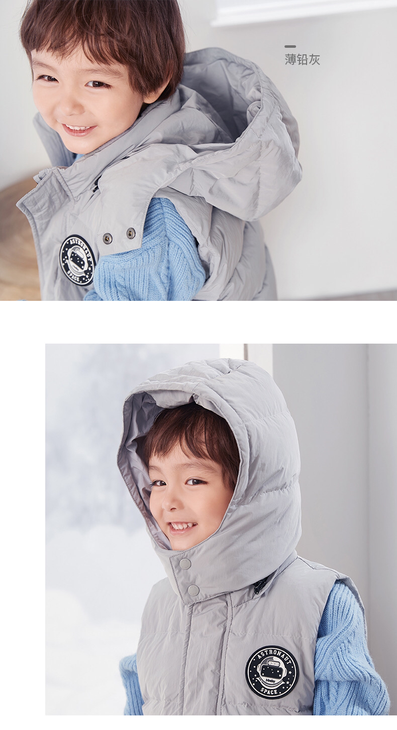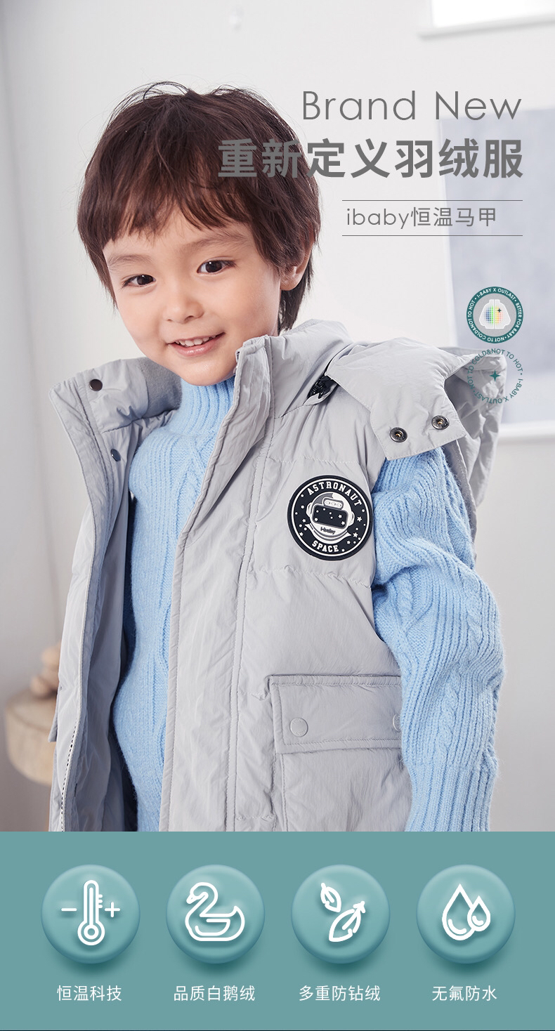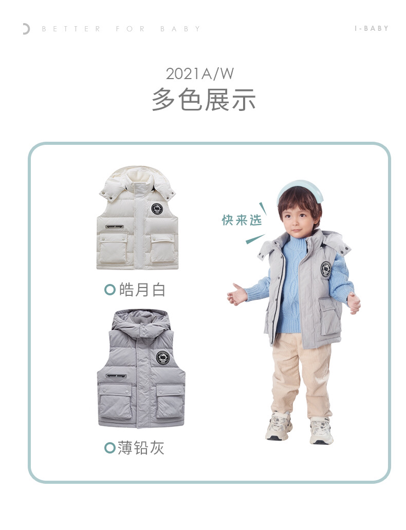 【断码清仓】i-baby儿童恒温羽绒马甲 白鹅绒保暖连帽背心工装大口袋E1210467