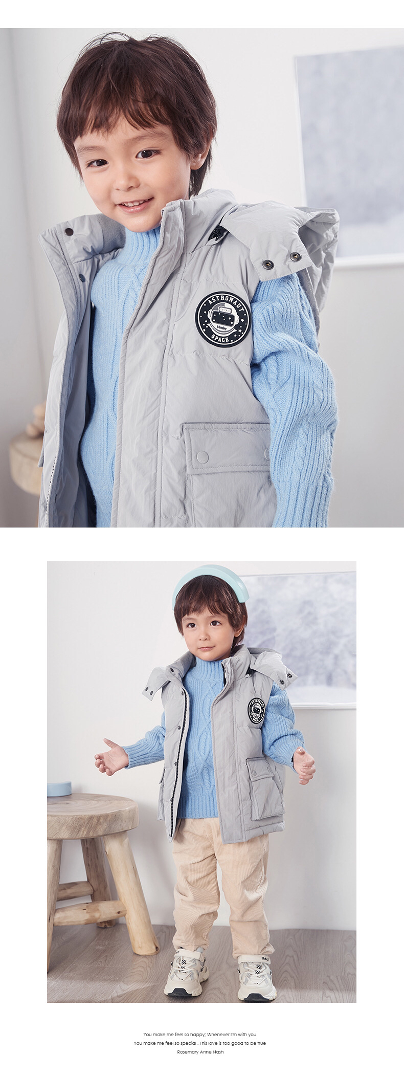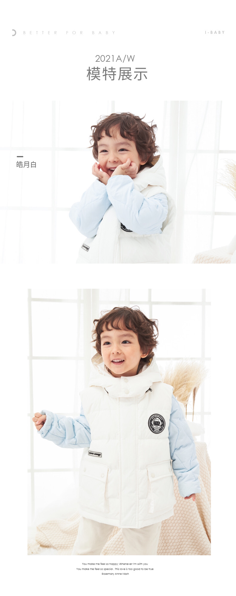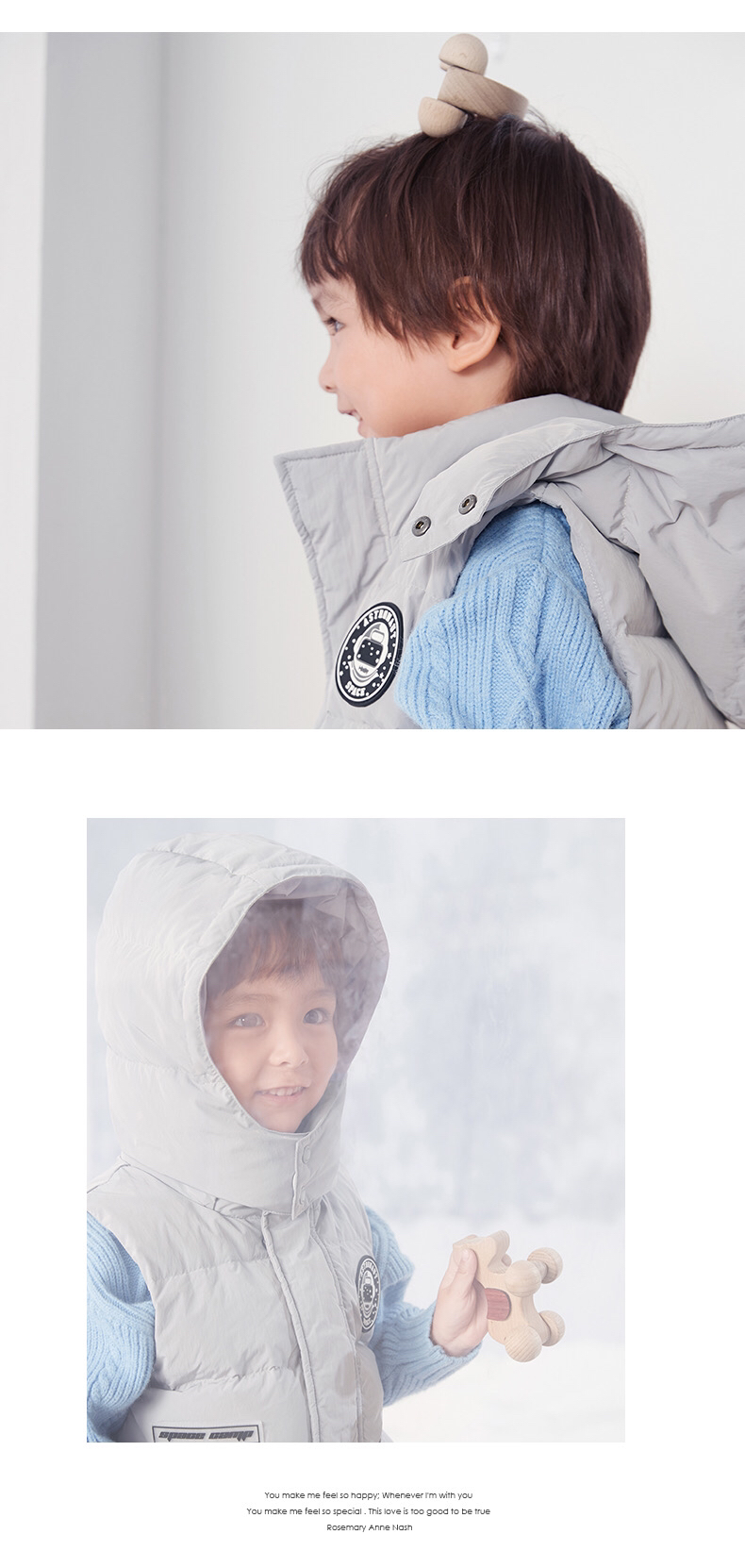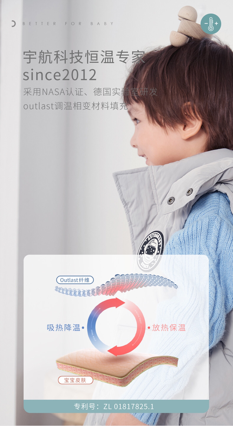 【断码清仓】i-baby儿童恒温羽绒马甲 白鹅绒保暖连帽背心工装大口袋E1210467