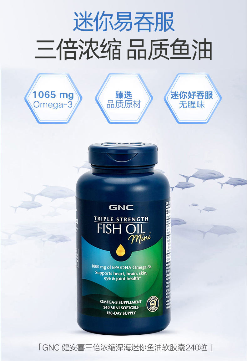 GNC三倍浓缩深海迷你鱼油软胶囊120粒/240粒