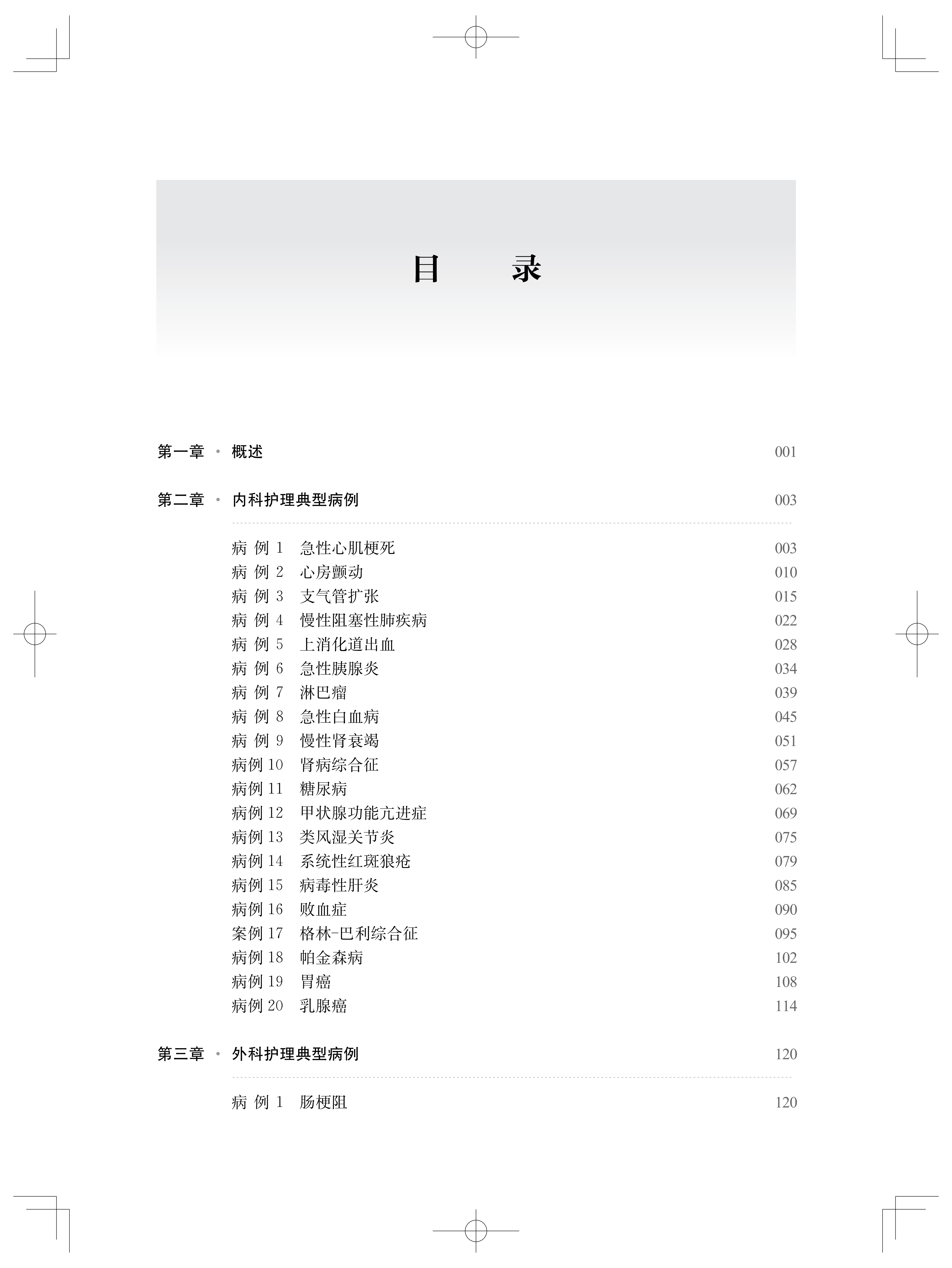 本书精选内科、外科和重症医学科的常见病、多发病共43个病例,每个病例从基本情况、辅助检查、护理计划、健康指导、知识速递等进行阐述。其中,护理计划包括护理评估、护理诊断、护理目标、护士实施、效果评价;知识速递则是针对典型病例提出关联密切的问题并进行回答,然后给出循证结果;案例最后附有疾病诊断及治疗流程,可帮助提高护士的临床思辨能力。