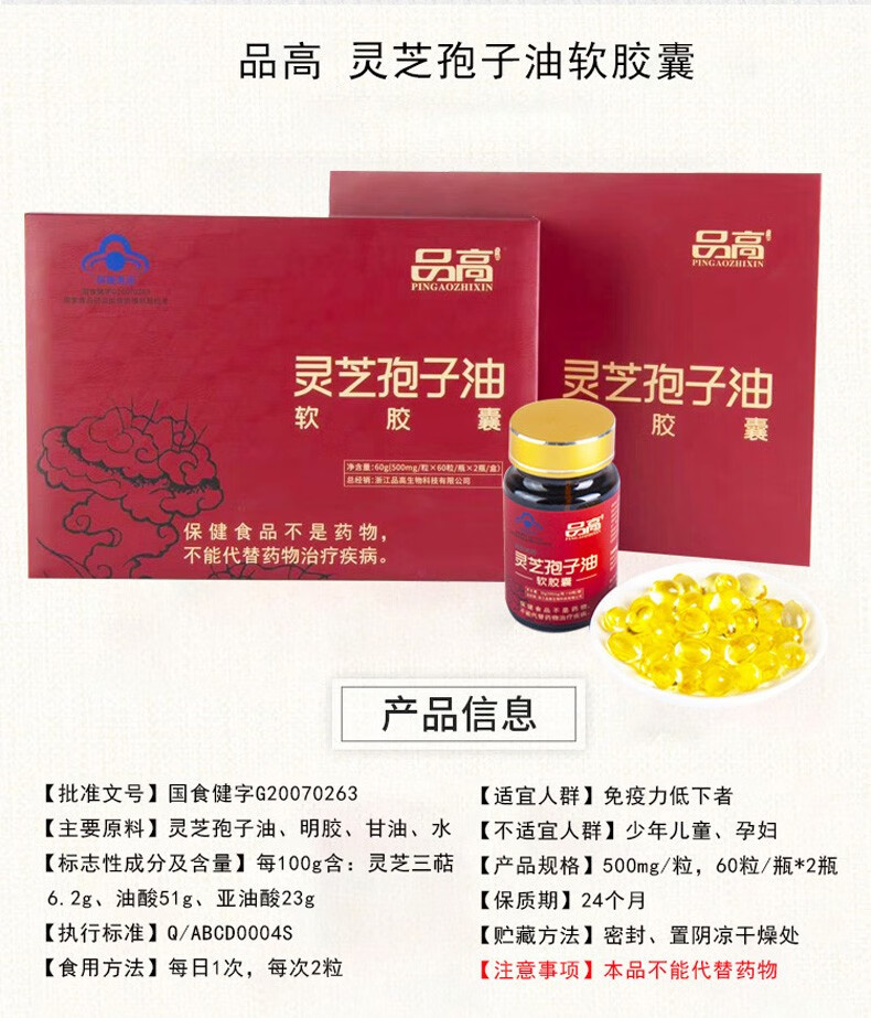 自营(合珍园)-【品高】灵芝孢子油 120粒装(不支持7天无理由退换货)