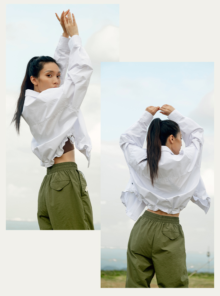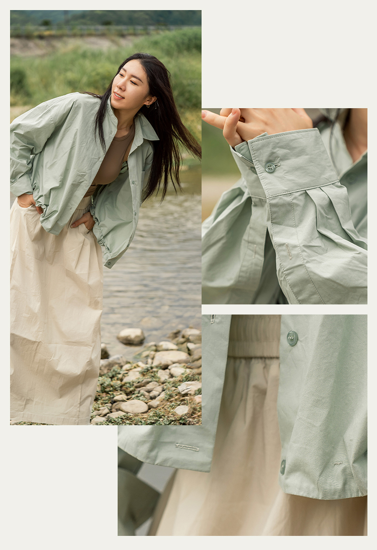 【100%棉】户外休闲宽松上衣 腰间抽绳 衬衫外套